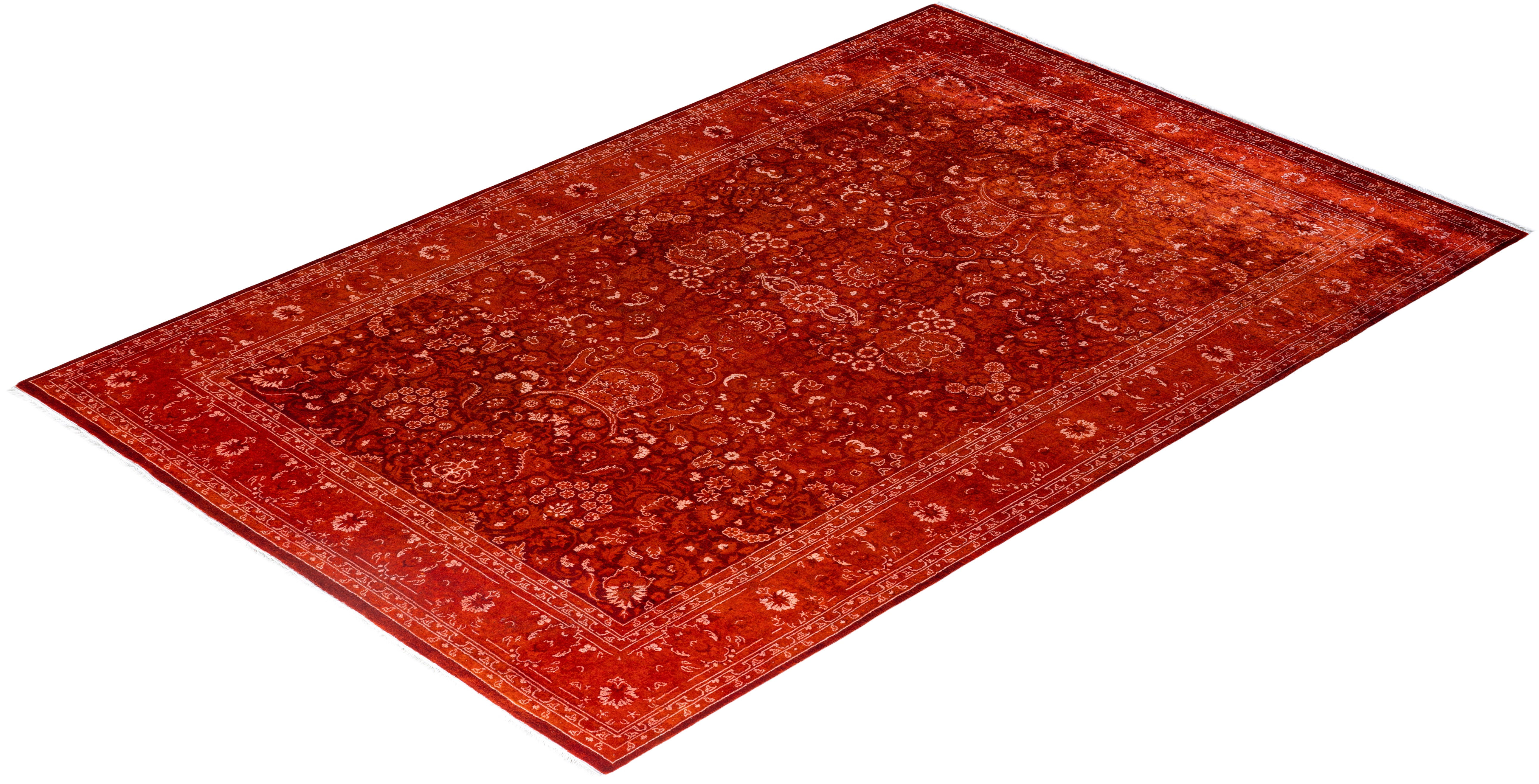 Fine Vibrance, One-of-a-Kind Hand-Knotted Area Rug - Orange, 6' 1" x 9' 0"
