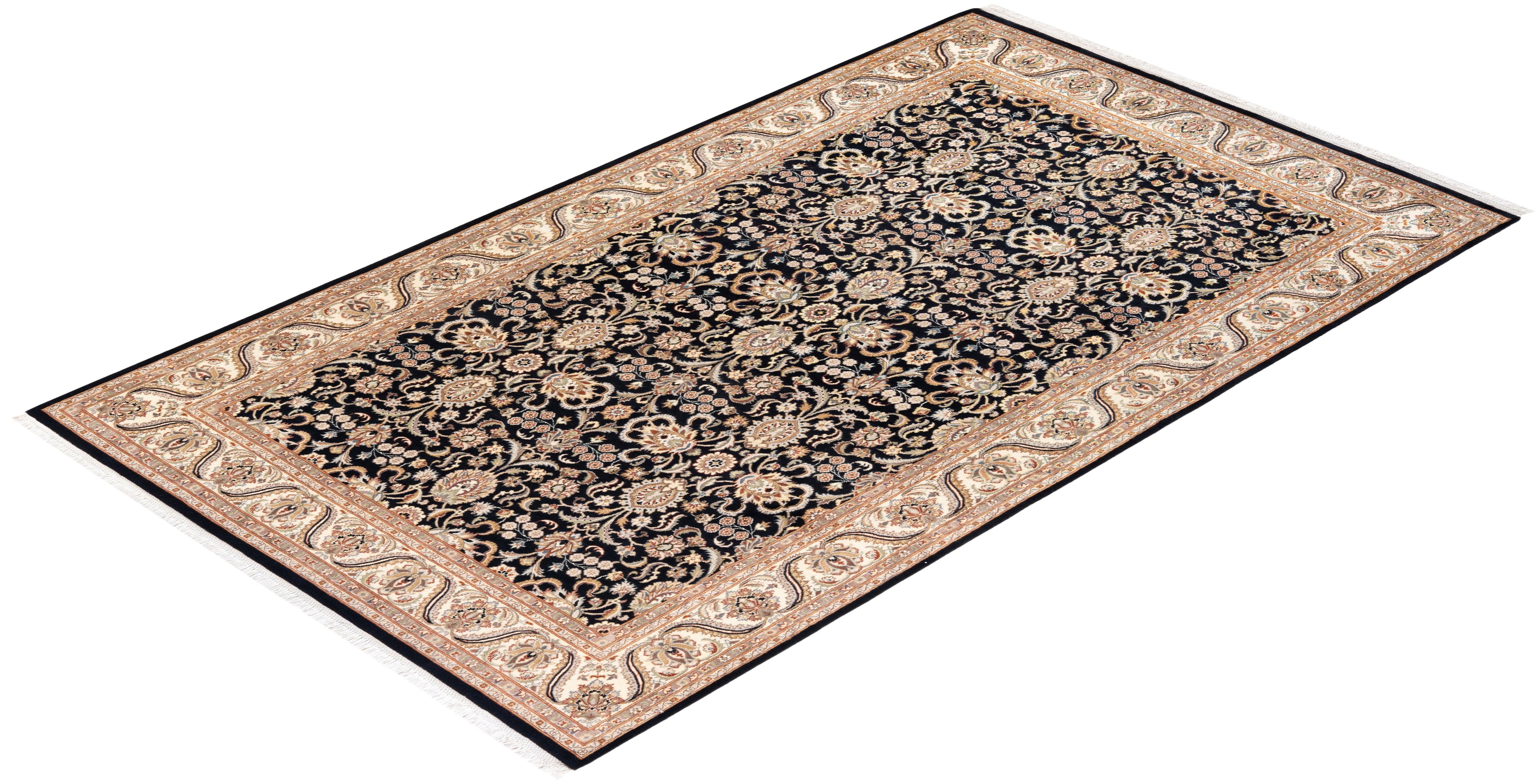 Traditional Hand Knotted Mogul Oriental Black Area Rug 5' 10" x 10' 3"