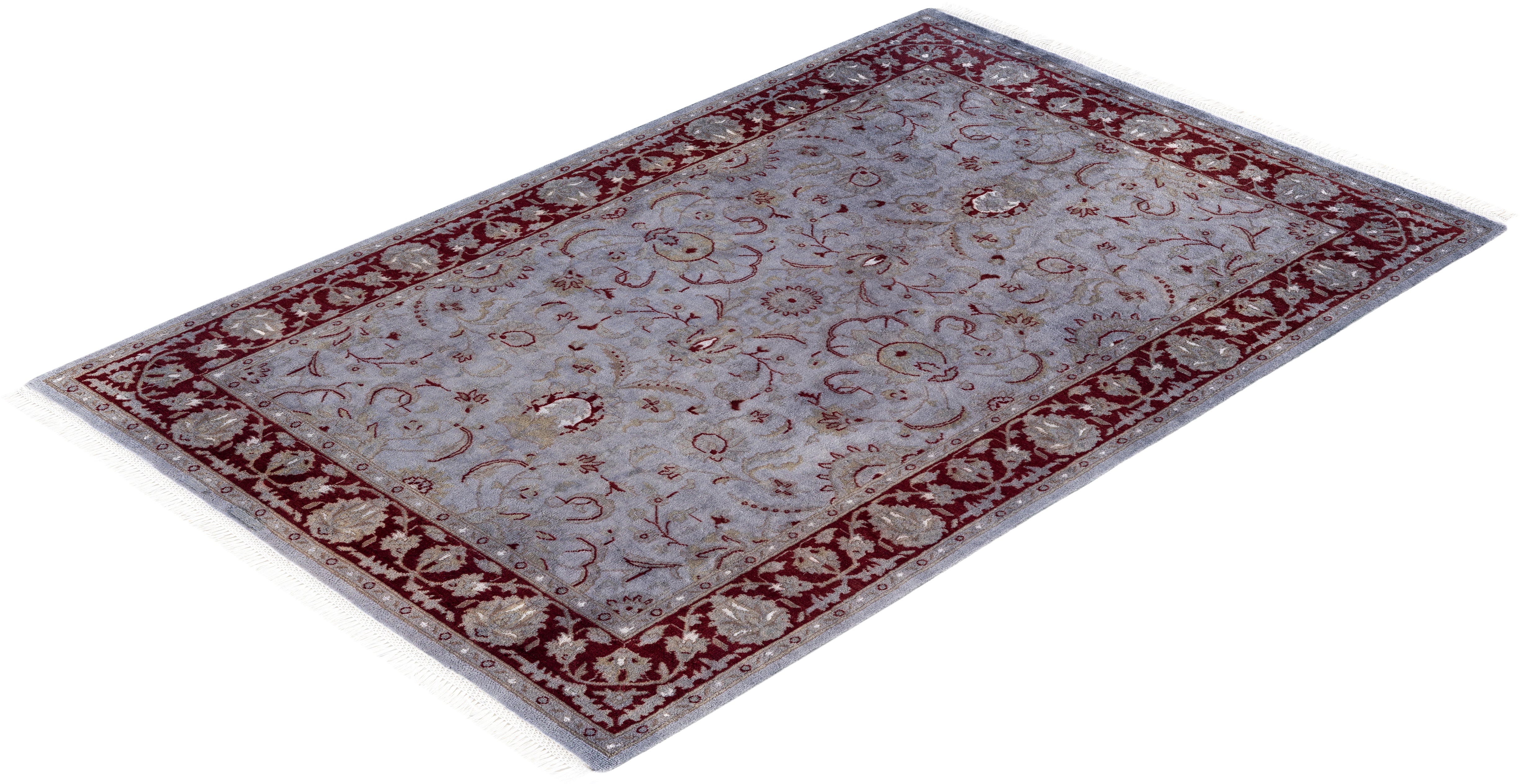 Contemporary Overdyed Wool Hand Knotted Gray Area Rug 4' 2" x 6' 4"