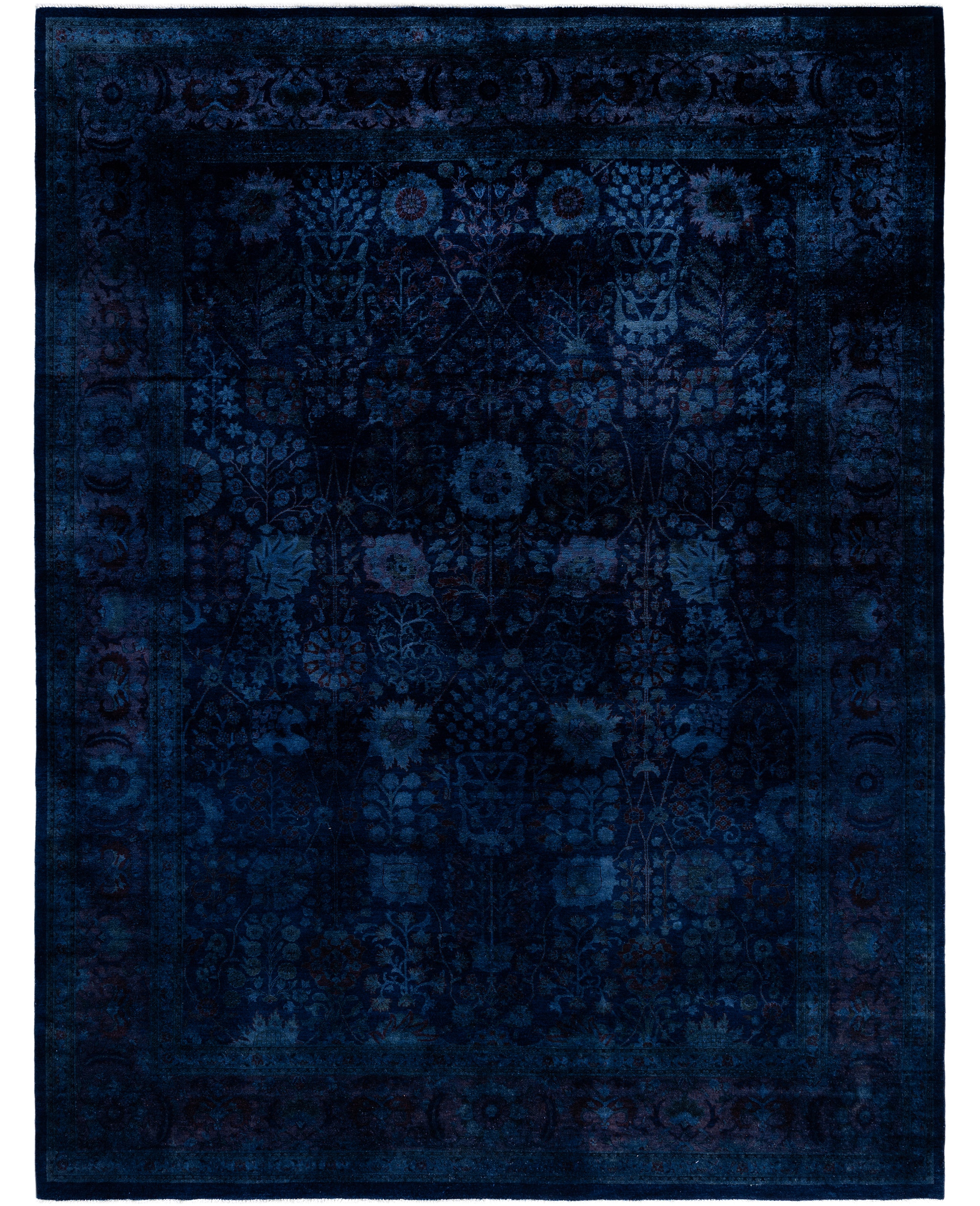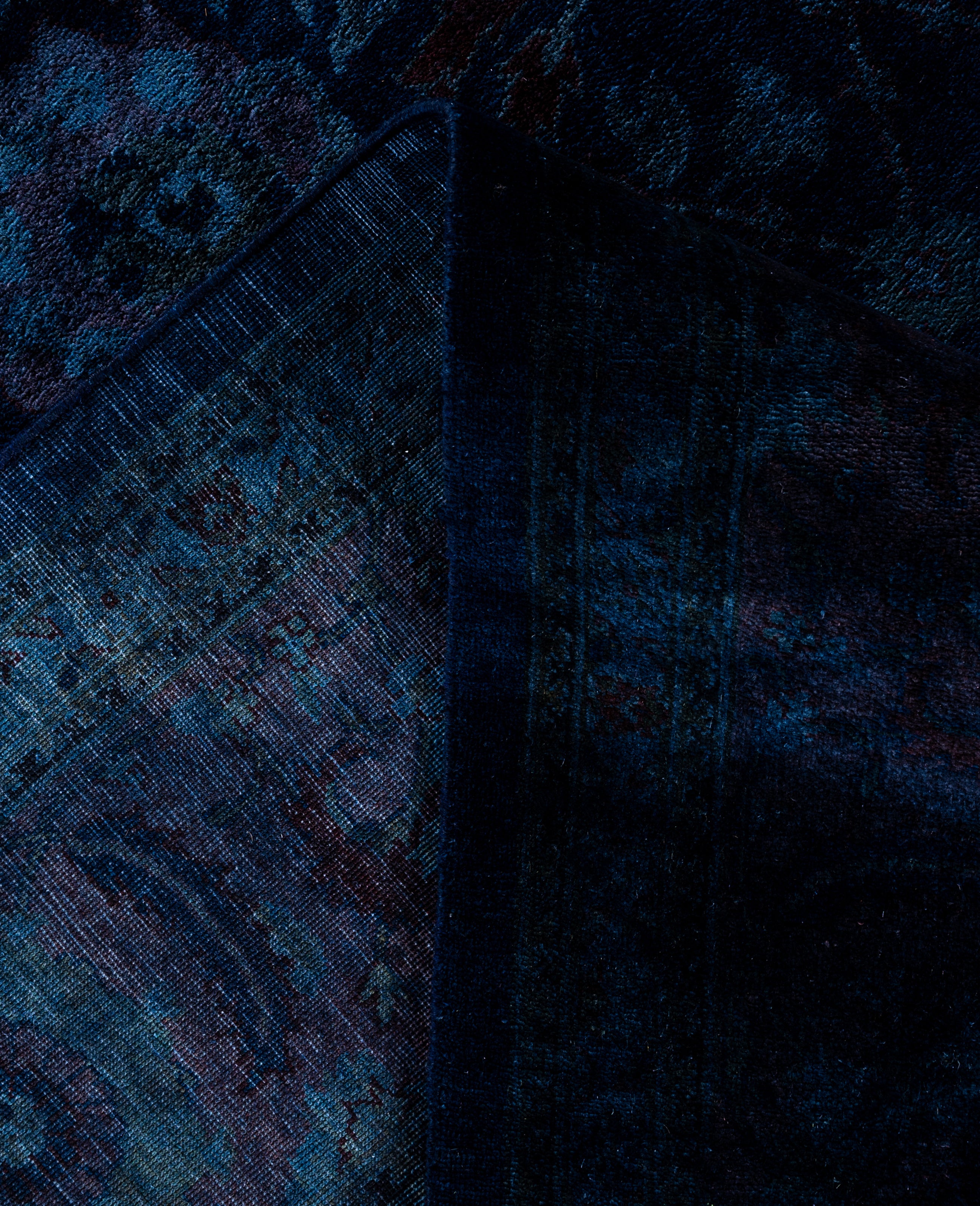 Overdyed One-of-a-Kind Wool Navy Area Rug 9' 1" x 11' 9"