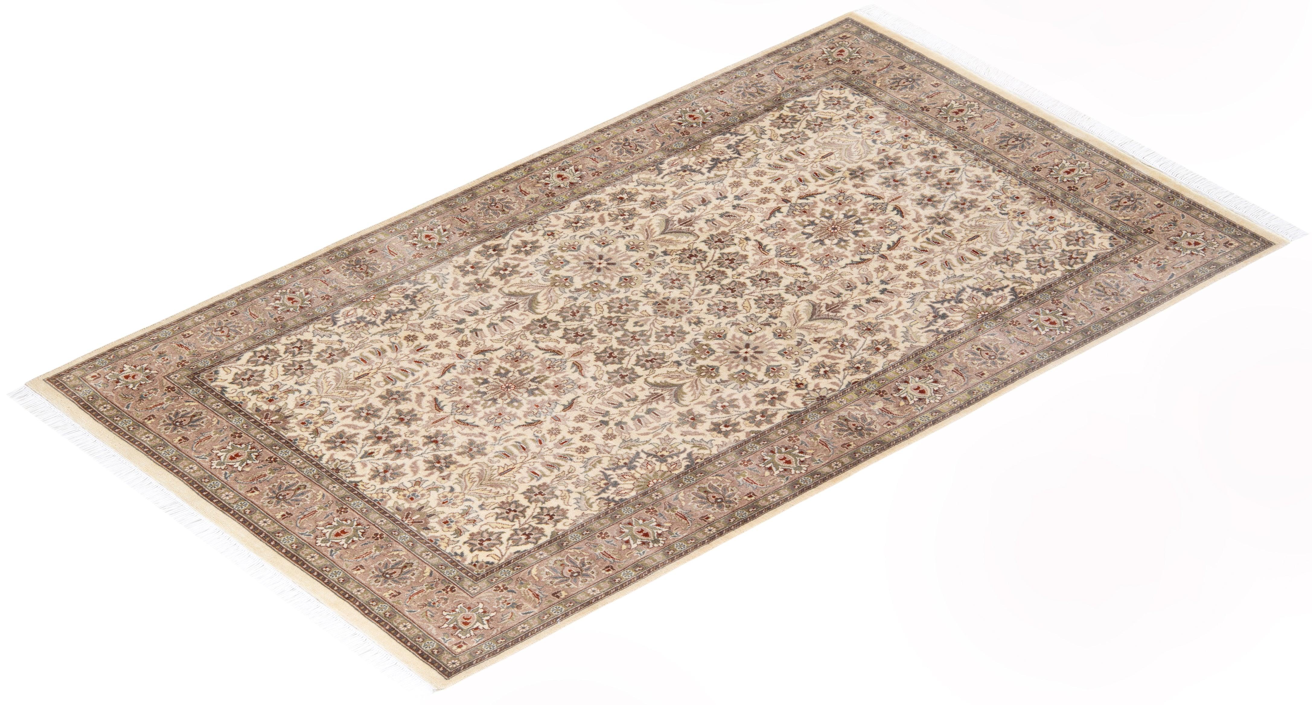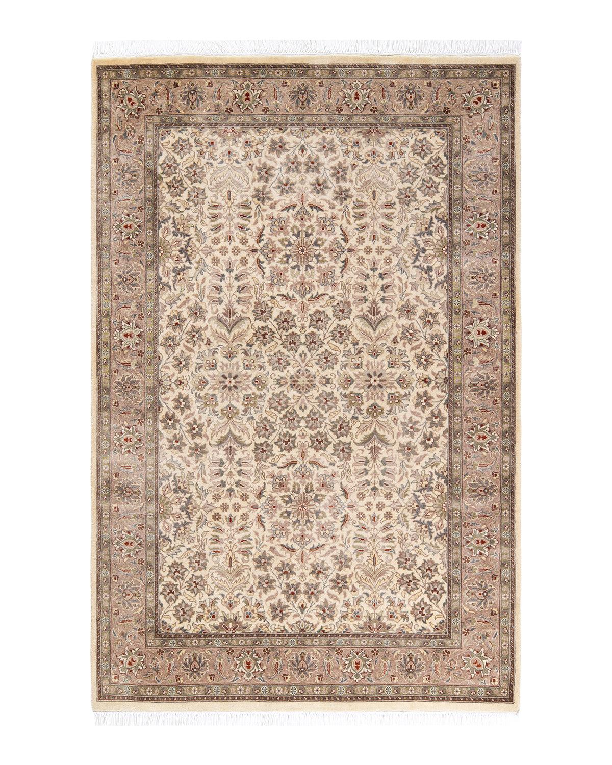 Traditional Hand Knotted Mogul Oriental Ivory Area Rug 4' 2" x 6' 4"