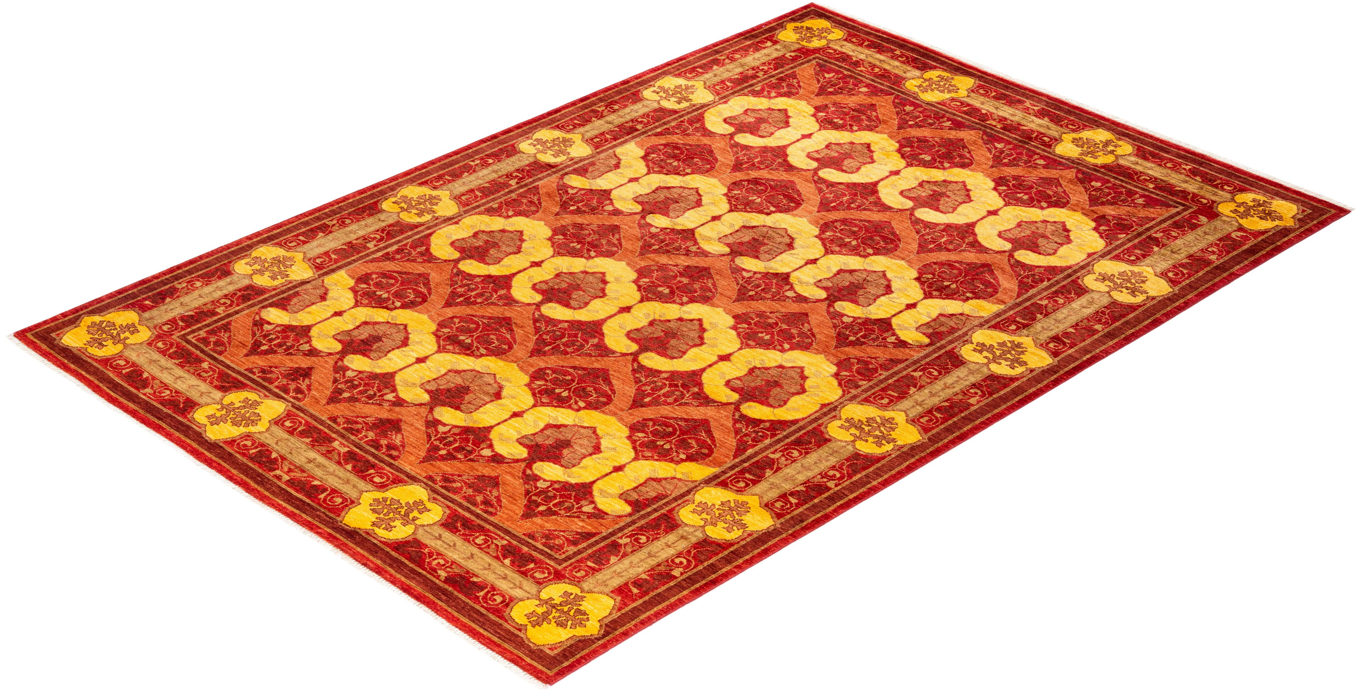 Contemporary Hand Knotted Arts & Crafts Floral Red Area Rug 6' 0" x 9' 0"