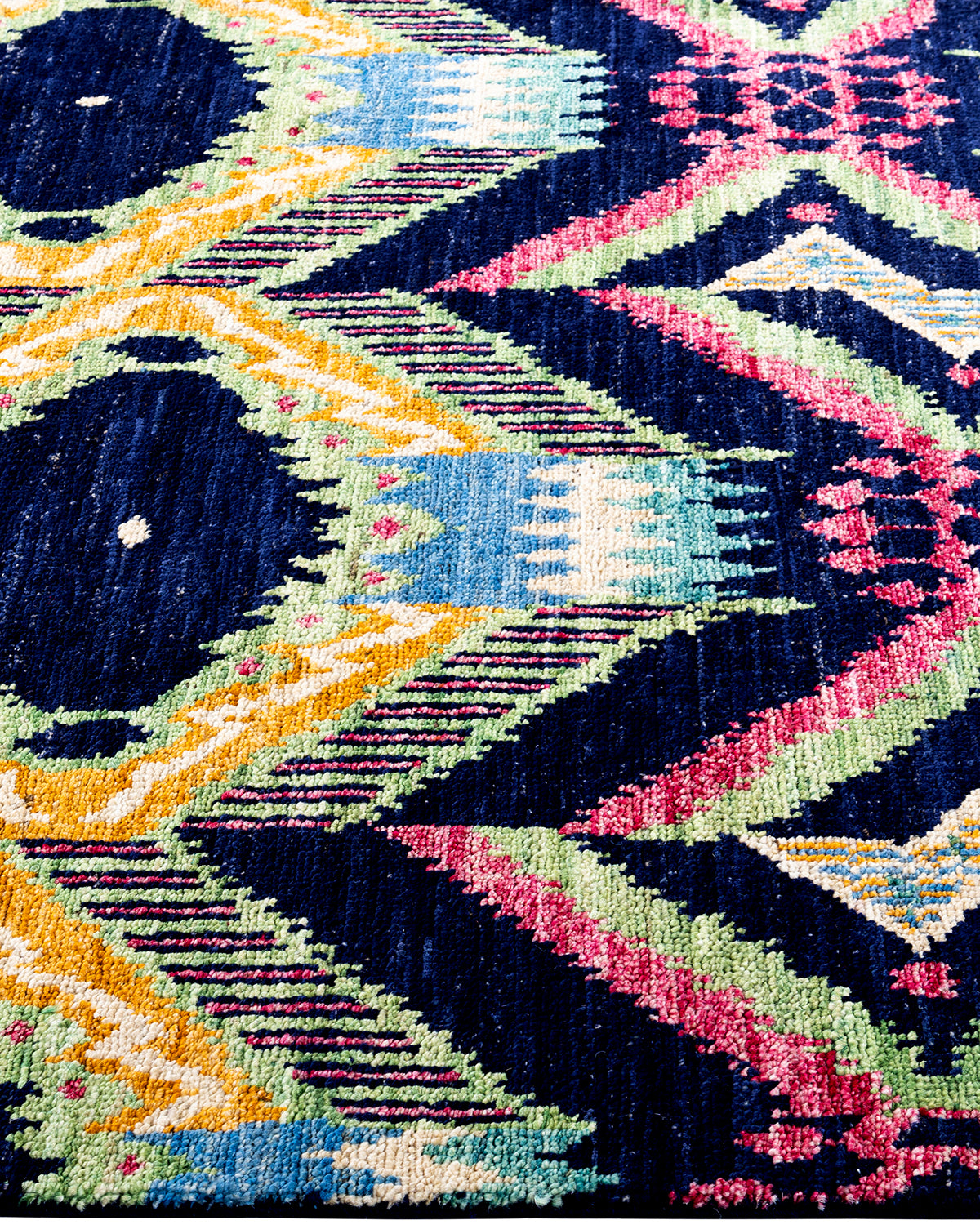 Contemporary Hand-Knotted Modern Abstract Navy Area Rug 4' 1" x 6' 2"