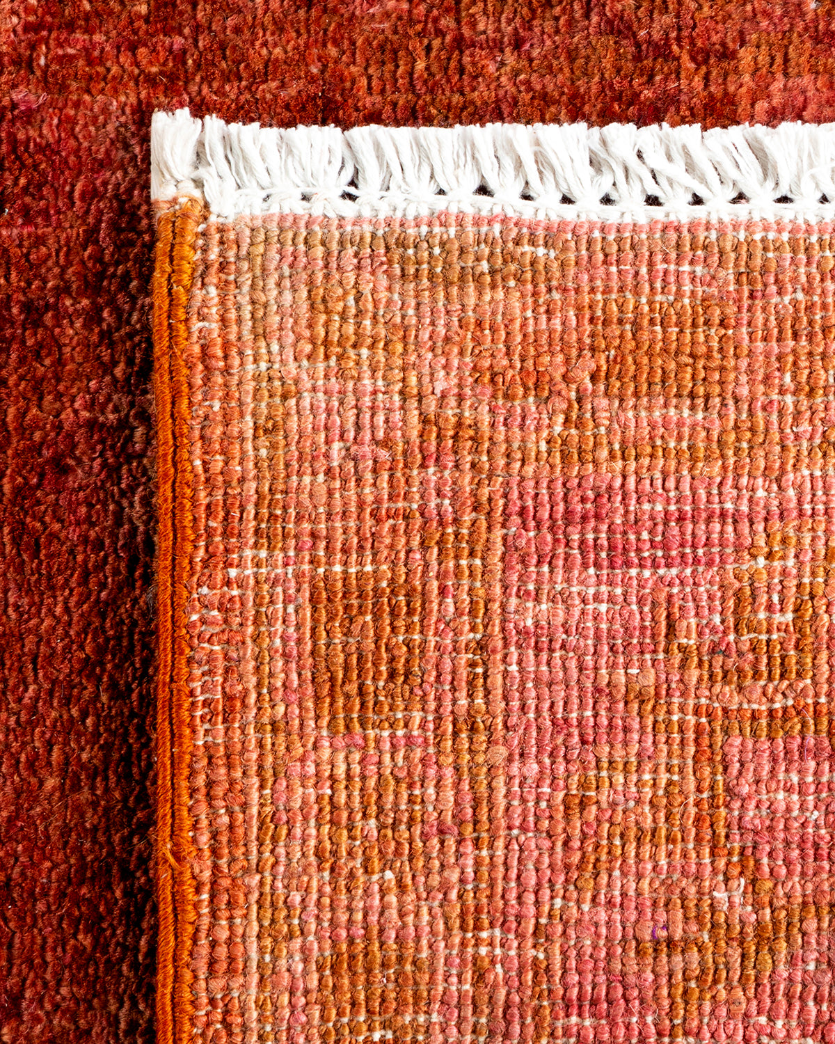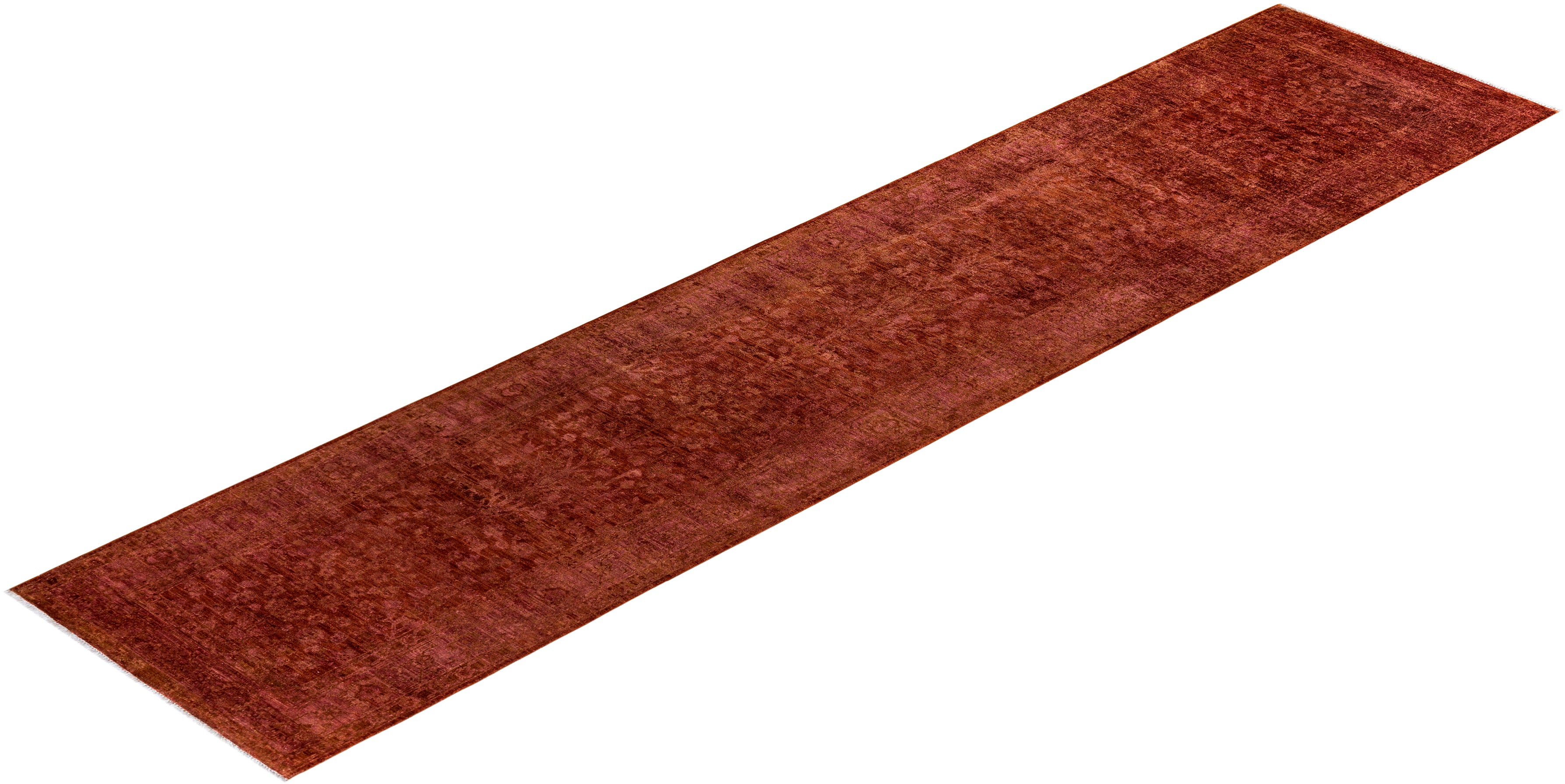 Contemporary Hand Knotted Overdyed Red Runner 3' 0" x 13' 4"
