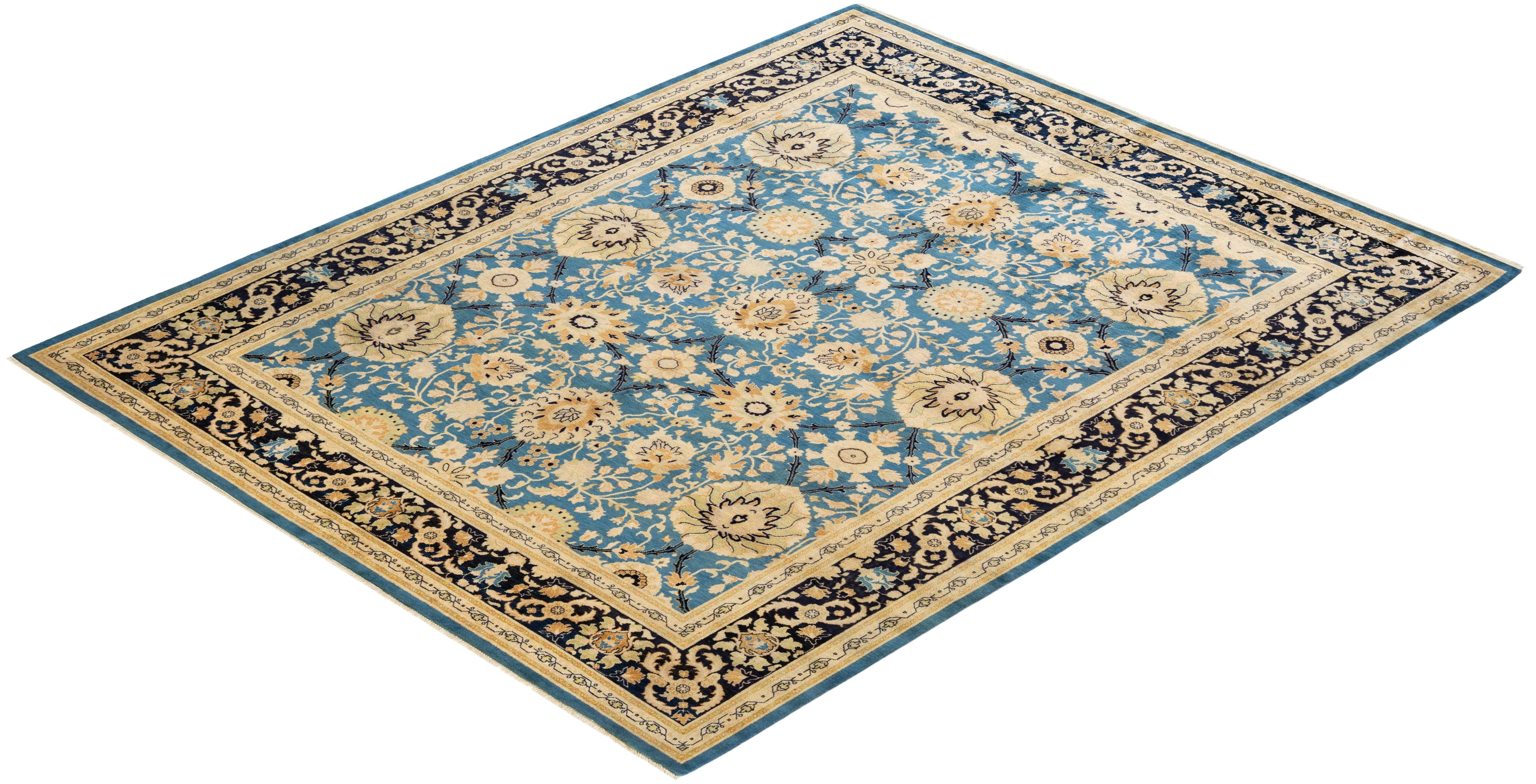 Contemporary Hand Knotted Eclectic Light Blue Area Rug 7' 10" x 10' 0"