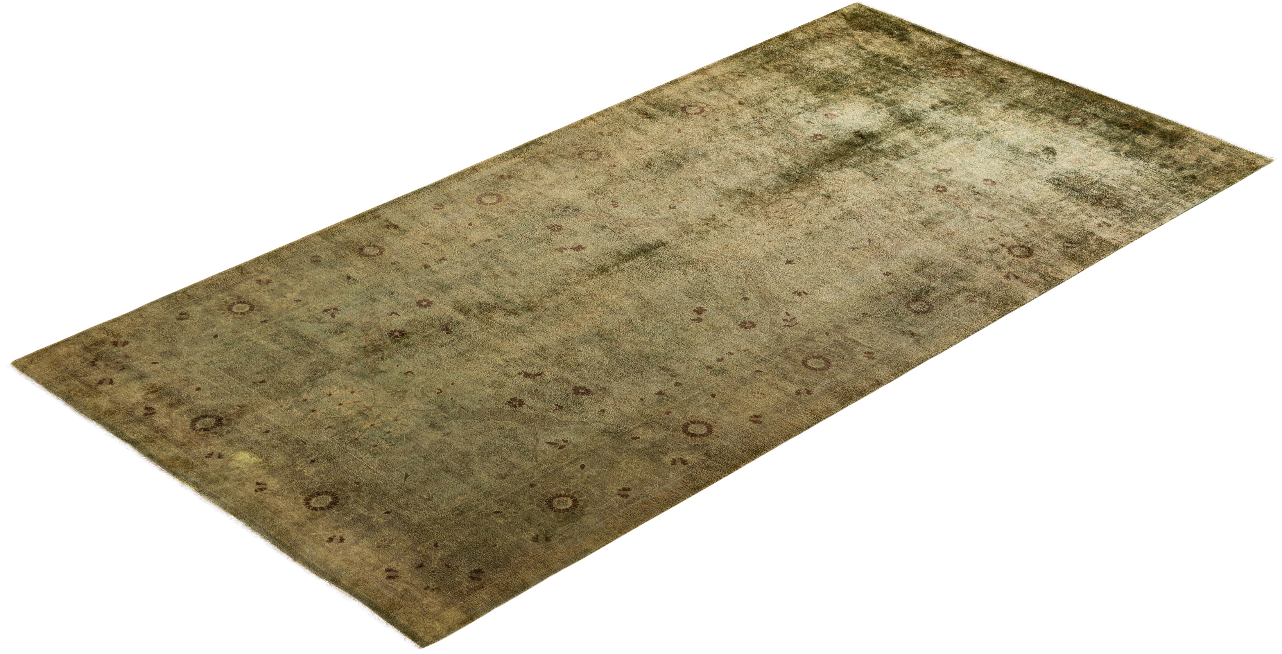 Contemporary Hand Knotted Overdyed Green Area Rug 5' 0" x 10' 1"