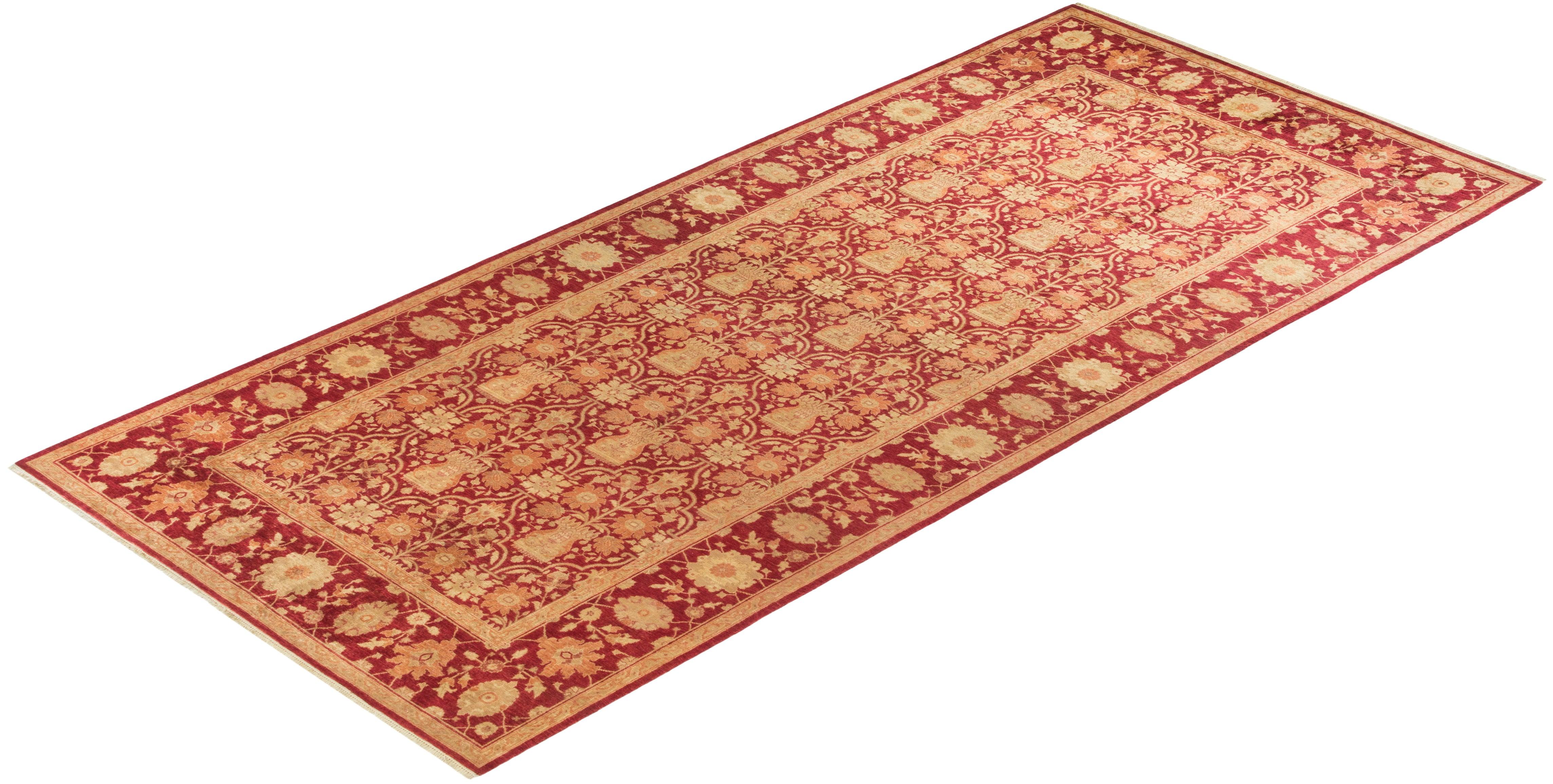 Contemporary Hand Knotted Eclectic Floral Red Area Rug 6' 1" x 13' 6"