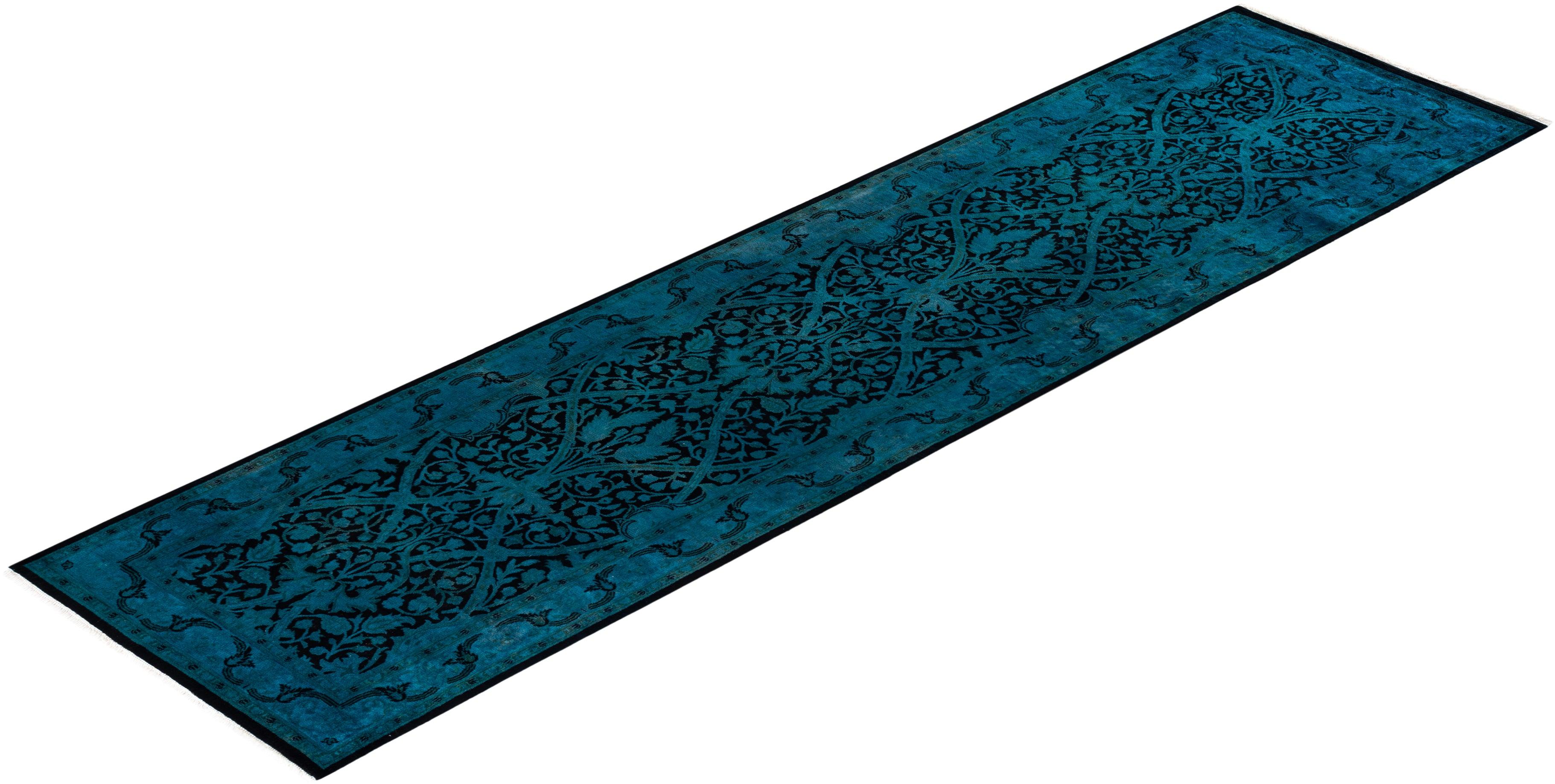Contemporary Hand-Knotted Black Runner 2' 6" x 9' 10"