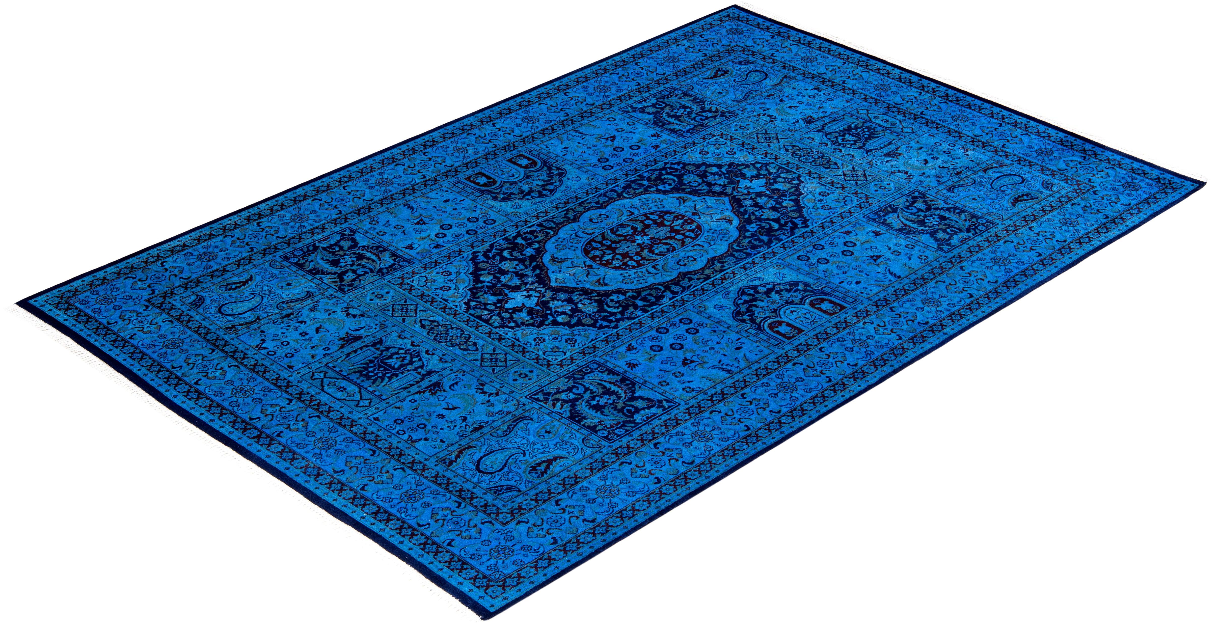 Contemporary Hand Knotted Overdyed Light Blue Area Rug 6' 1" x 9' 3"