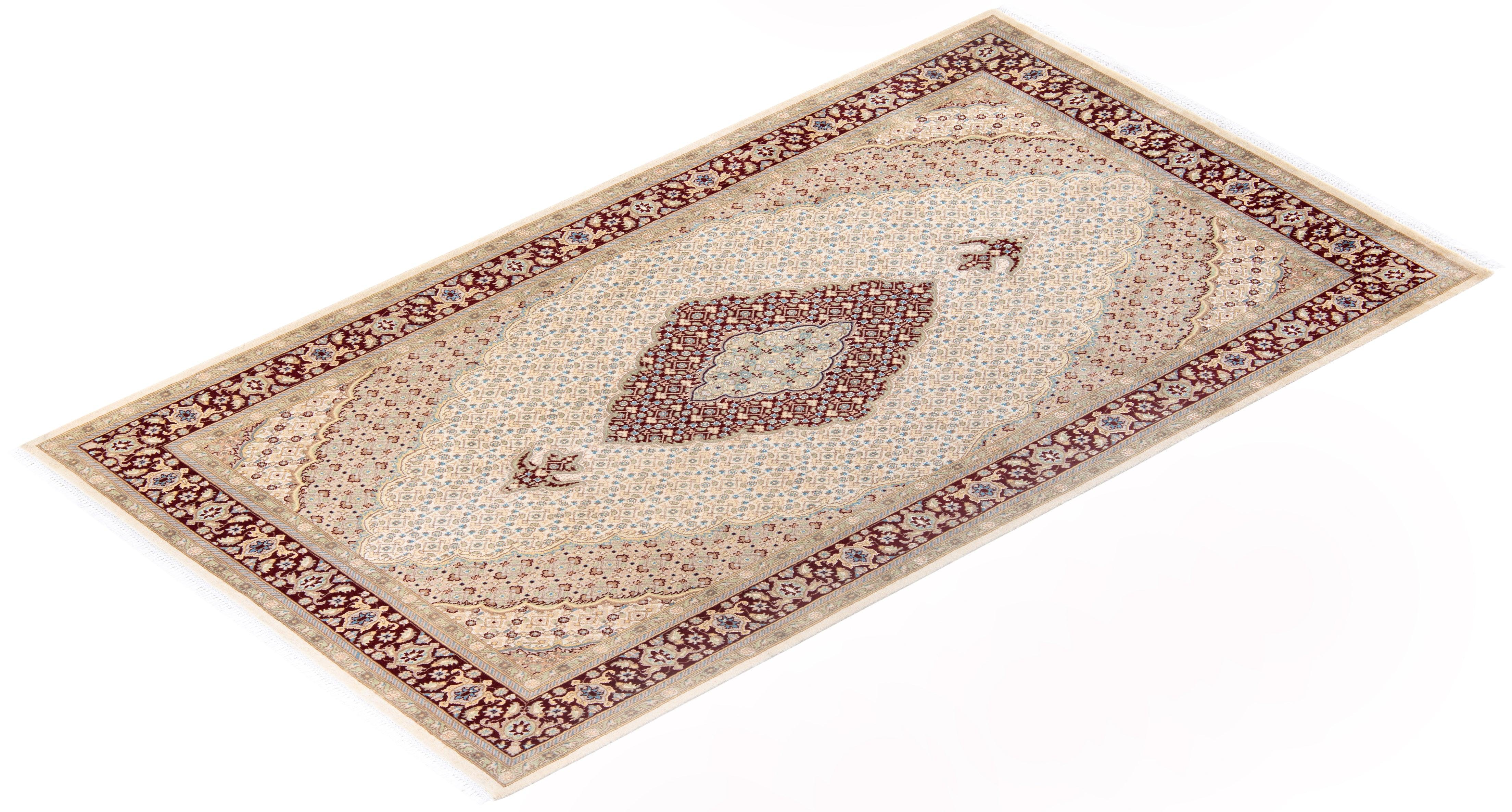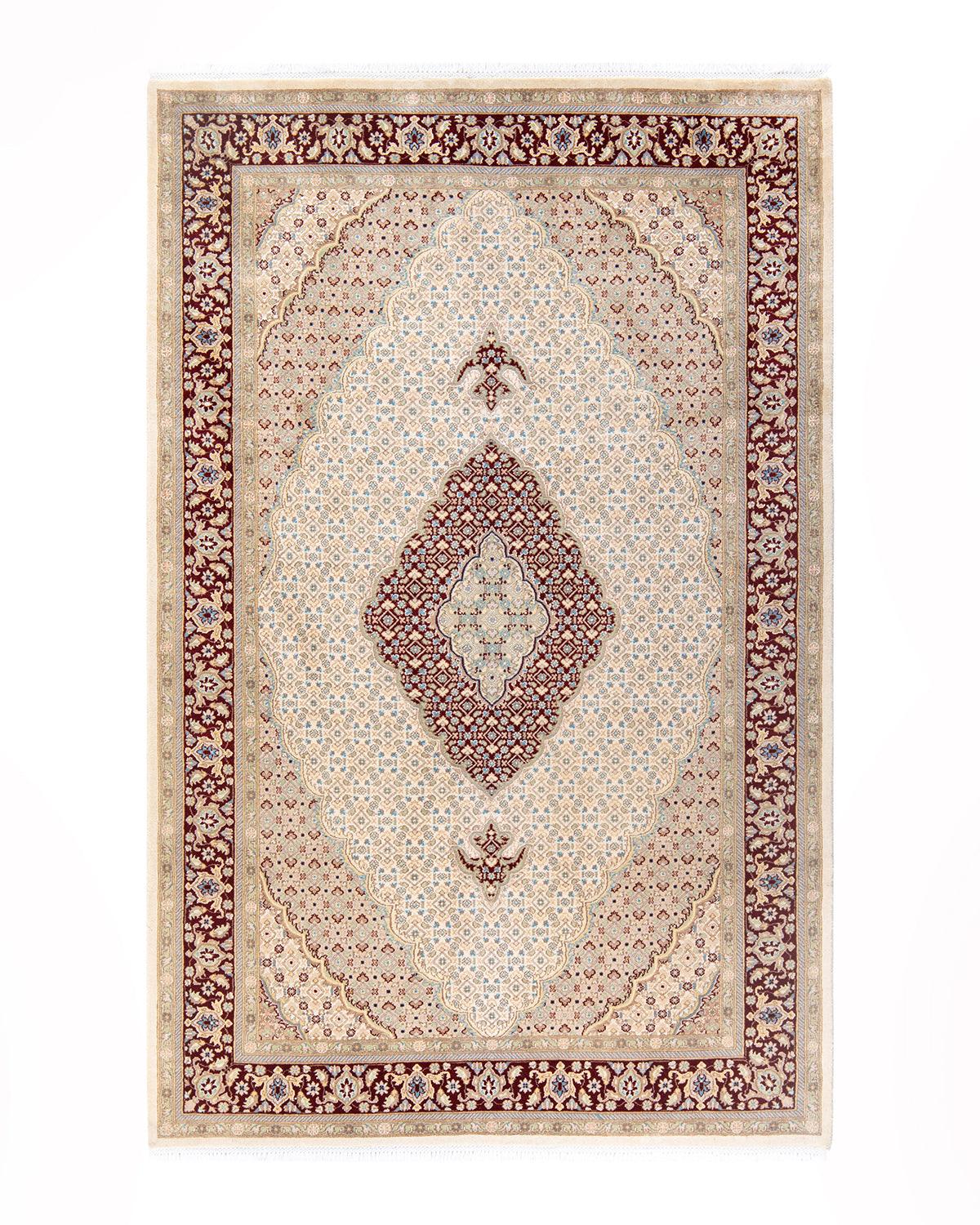 Traditional Hand Knotted Mogul Oriental Ivory Area Rug 6' 1" x 9' 5"