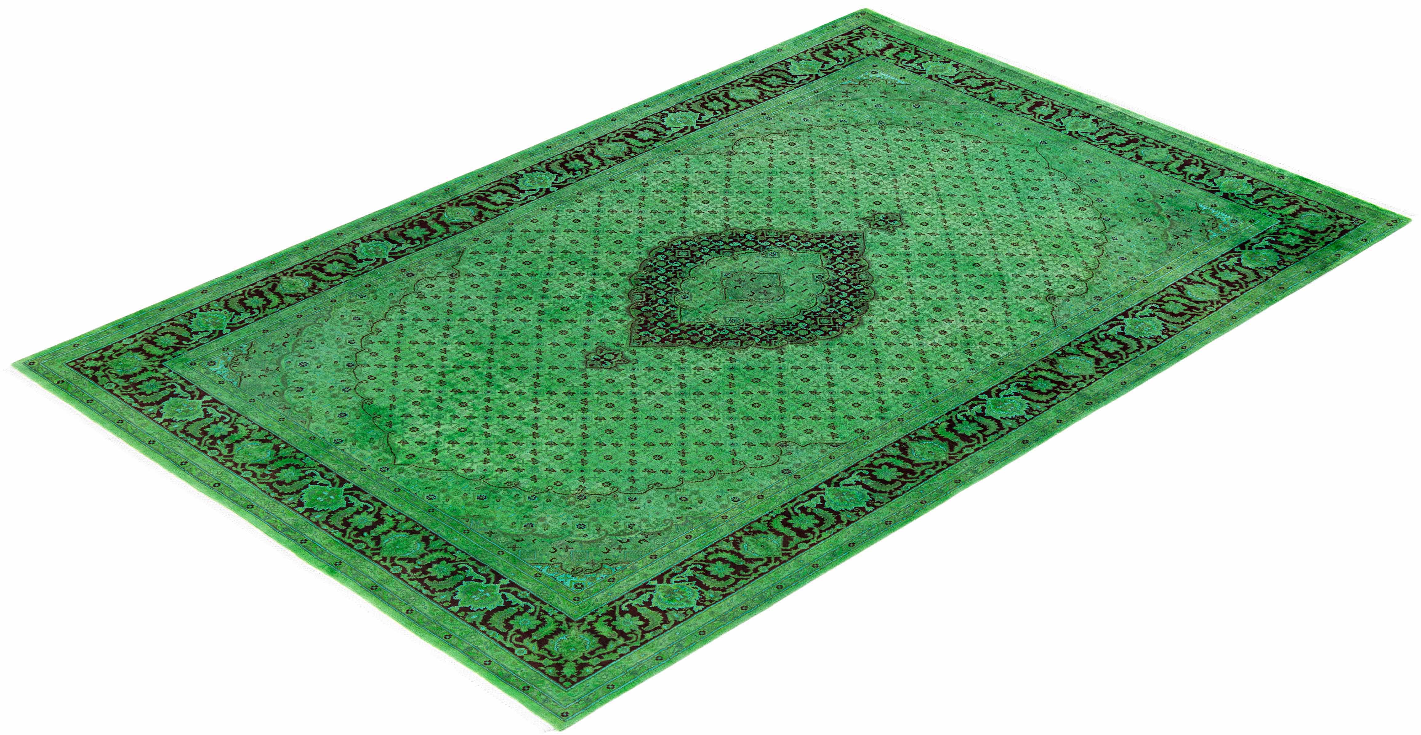 Contemporary Hand-Knotted Overdyed Green Area Rug 6' 1" x 9' 4"