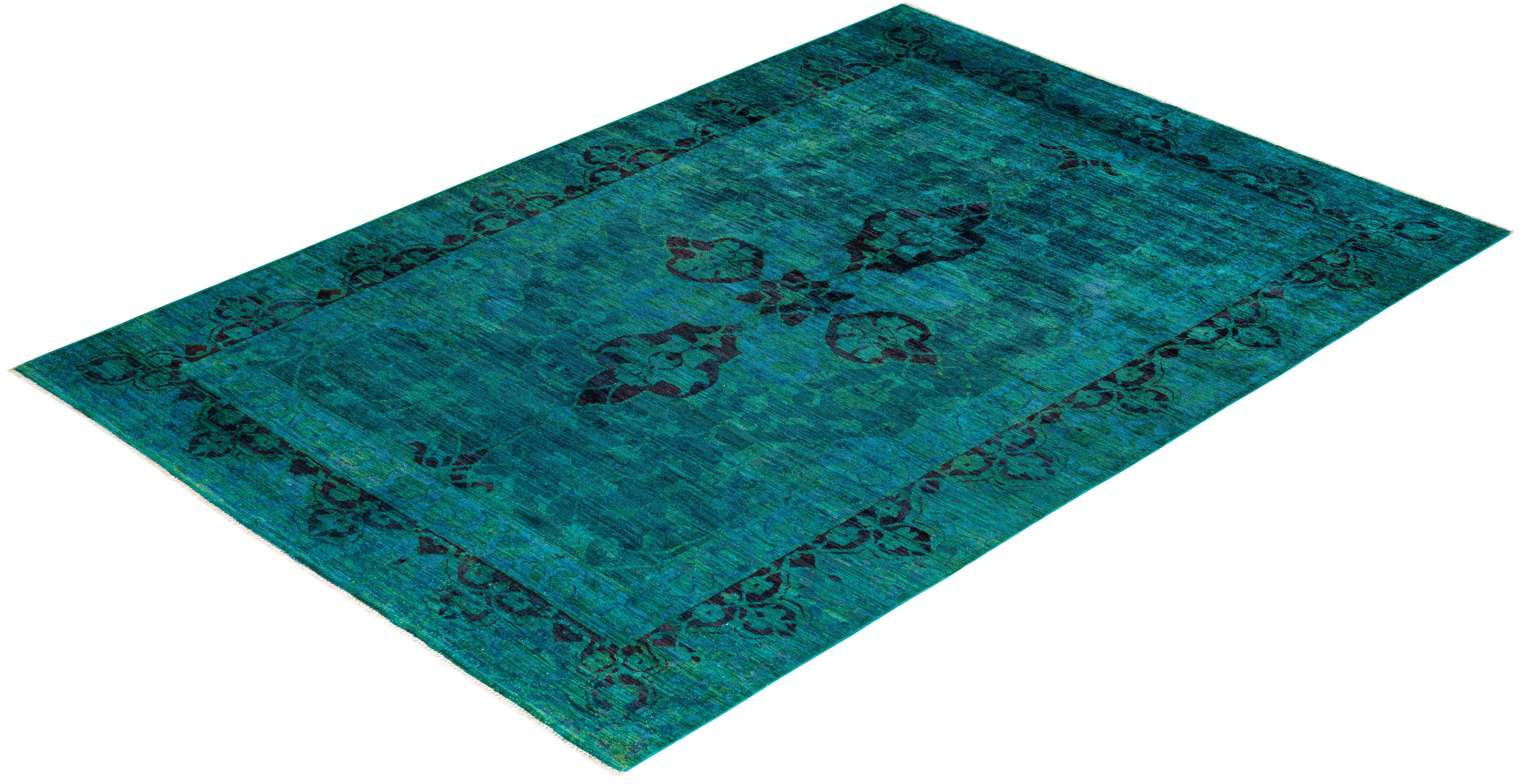 Contemporary Hand-Knotted Green Area Rug 6' 0" x 8' 8"