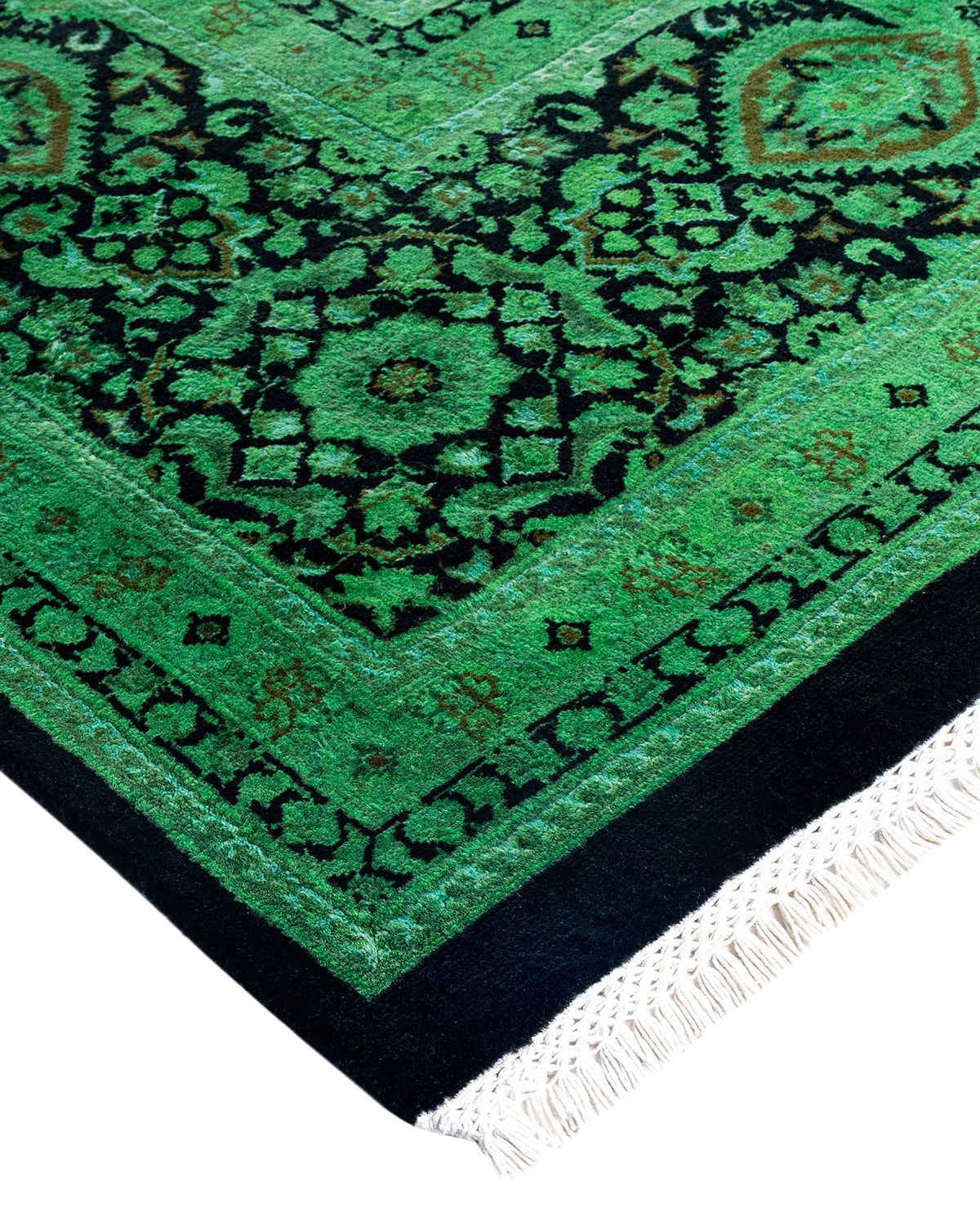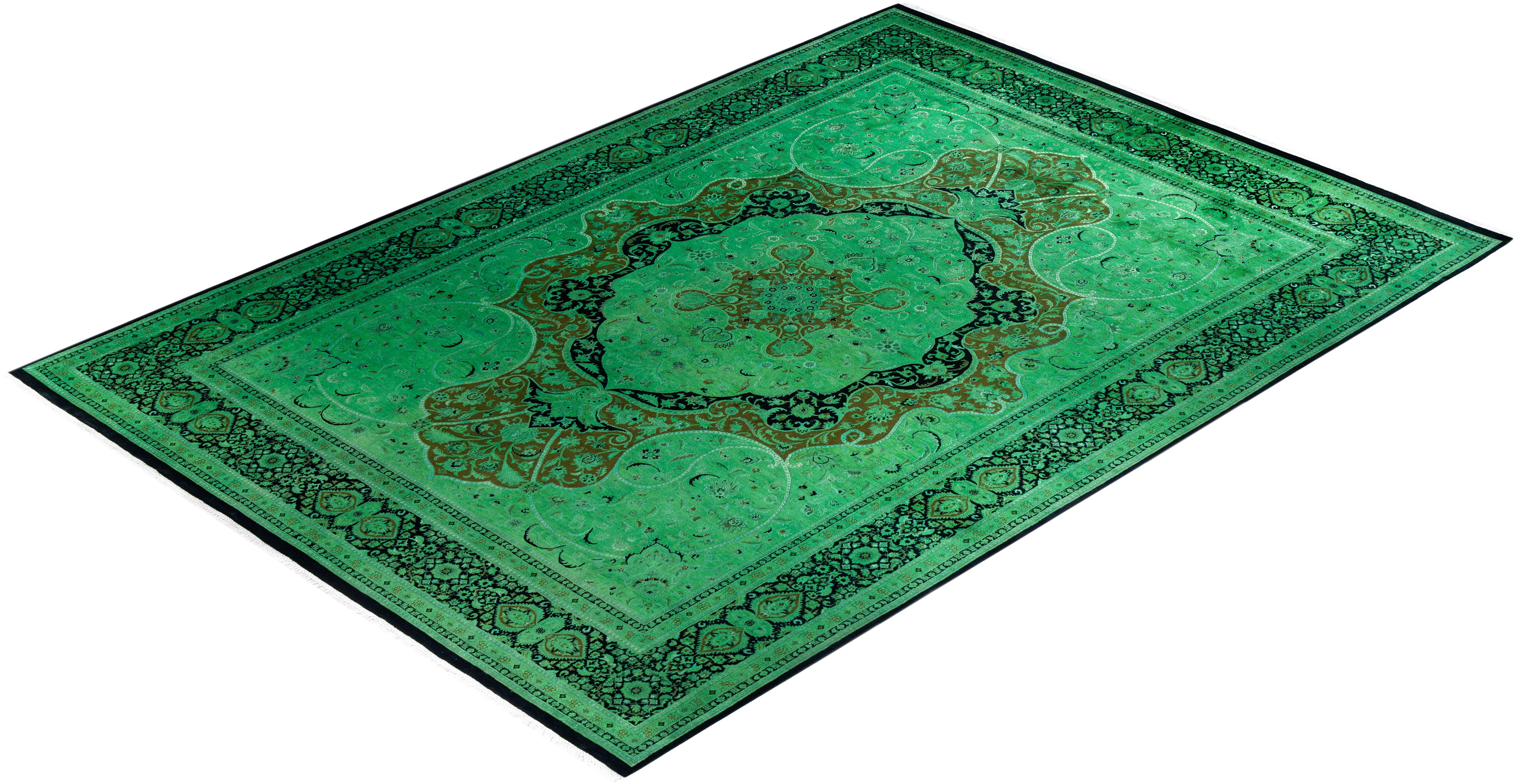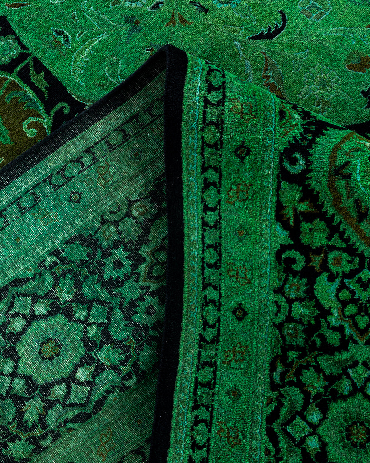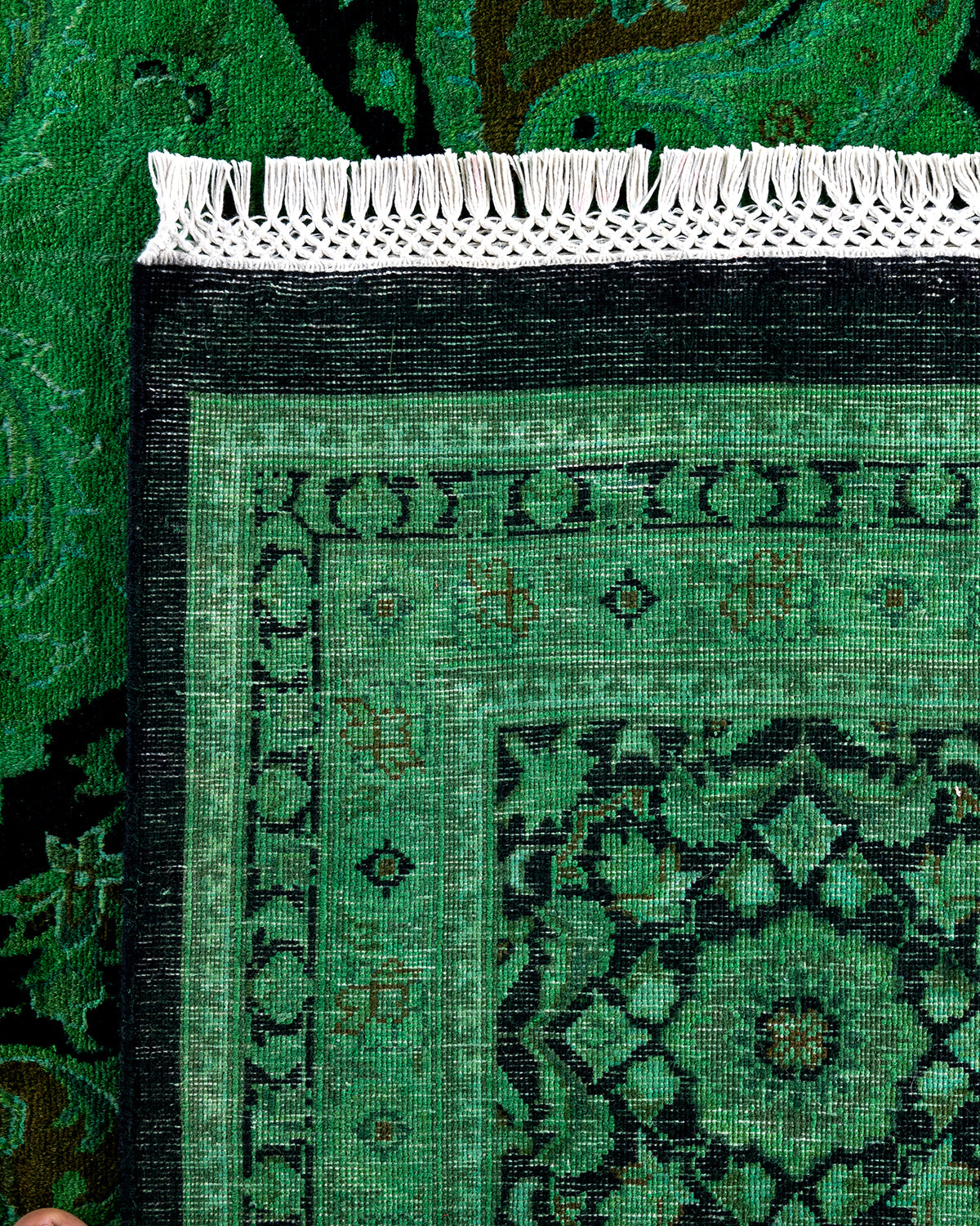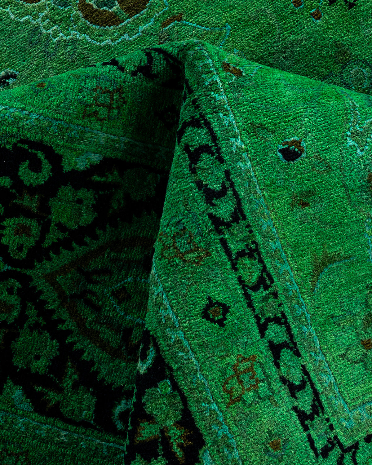 Contemporary Hand-Knotted Overdyed Green Area Rug 10' 1" x 14' 4"