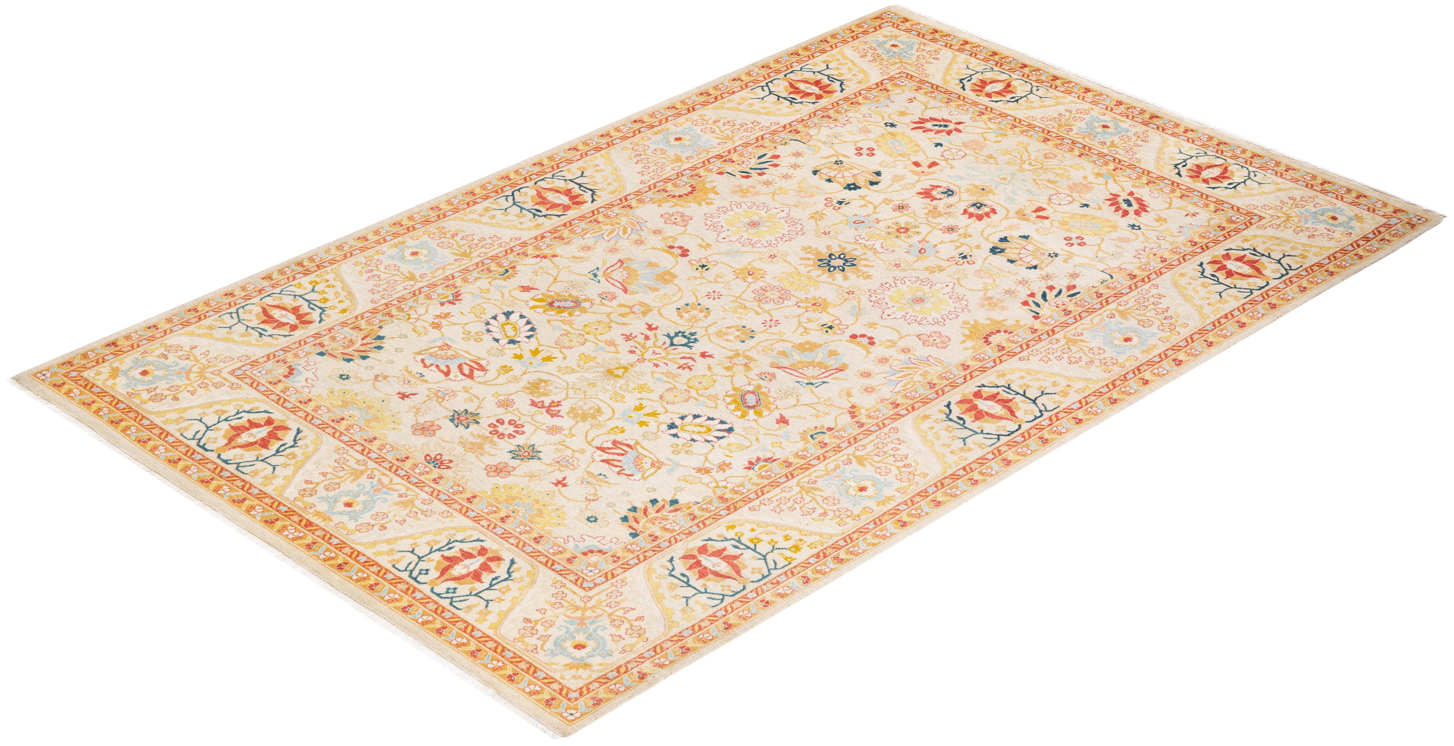 Traditional Hand Knotted Mogul Oriental Ivory Area Rug 5' 1" x 7' 10"