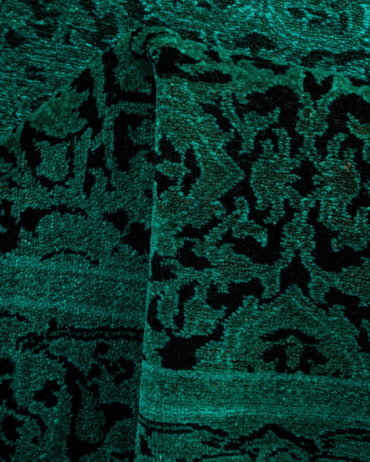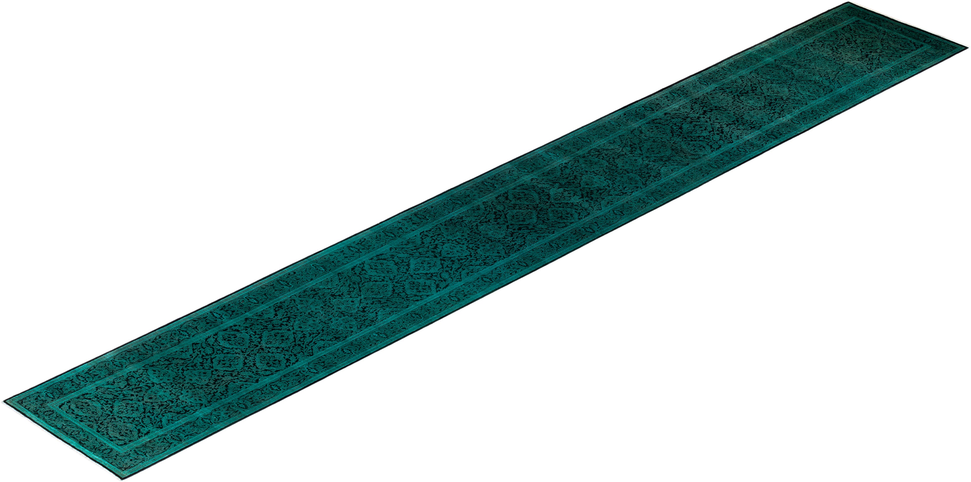Contemporary Hand-Knotted Overdyed Green Runner 2' 7" x 19' 3"