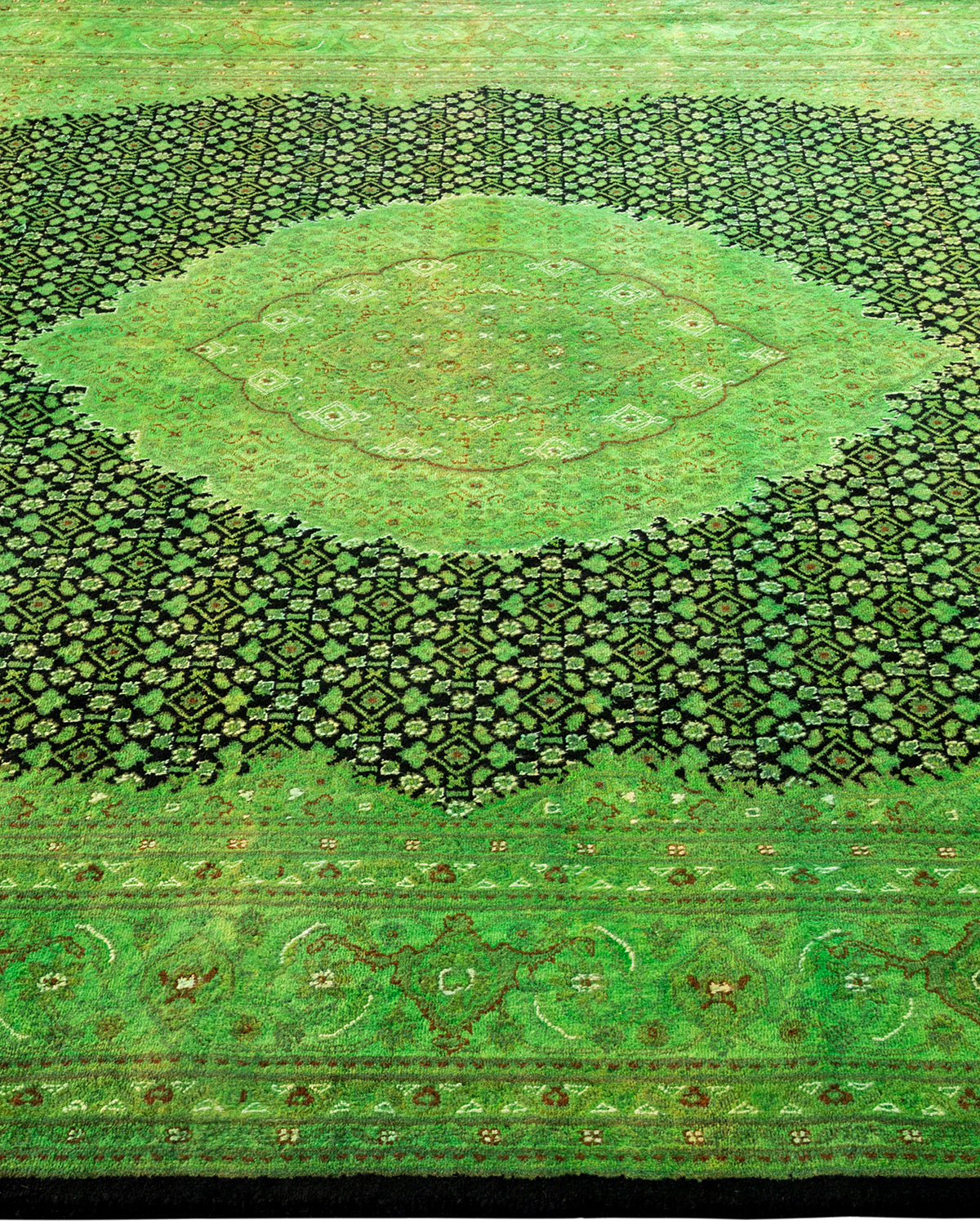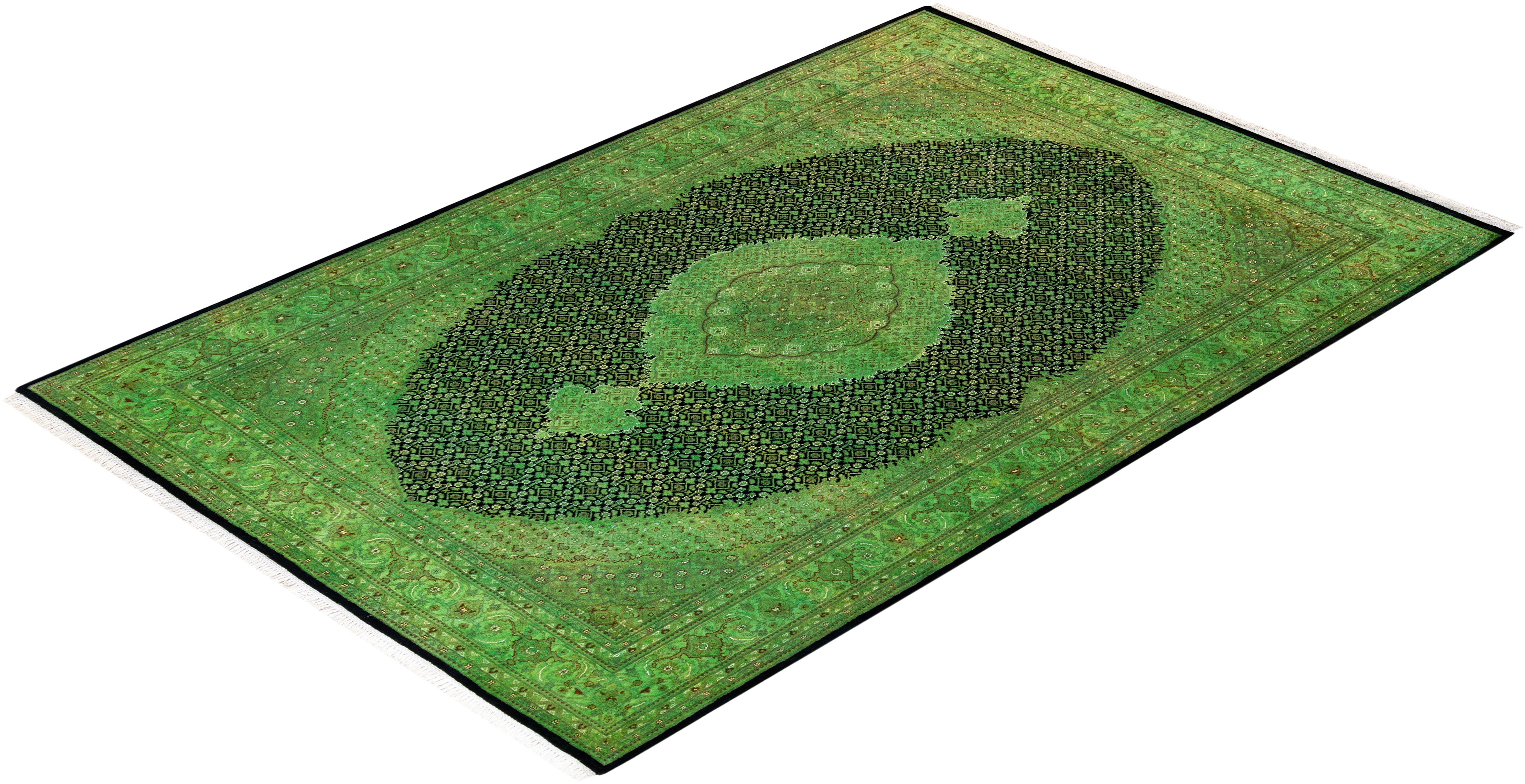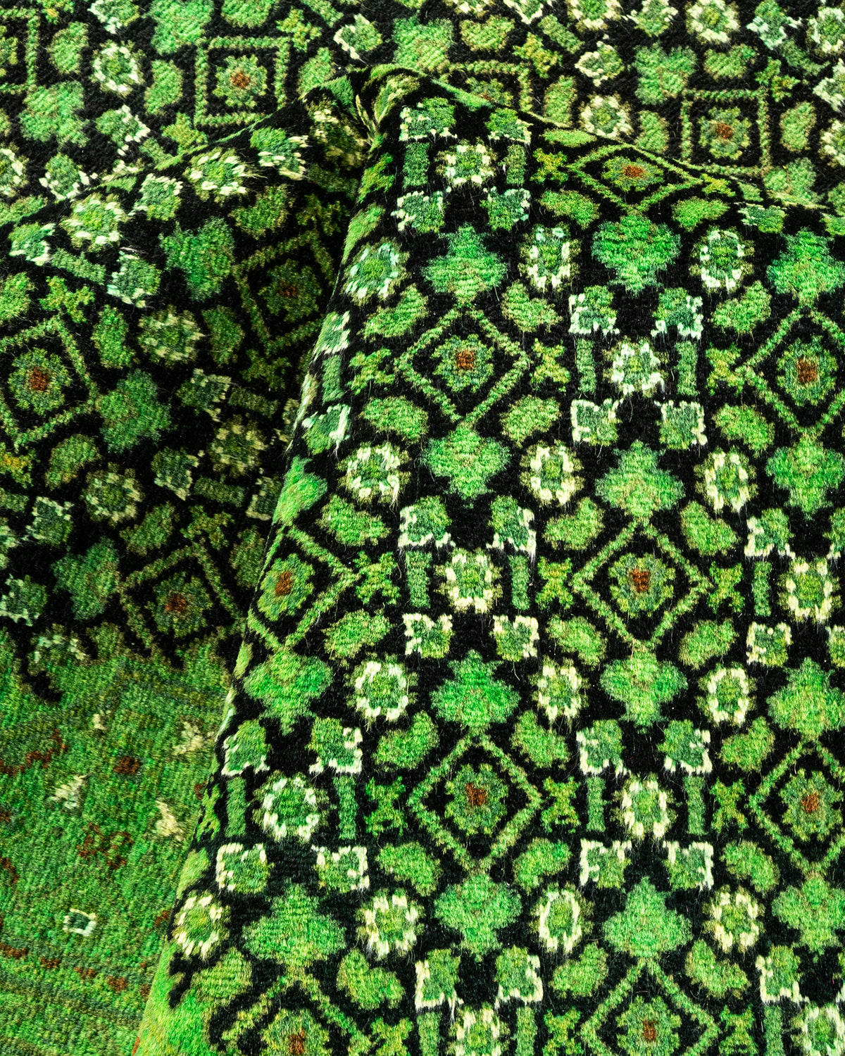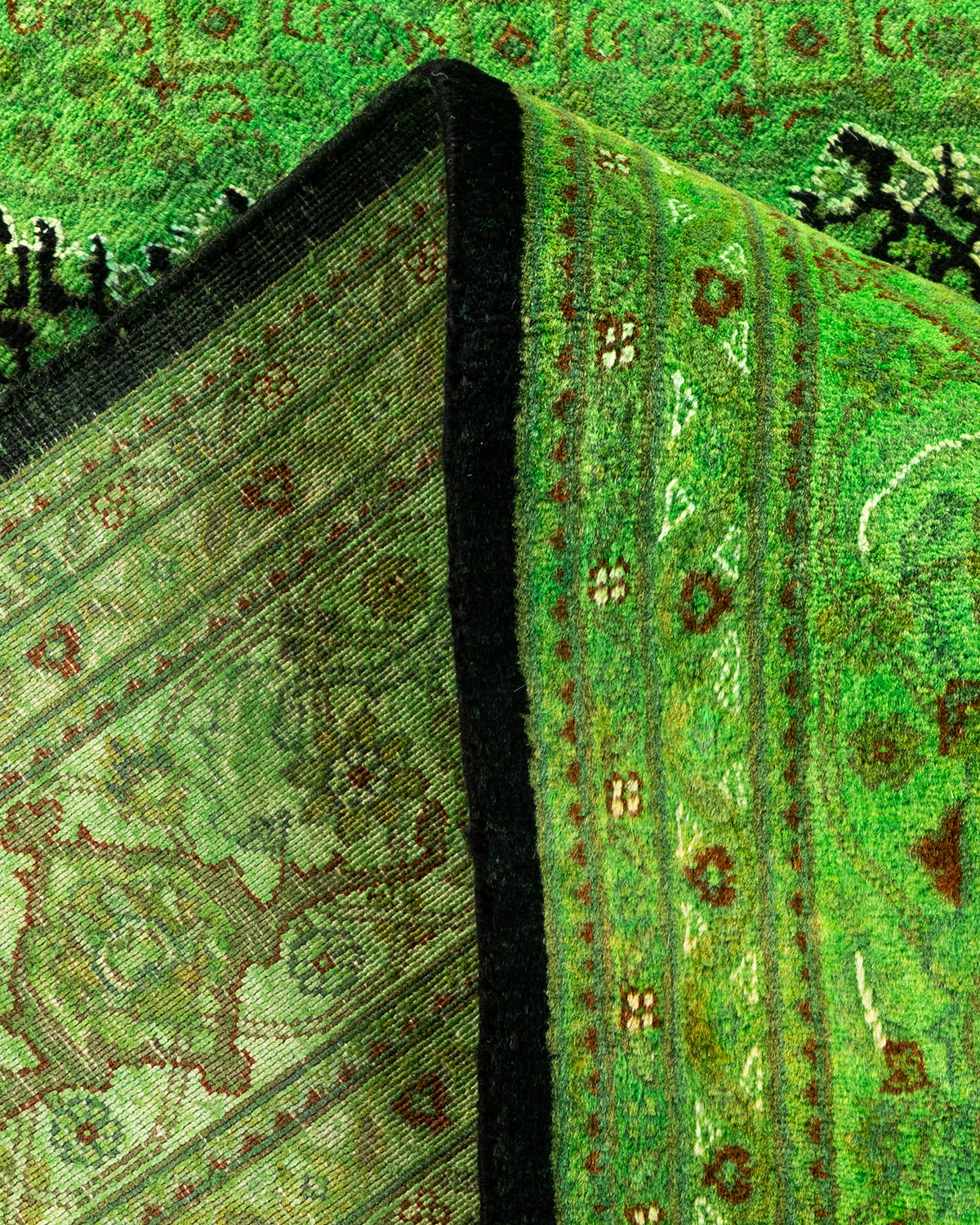 Contemporary Hand-Knotted Overdyed Green Area Rug 6' 1" x 9' 3"