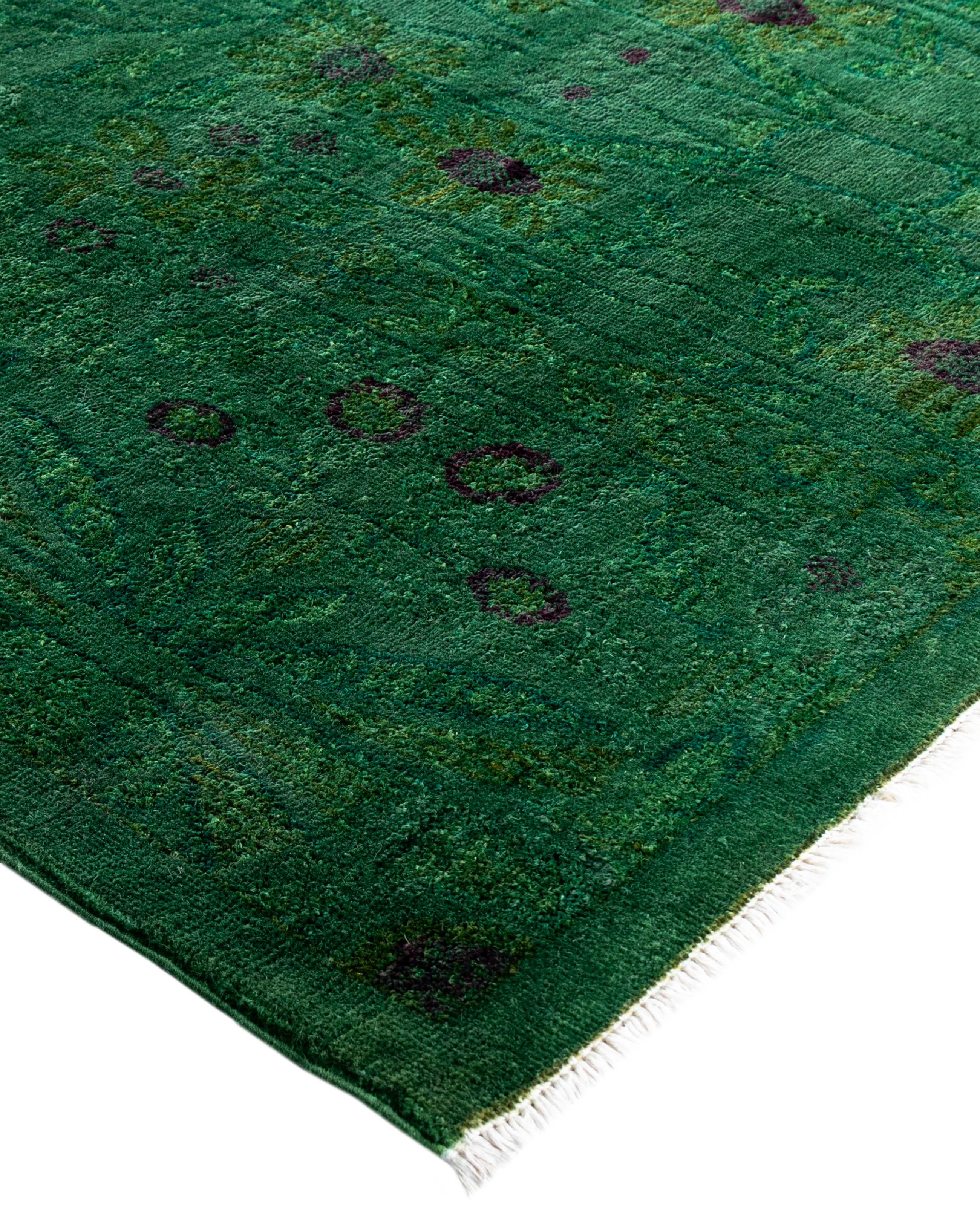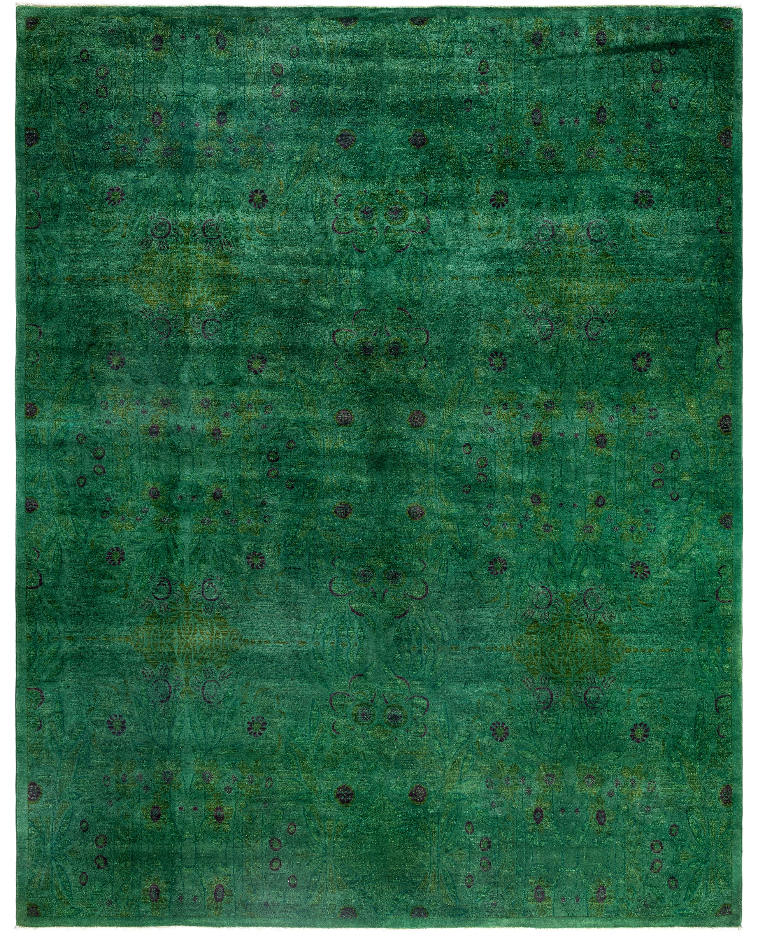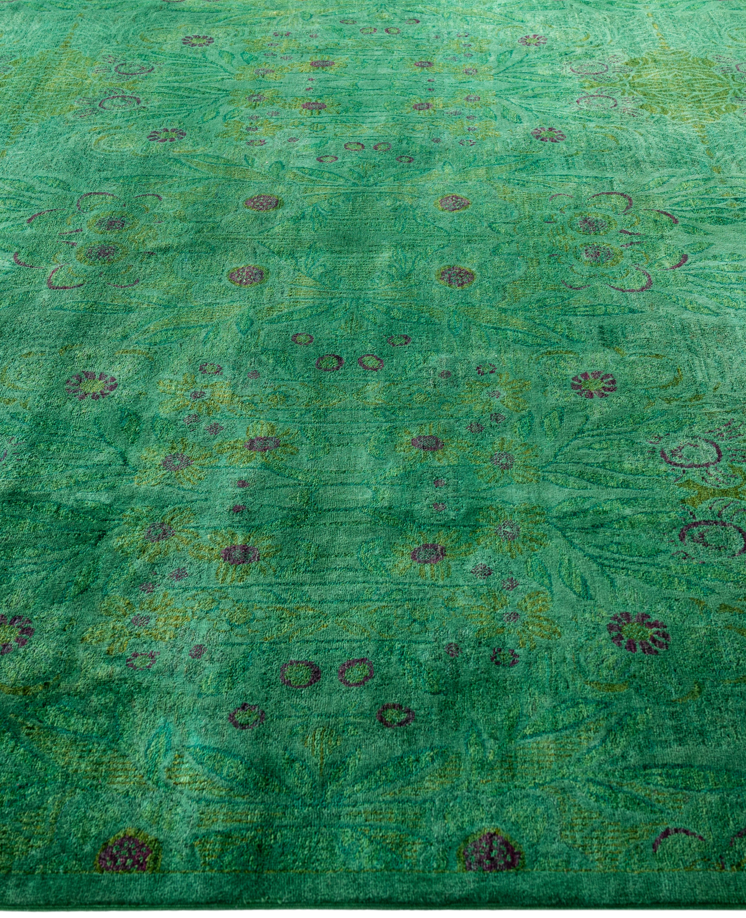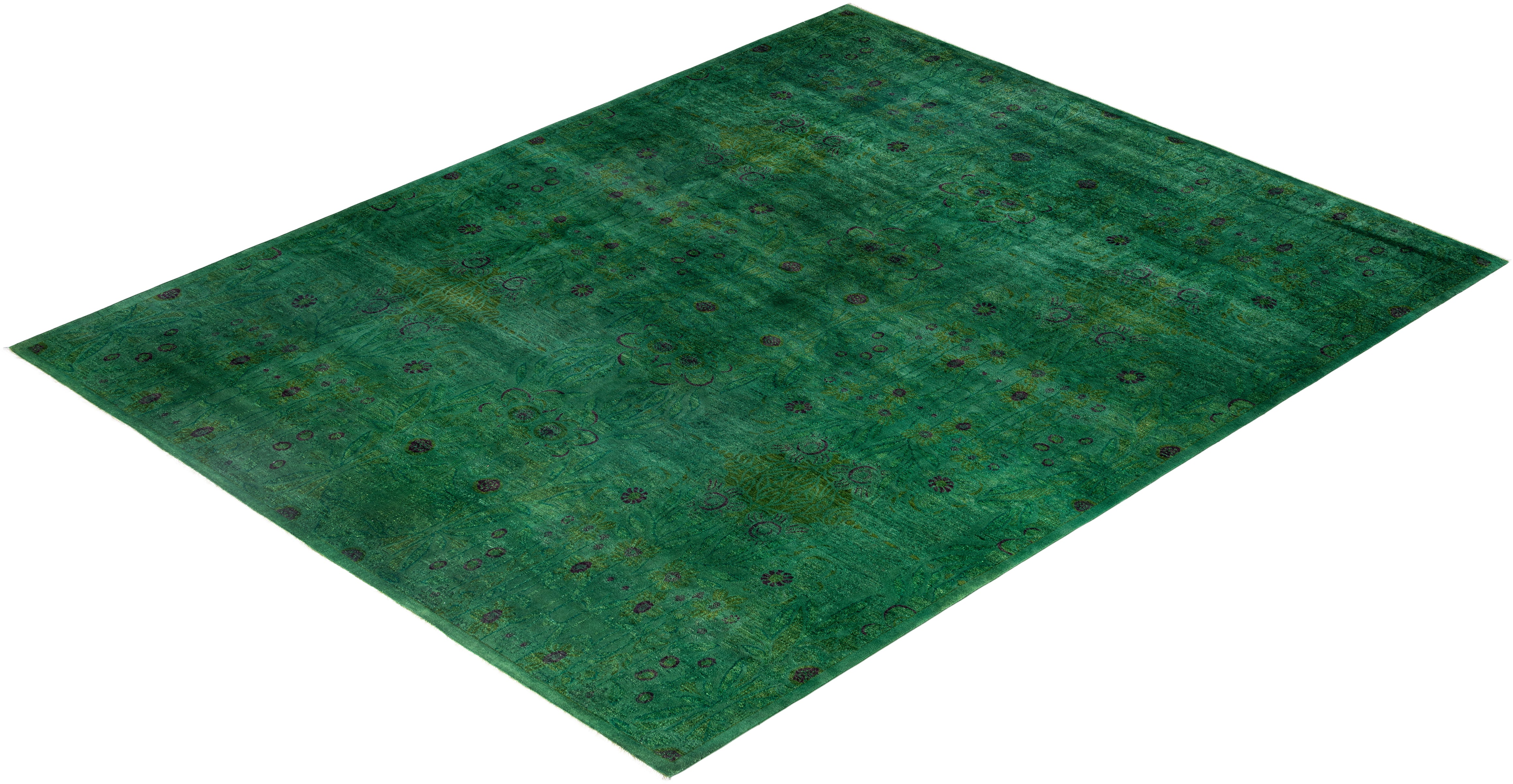 Overdyed One-of-a-Kind Wool Green Area Rug 9' 0" x 11' 5"