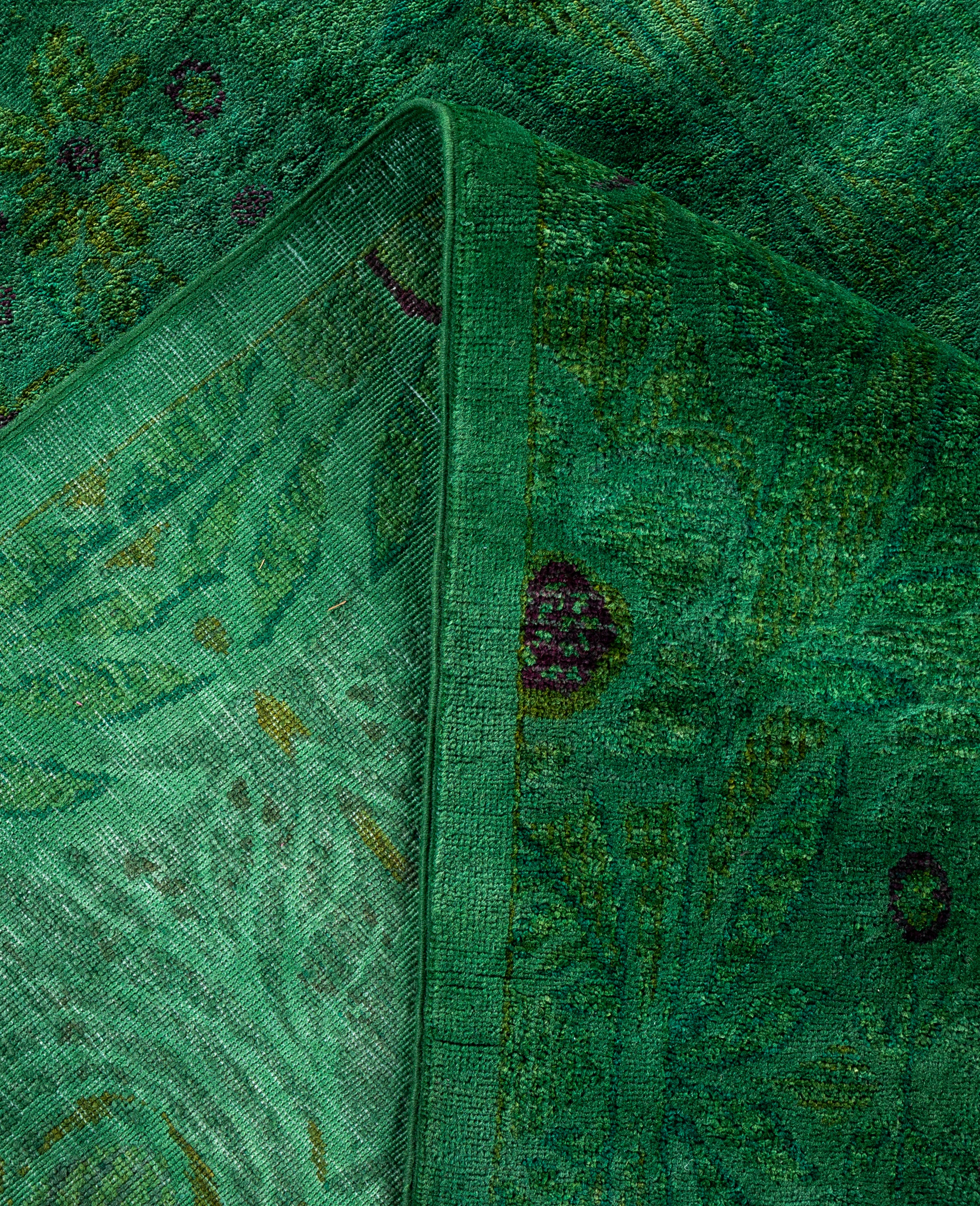 Over-dyed area rugs are created by taking vintage or traditional rugs and applying a vibrant, monochromatic dye over the existing patterns. This technique results in a bold, modern aesthetic while preserving the intricate designs beneath, blending the old with the new. The rugs are often faded and distressed before dyeing, which adds texture and depth to their appearance. The over-dye process breathes new life into worn or antique rugs, giving them a contemporary twist with rich, saturated colors like deep blues, purples, or bright reds. These rugs work well in both eclectic and modern spaces, offering a unique, artistic flair to any room. They provide a dynamic focal point, balancing between traditional craftsmanship and contemporary design trends. Over-dyed rugs are perfect for those looking to add a pop of color and character to their home decor.