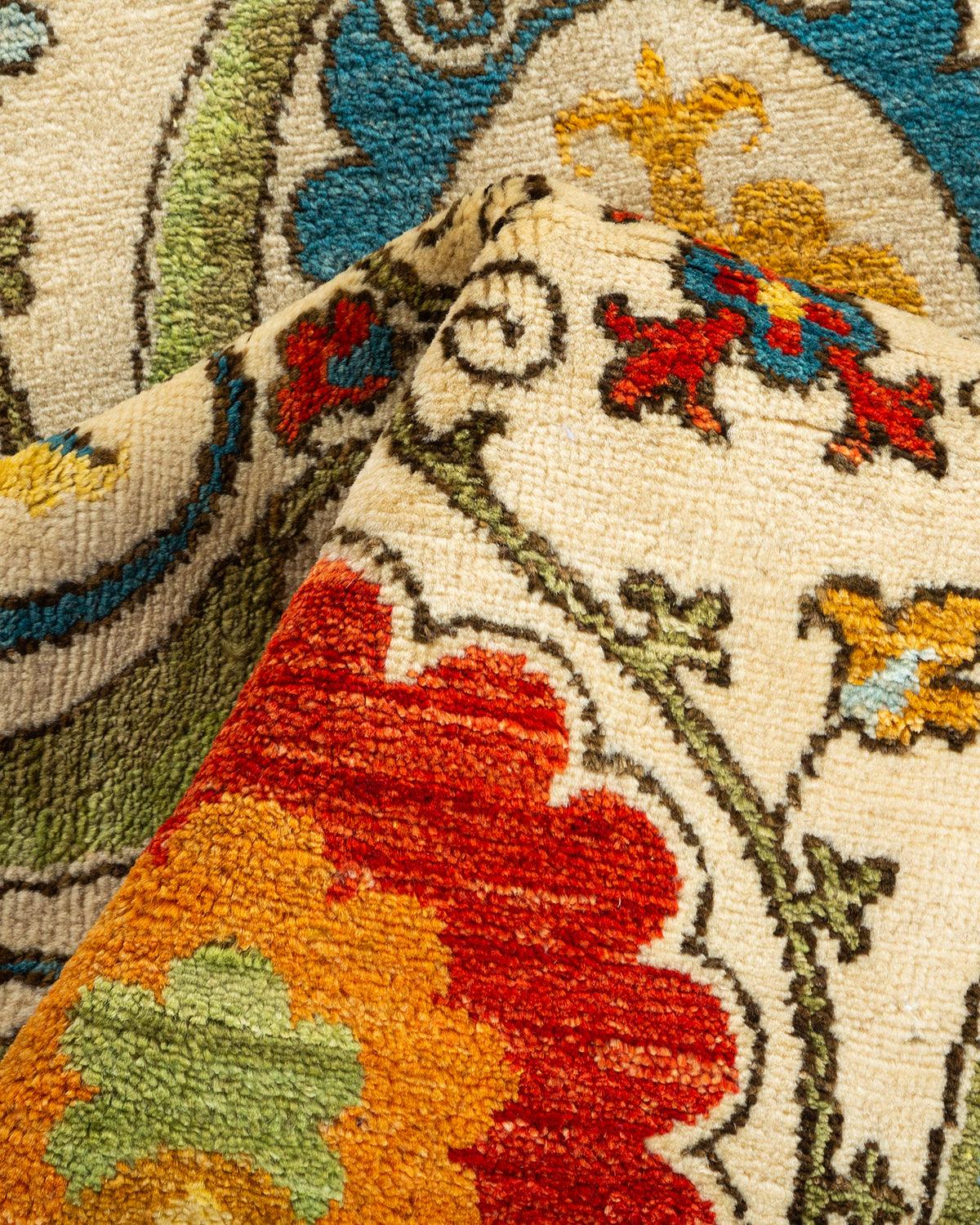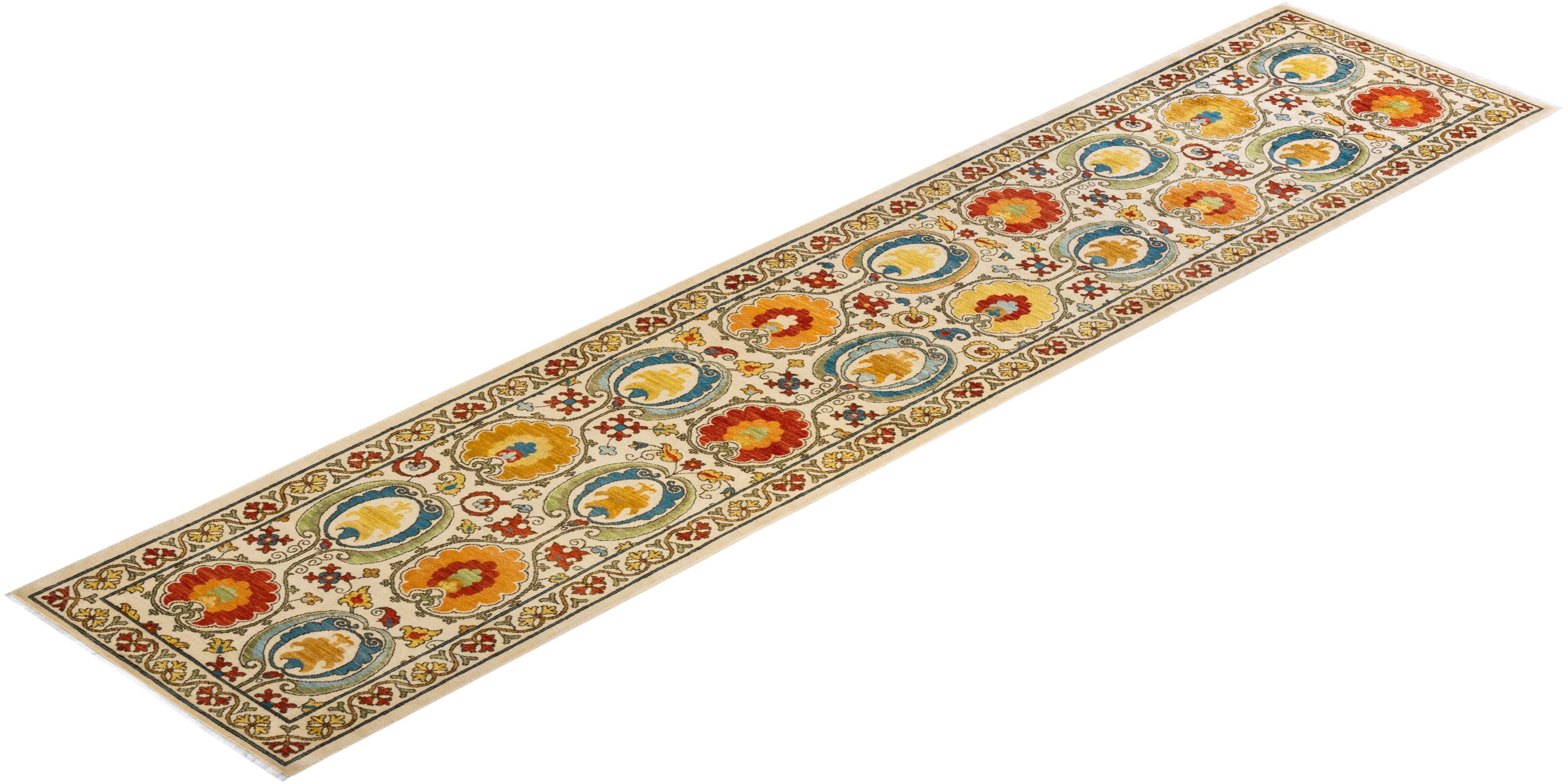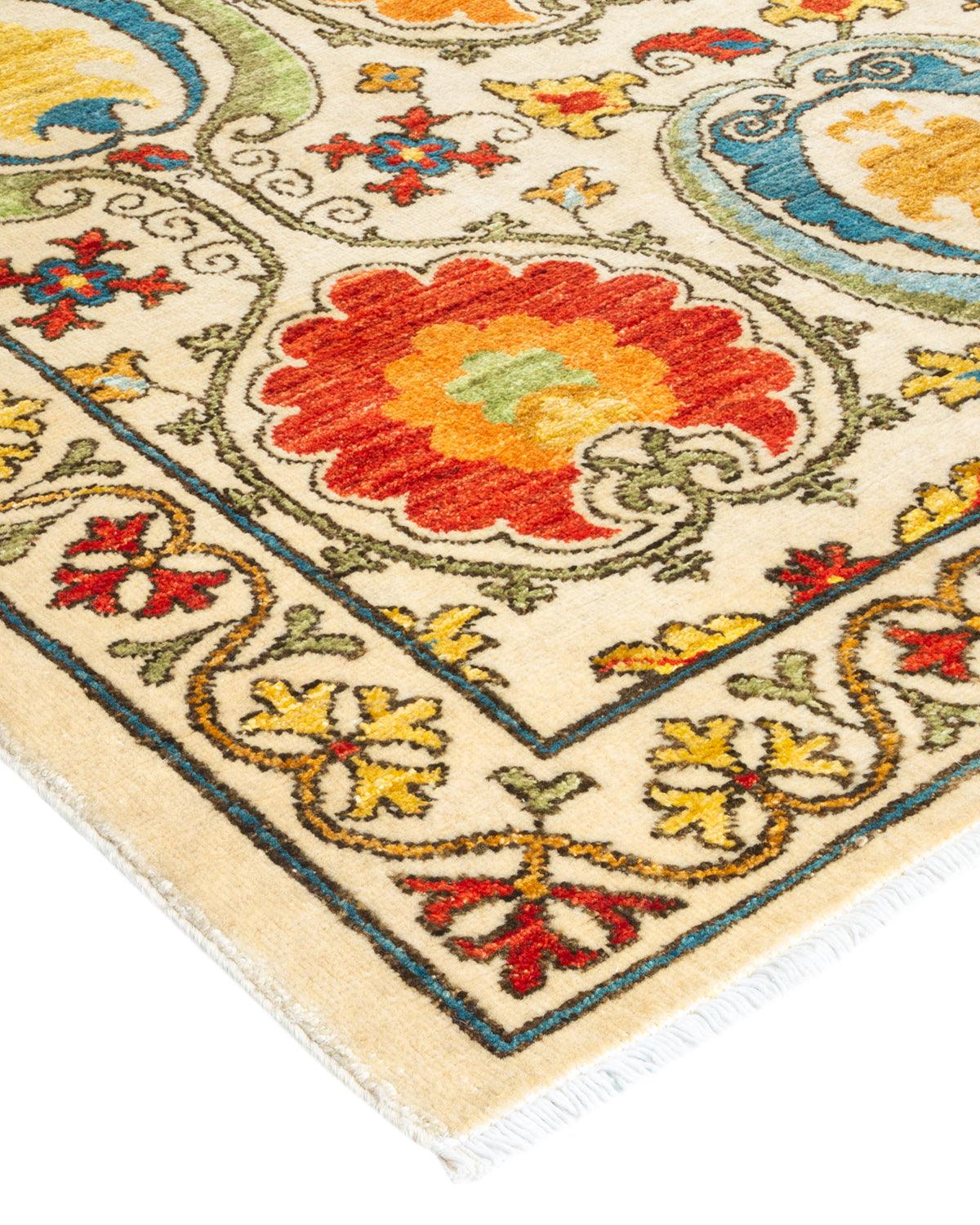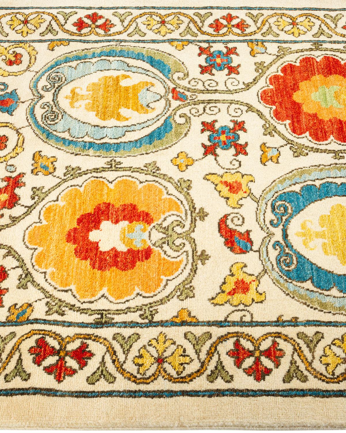 The meticulous art of hand-embroidered textiles from Uzbekistan tribes inspired the Suzani Collection of rugs. Bold motifs, particularly pomegranates, the sun, and the moon, are frequent elements, their simple yet compelling designs made even more spectacular in wool and silk. Once traditional pieces of a dowry, these rugs will easily become part of families for years to come.
