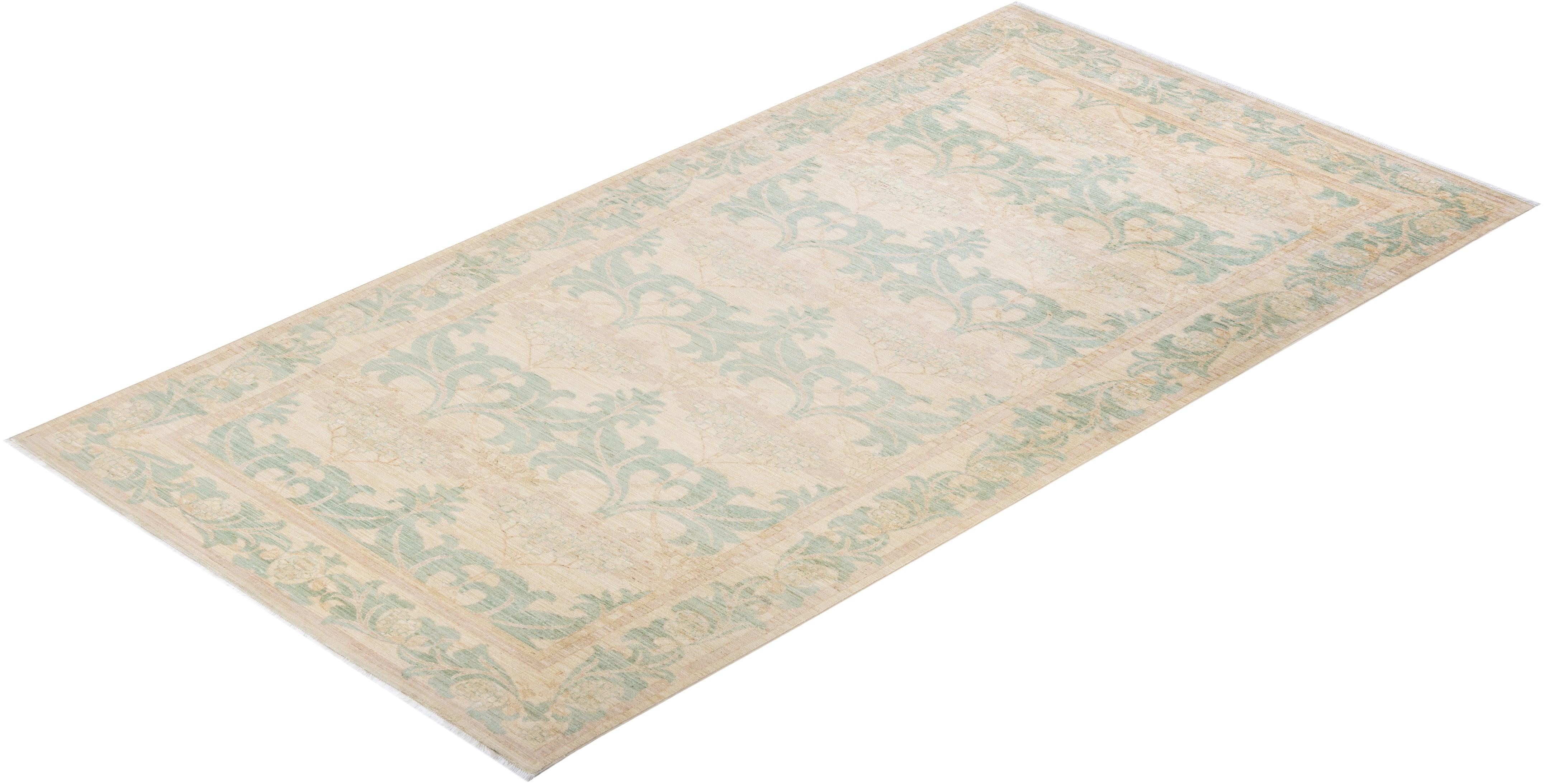 Contemporary Hand Knotted Arts & Crafts Floral Ivory Runner 6' 1" x 11' 7"