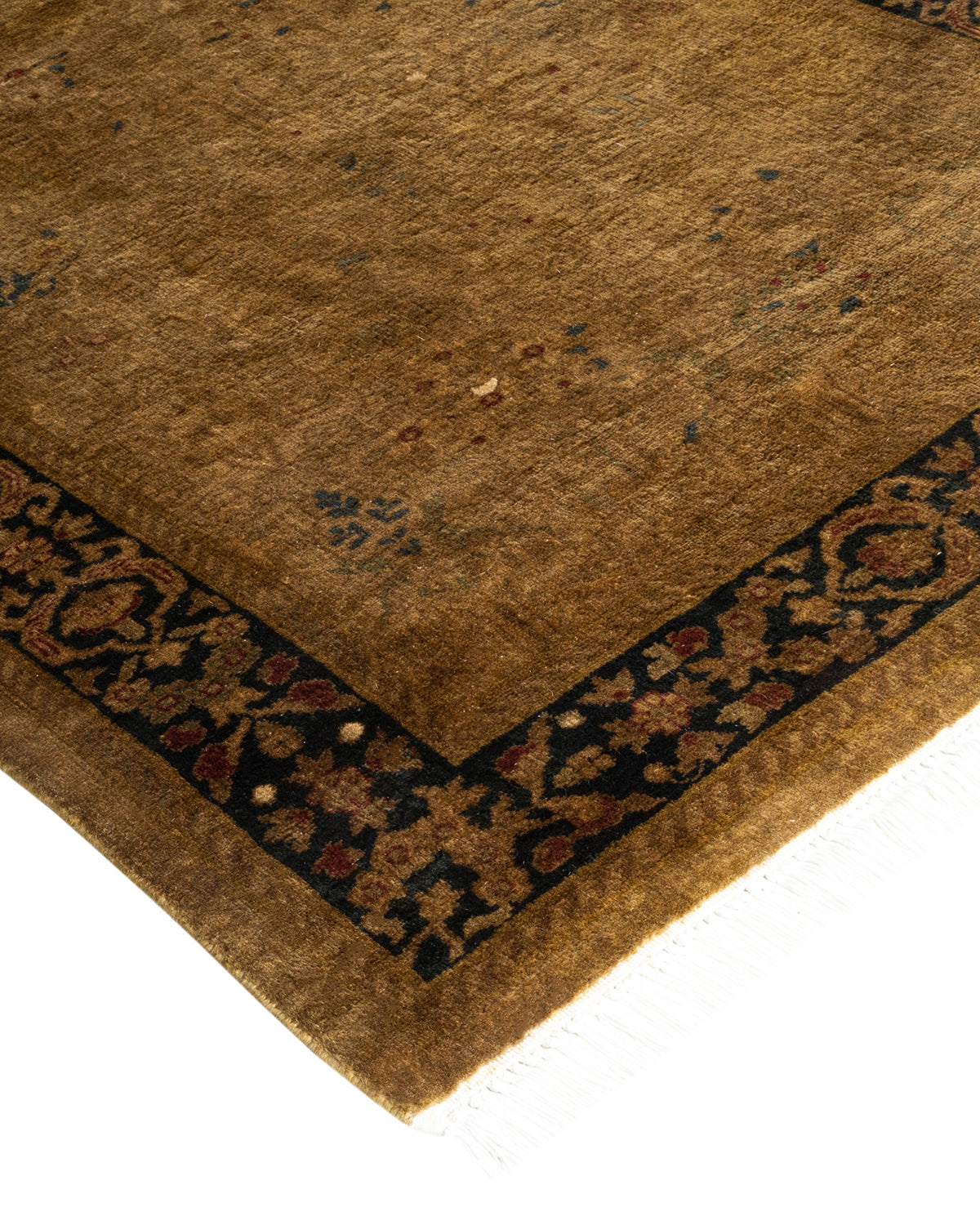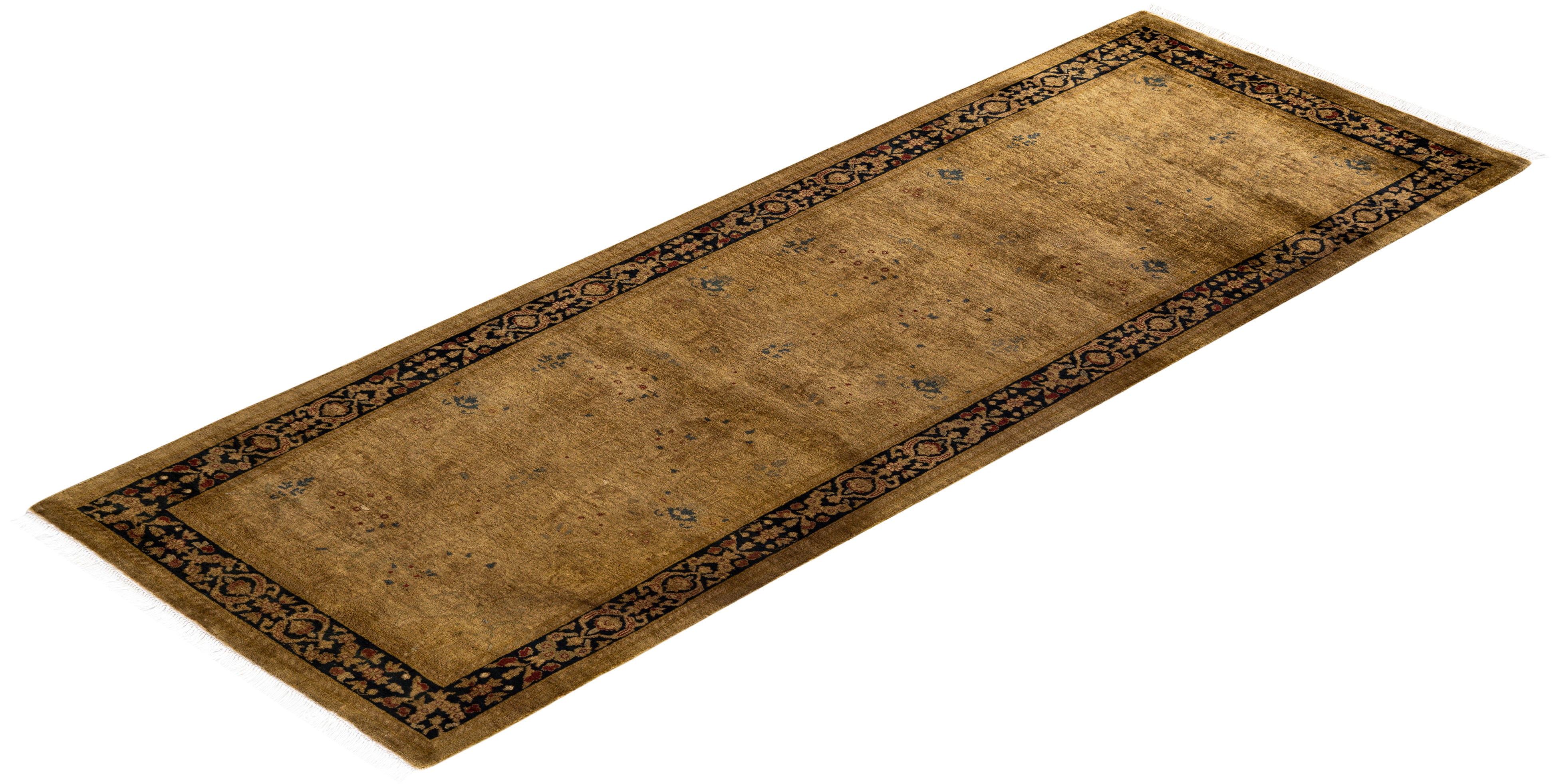 Contemporary Hand Knotted Overdyed Gold Runner 2' 7" x 7' 2"