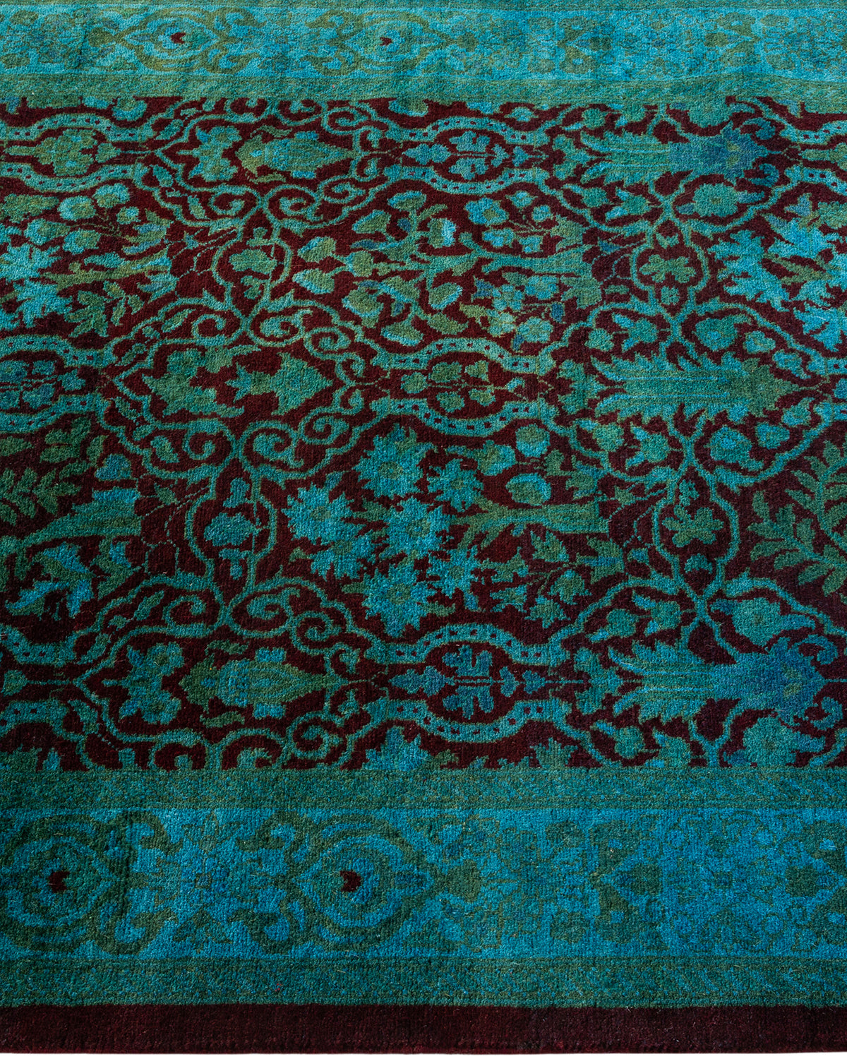 Overdyed rugs epitomize classic with a twist: traditional patterns overdyed in brilliant color. Each hand-knotted rug is washed in a 100%-natural botanical dye that reveals hidden nuances in the designs. These are rugs that transcend trends, and their sturdy construction ensures that they’ll withstand years of heavy traffic.