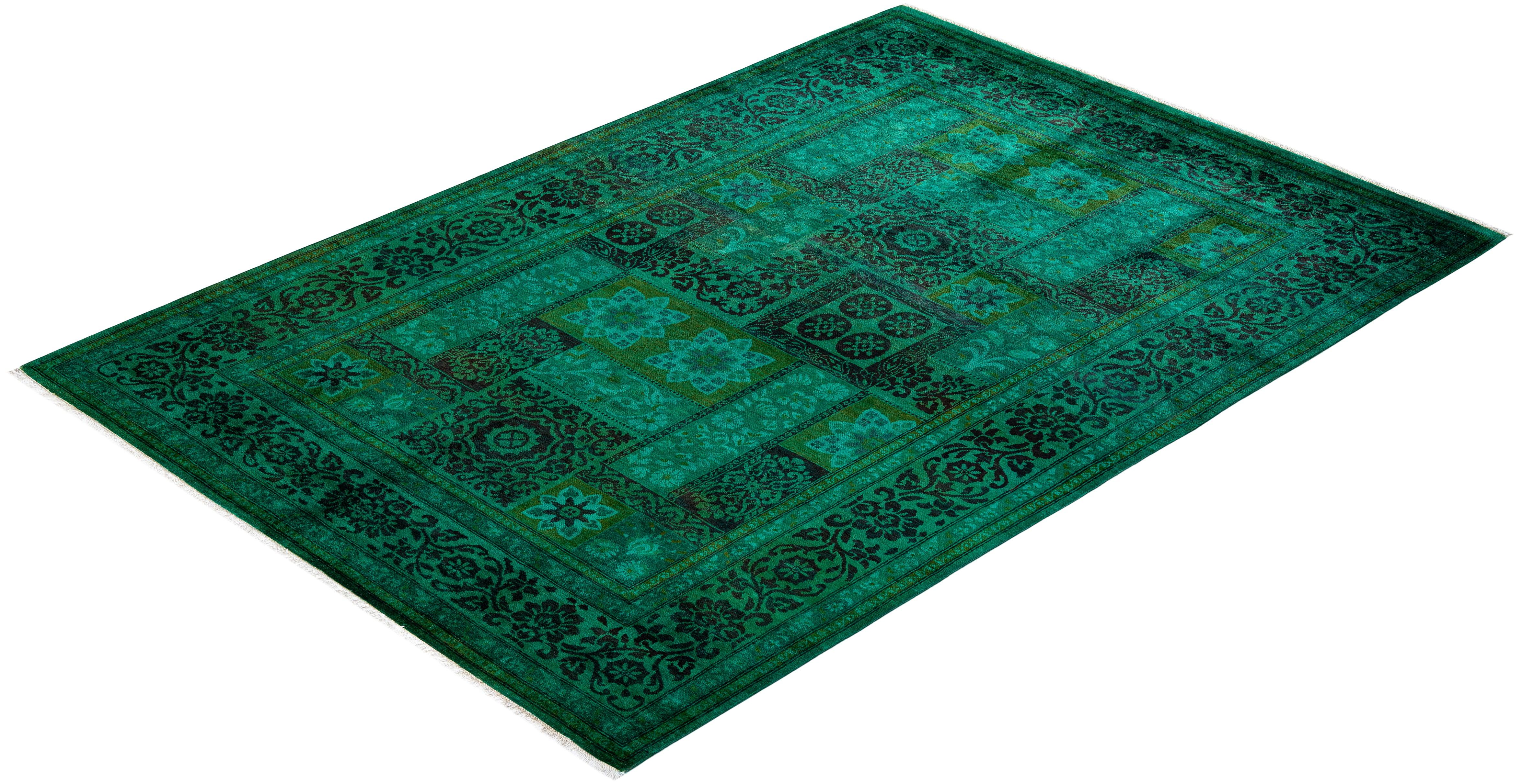 Contemporary Hand-Knotted Green Area Rug 6' 0" x 8' 9"