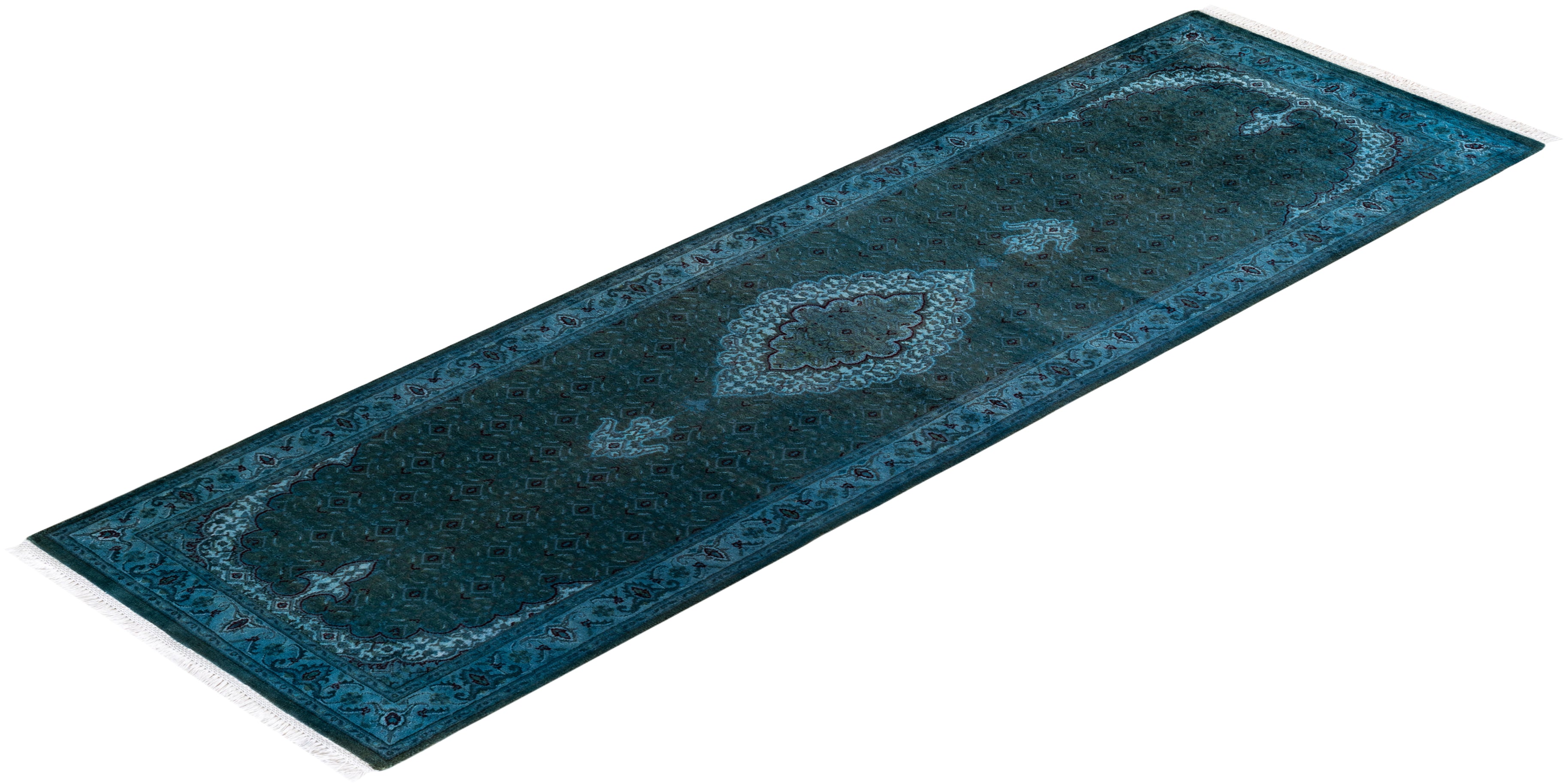 Contemporary Hand Knotted Overdyed Blue Runner 2' 6" x 8' 6"