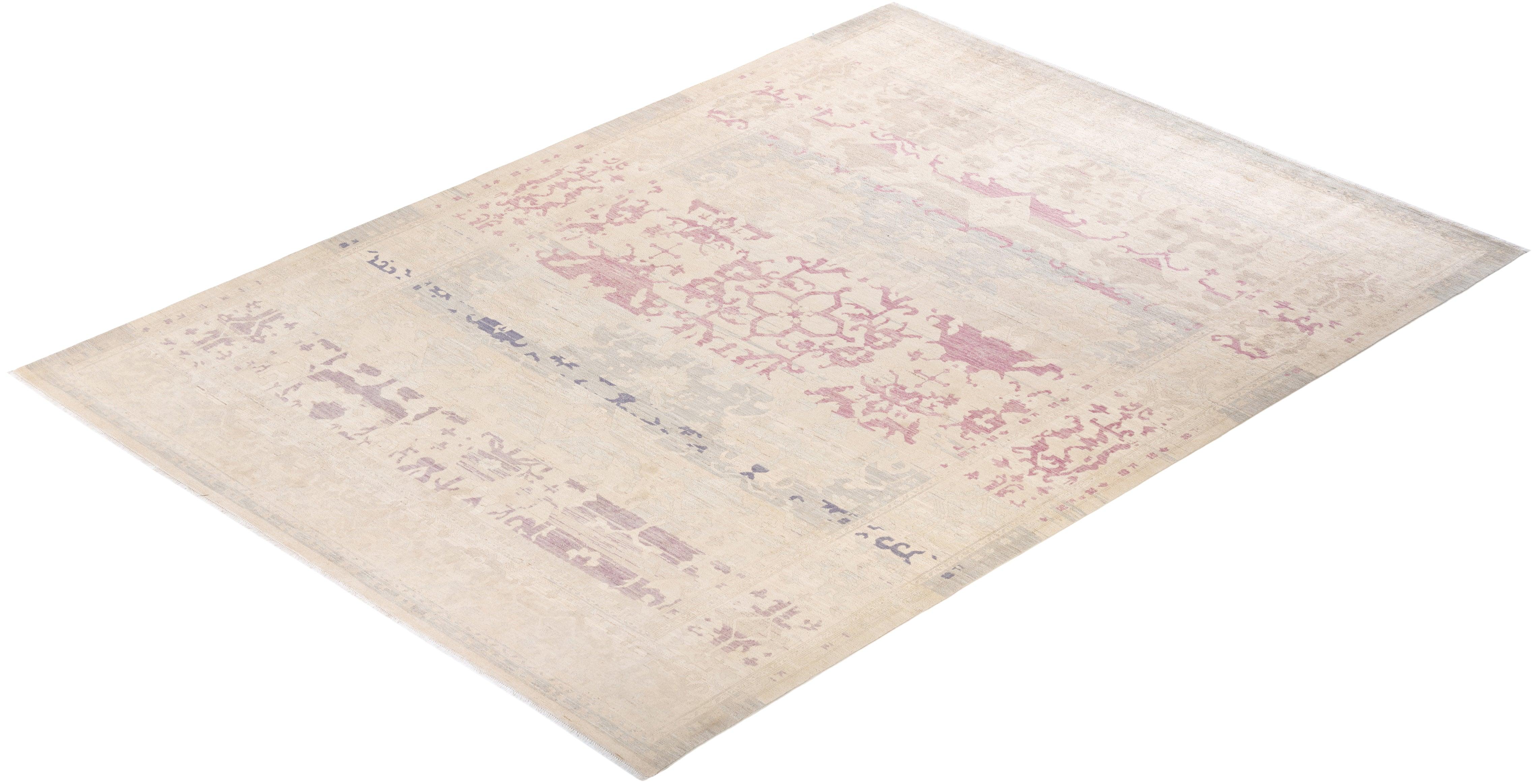 Contemporary Hand Knotted Eclectic Abstract Ivory Area Rug 8' 2" x 11' 4"