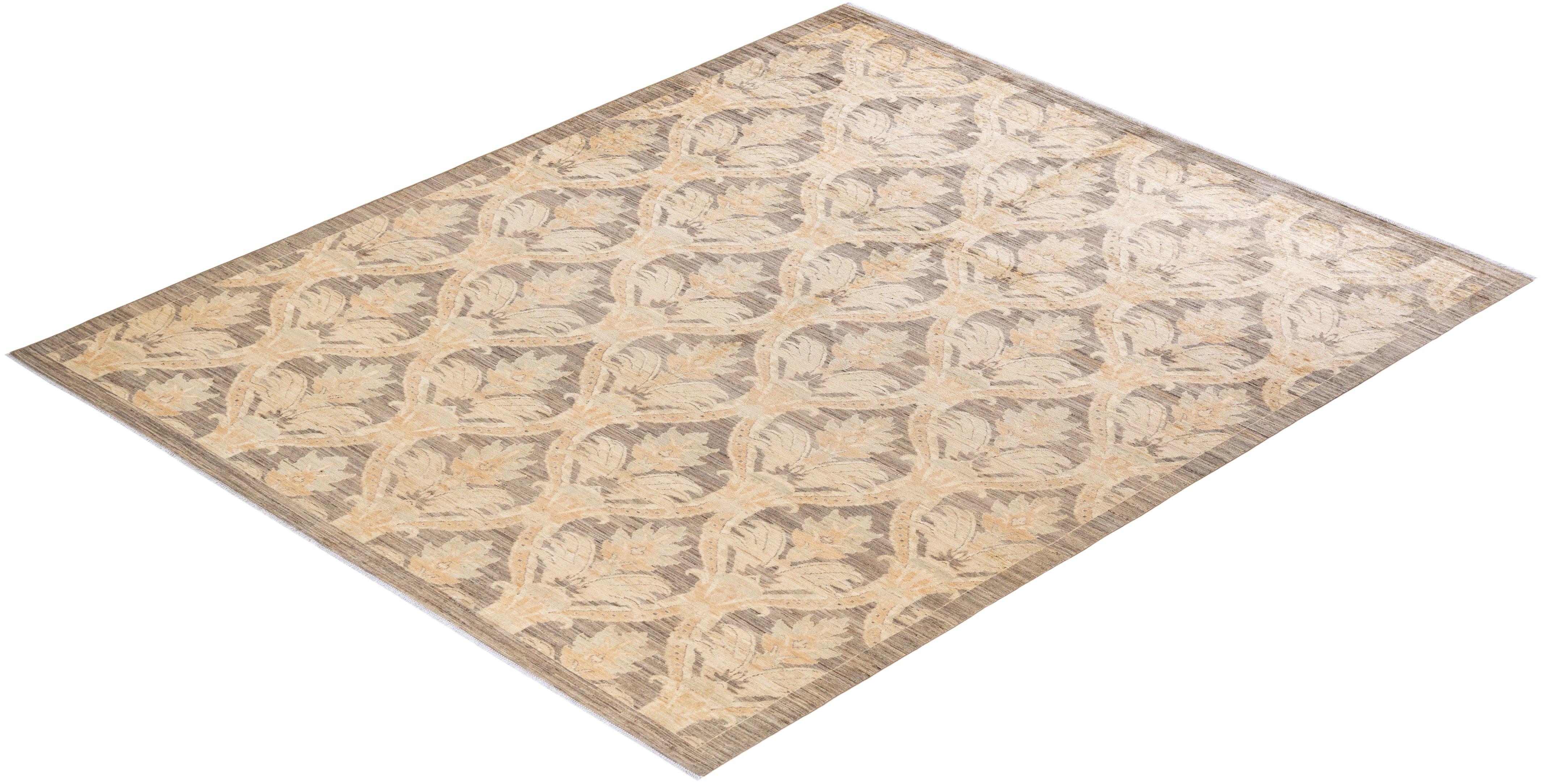 Traditional Hand Knotted Oushak Floral Ivory Area Rug 8' 0" x 9' 9"