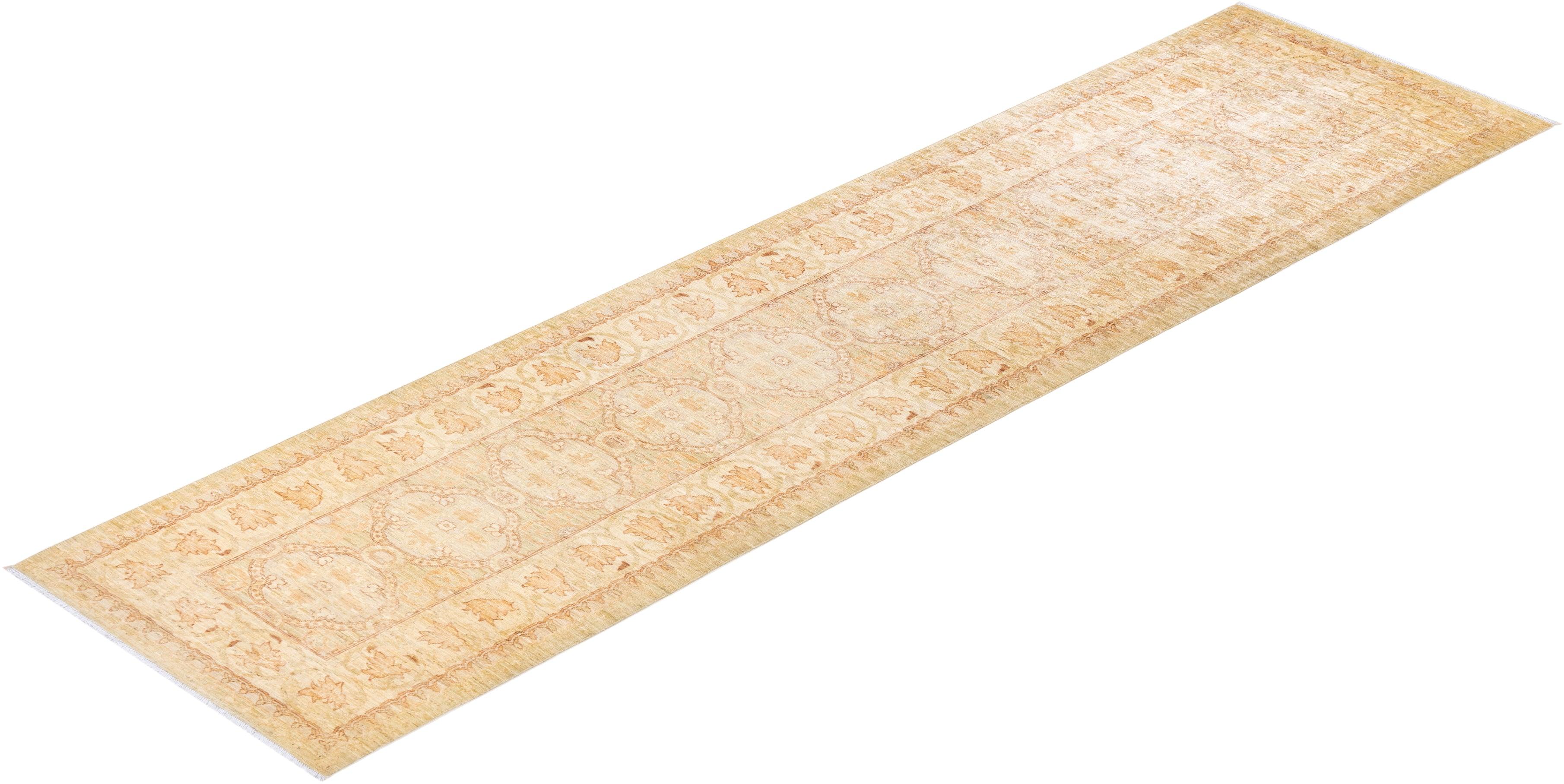 Contemporary Hand Knotted Eclectic Tribal Ivory Runner 3' 4" x 12' 10"