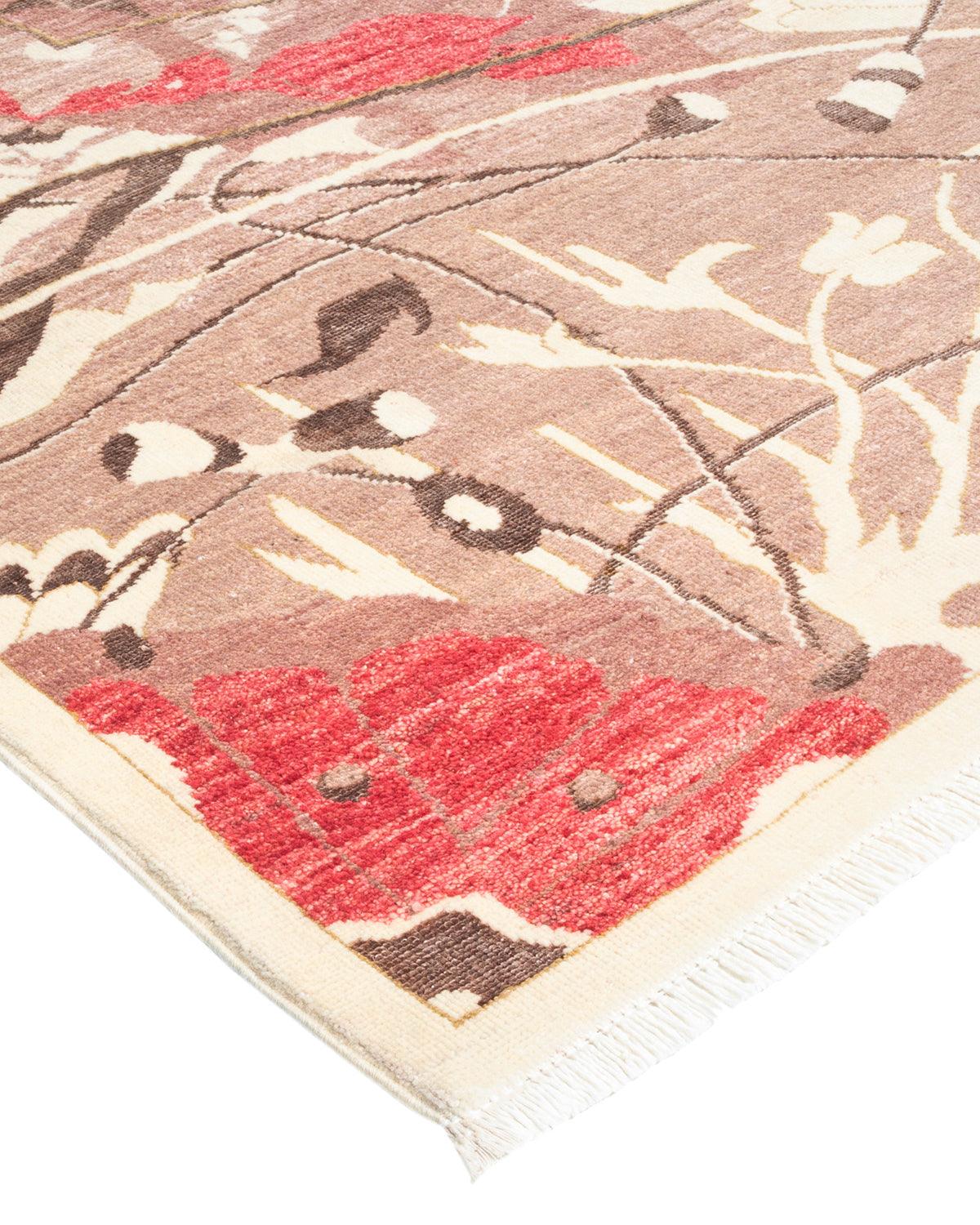 Contemporary Hand Knotted Eclectic Ikat Ivory Area Rug 6' 1" x 8' 9"