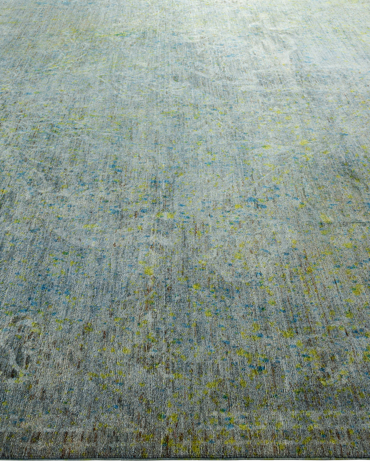 Contemporary Hand Knotted Overdyed Gray Square Area Rug 9' 0" x 9' 4"