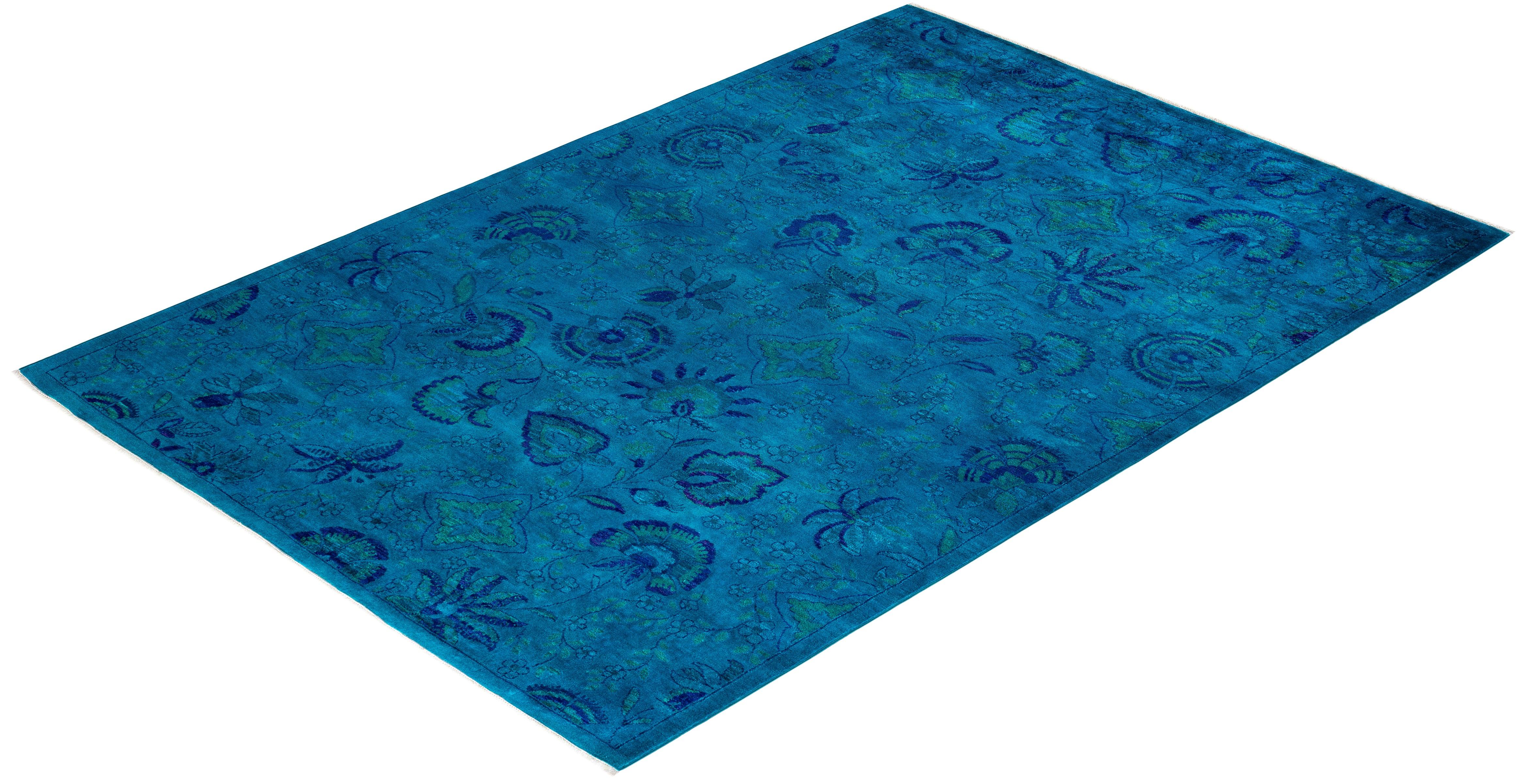 Contemporary Hand-Knotted Blue Area Rug 6' 0" x 9' 3"