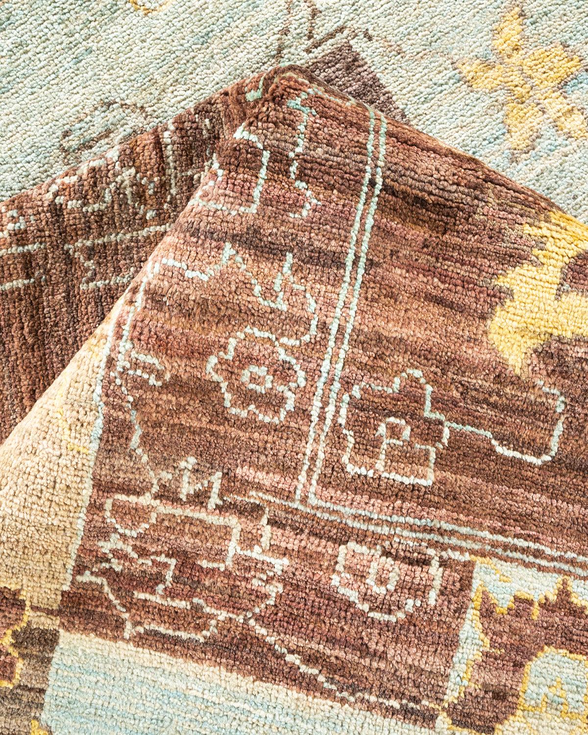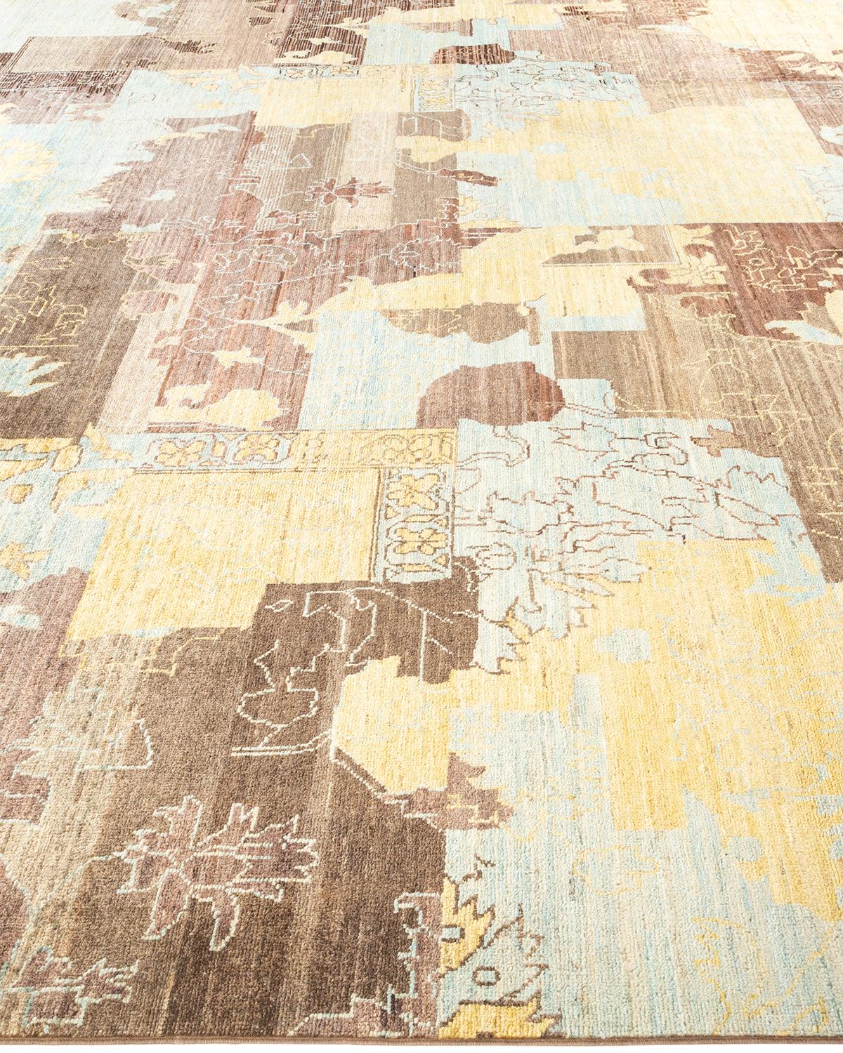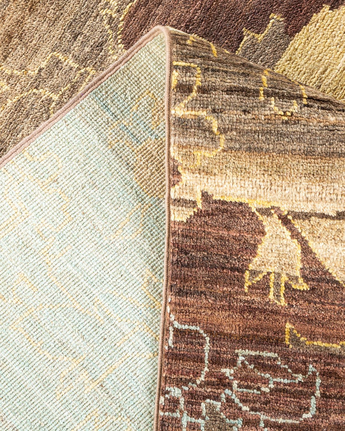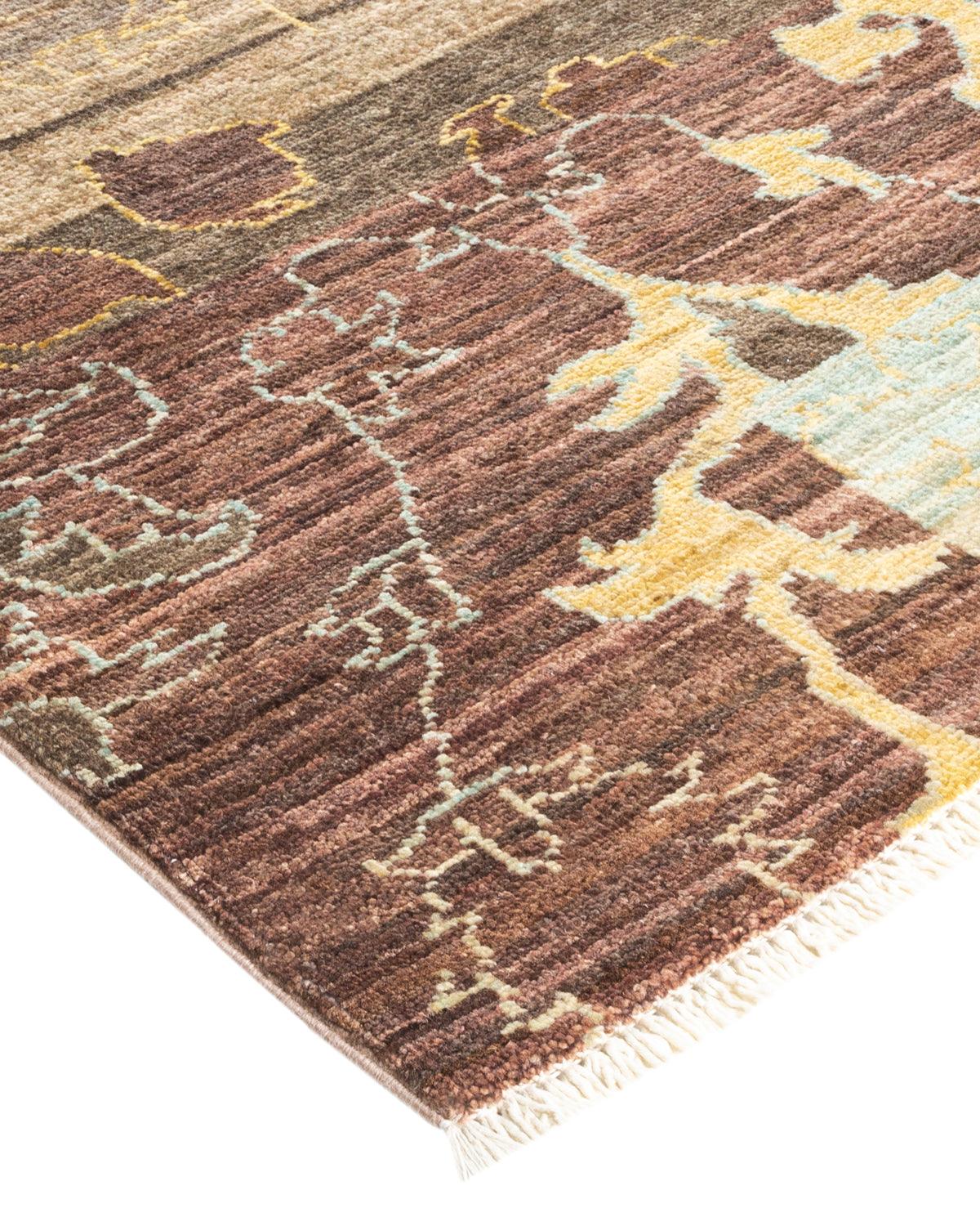 Contemporary Hand Knotted Eclectic Ikat Brown Area Rug 10' 0" x 13' 3"