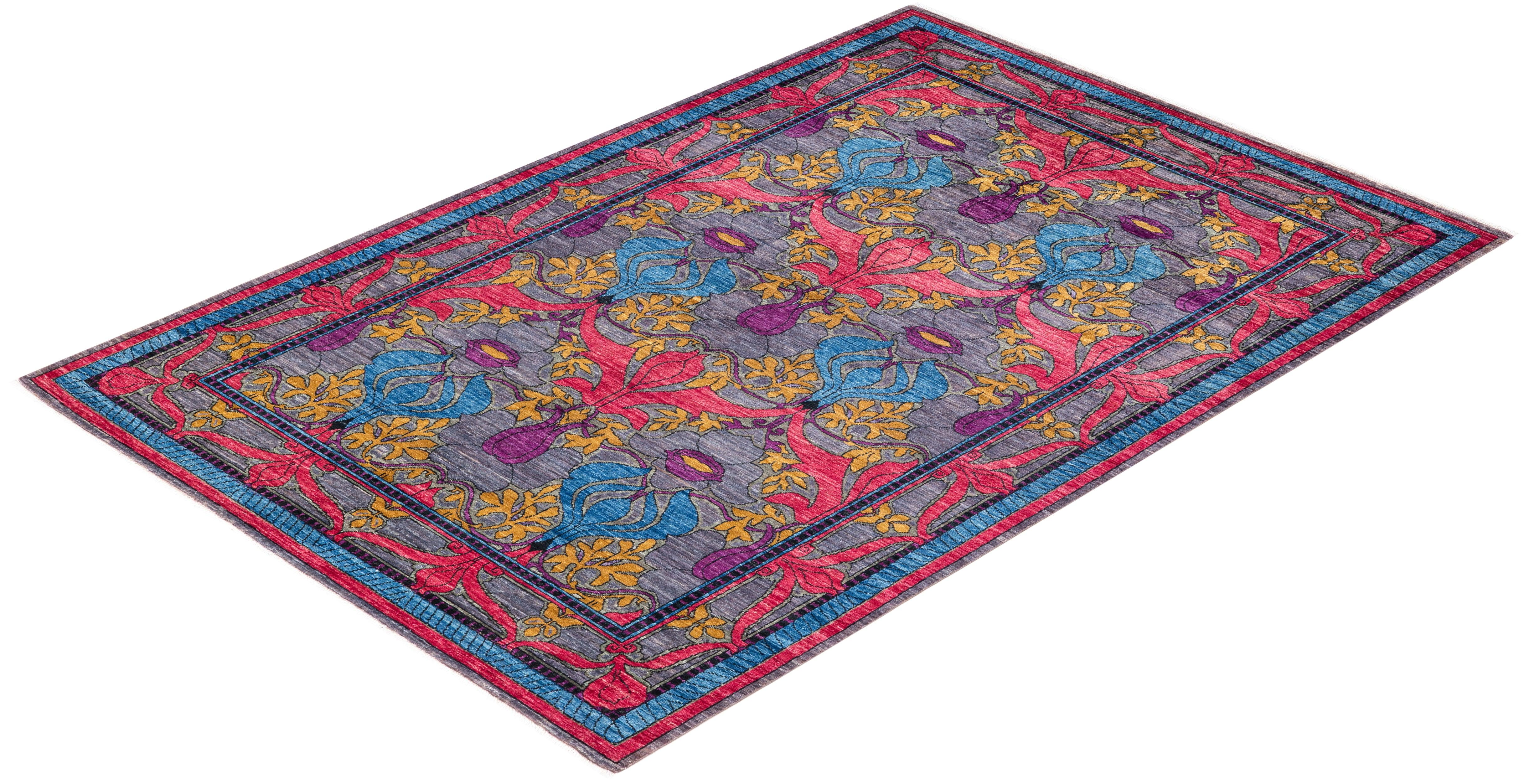 Contemporary Hand Knotted Arts & Crafts Floral Gray Area Rug 6' 0" x 8' 9"