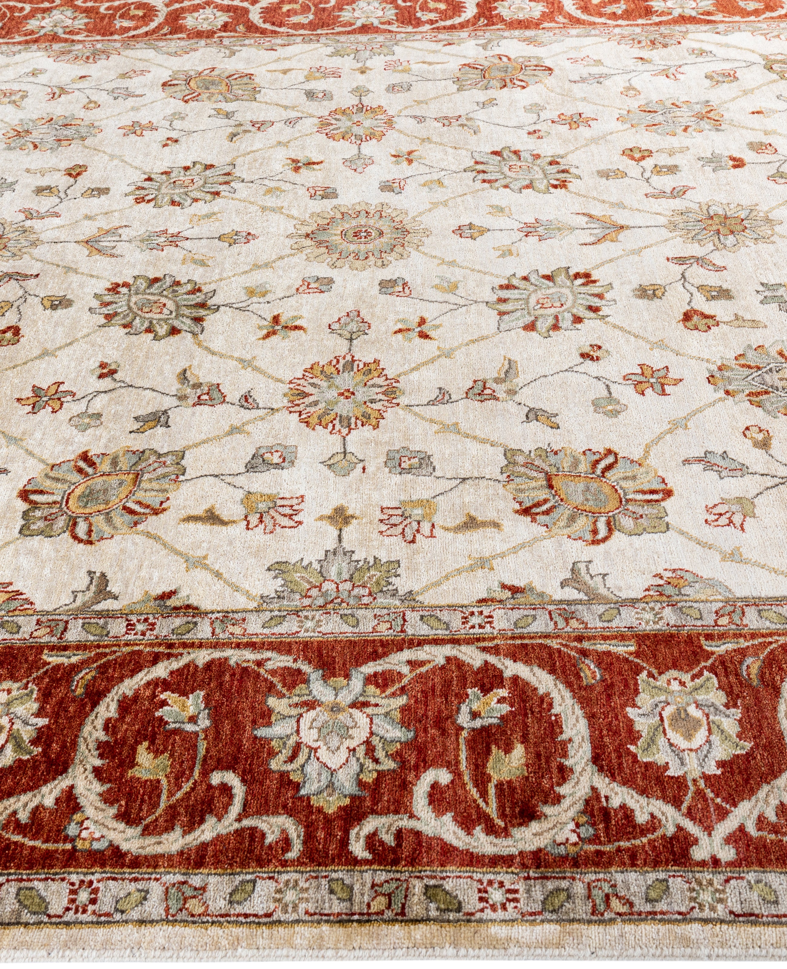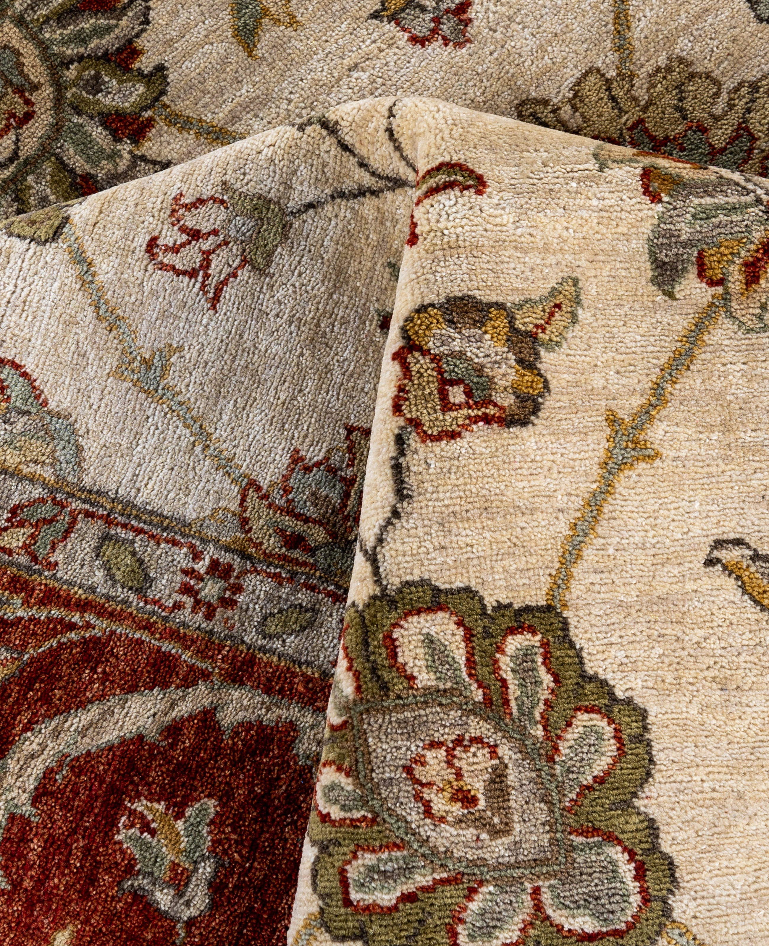 Originating centuries ago in what is now Turkey, Oushak rugs have long been sought after for their intricate patterns, lush yet subtle colors, and soft luster. These rugs continue that tradition. Hand-knotted of wool by skilled artisans, they will last for years—especially fortunate given that they will never fall out of fashion.