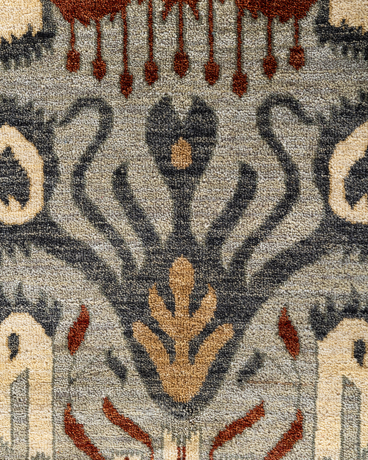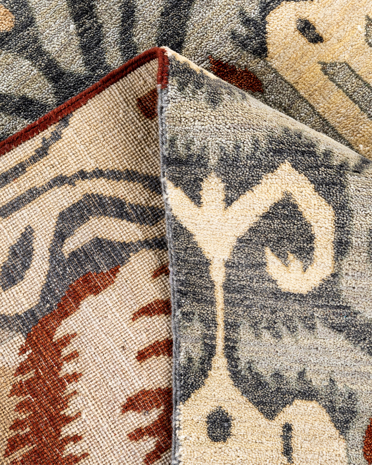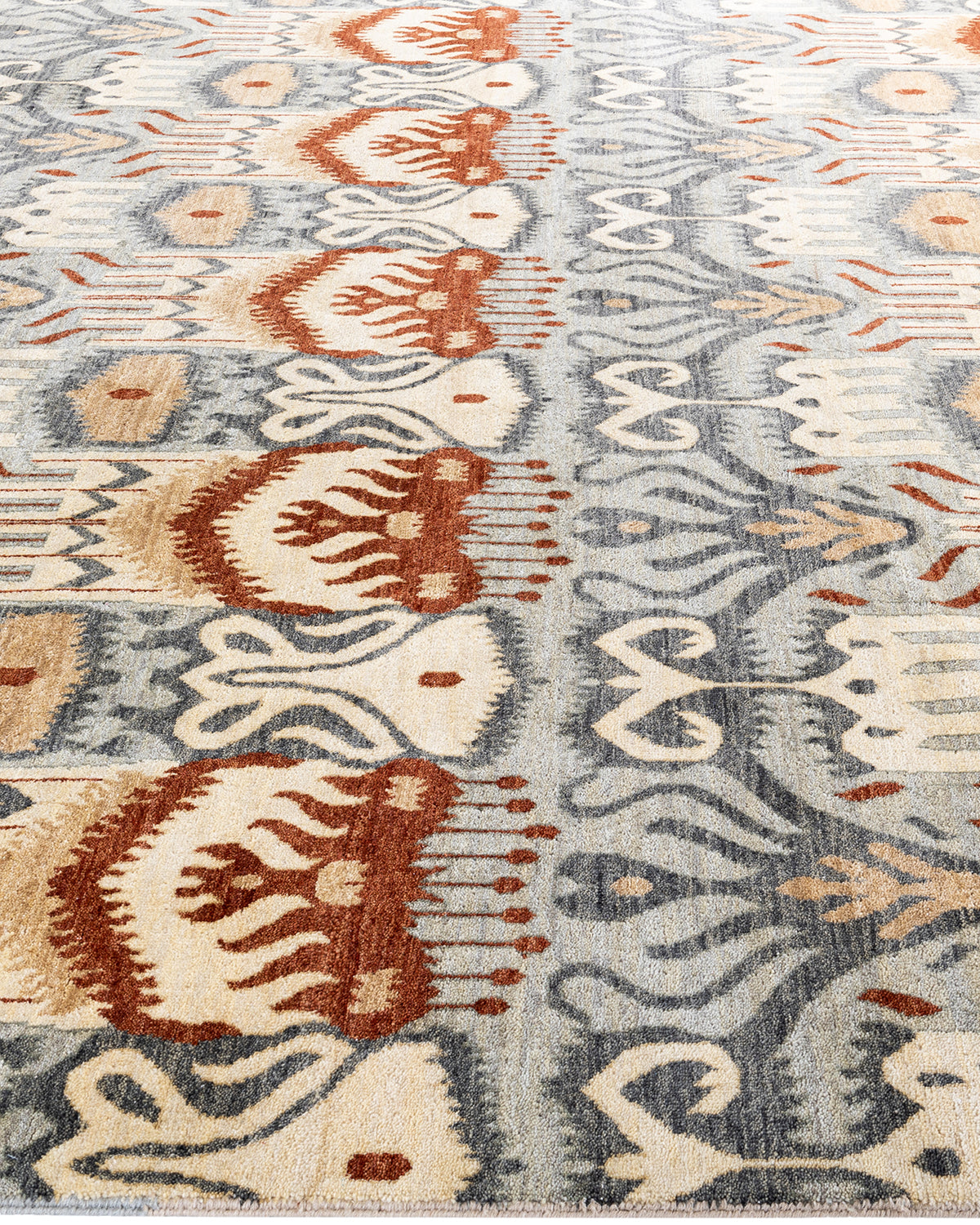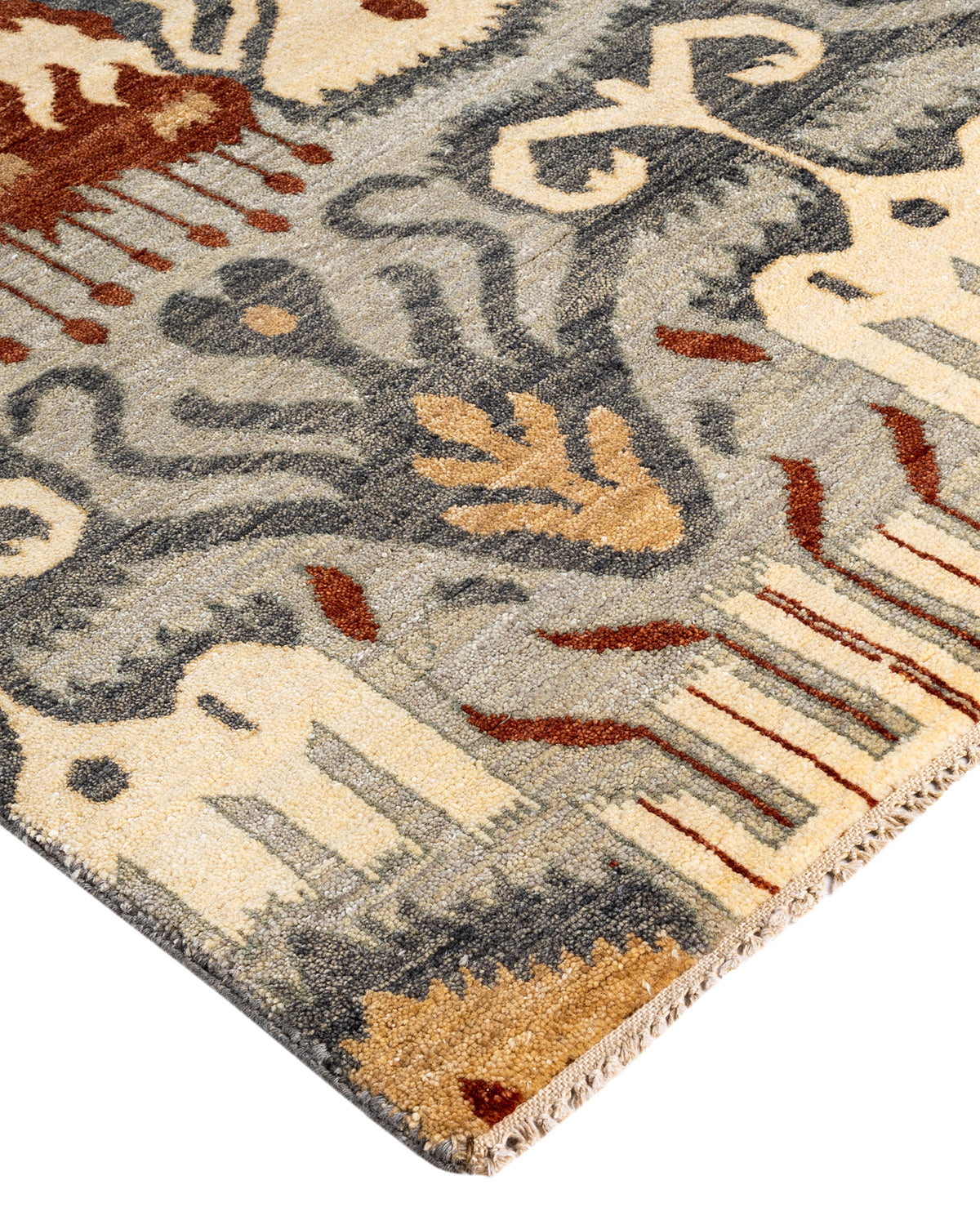 Traditional Ikat Hand Knotted Floral Wool Gray Area Rug 8' 0" x 10' 0"