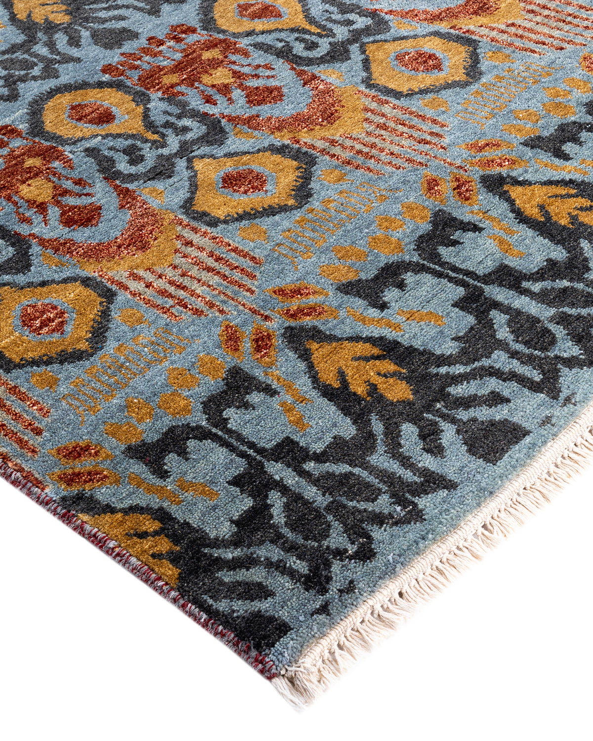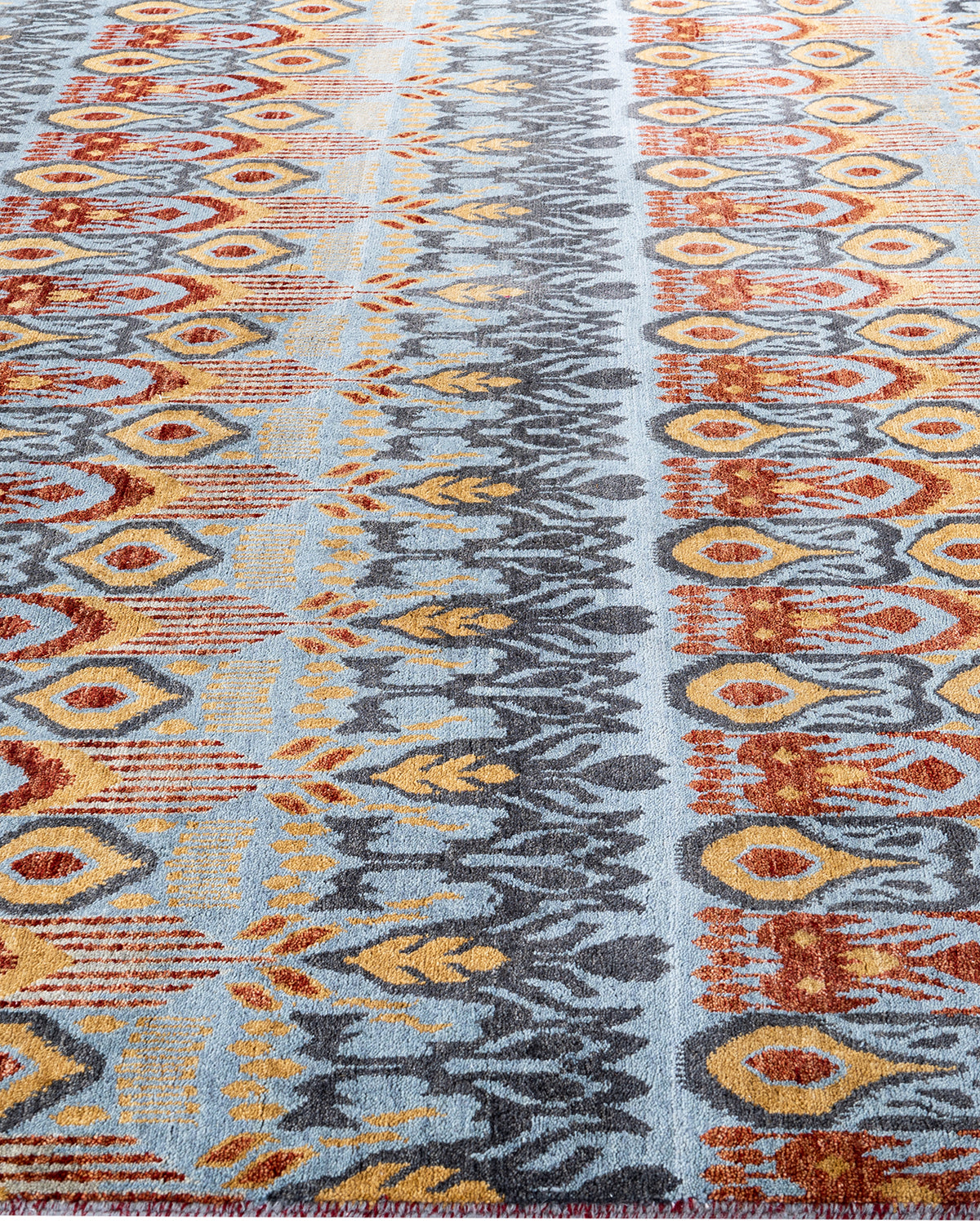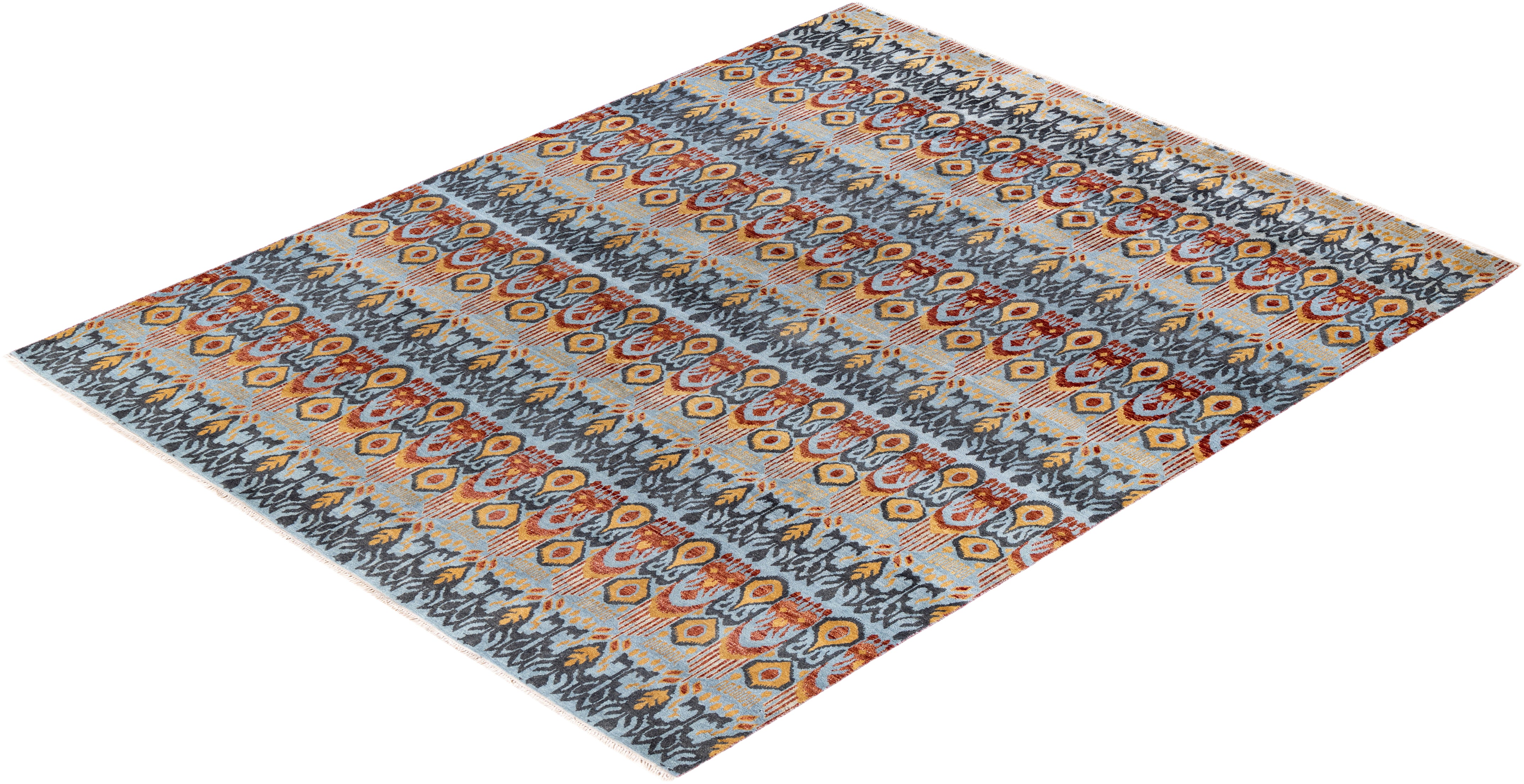 Traditional Ikat Hand Knotted Floral Wool Gray Area Rug 8' 0" x 10' 2"