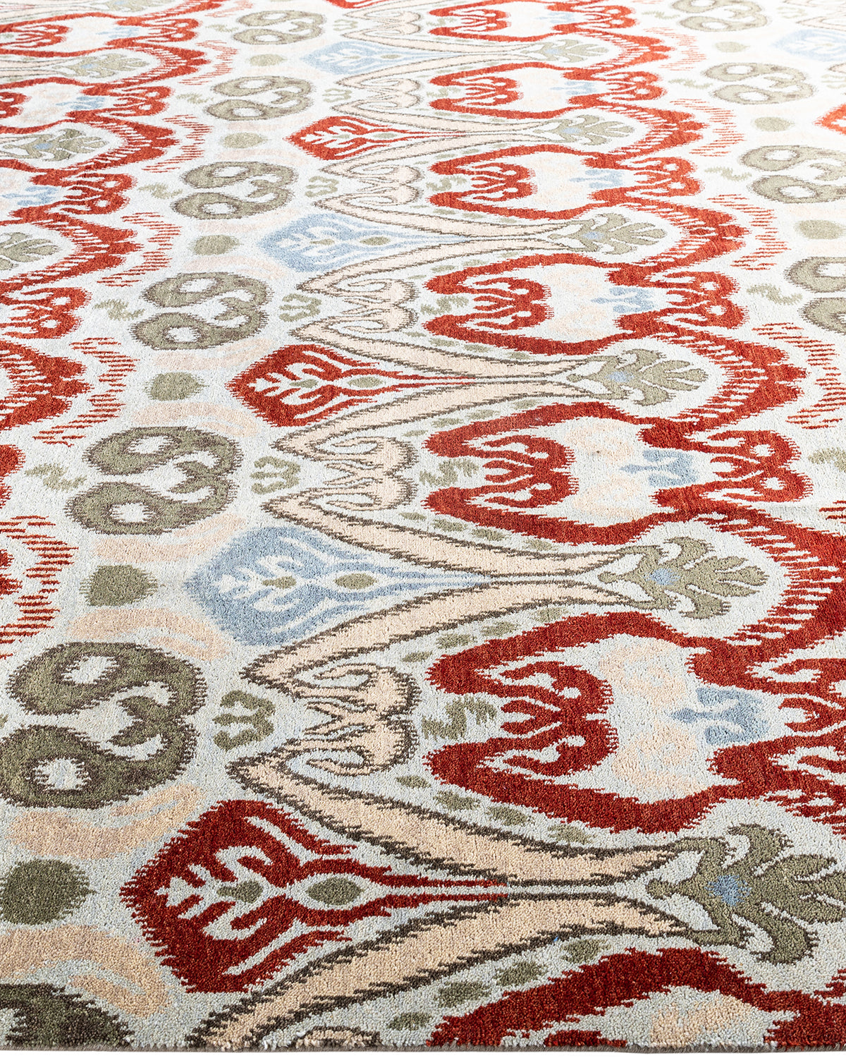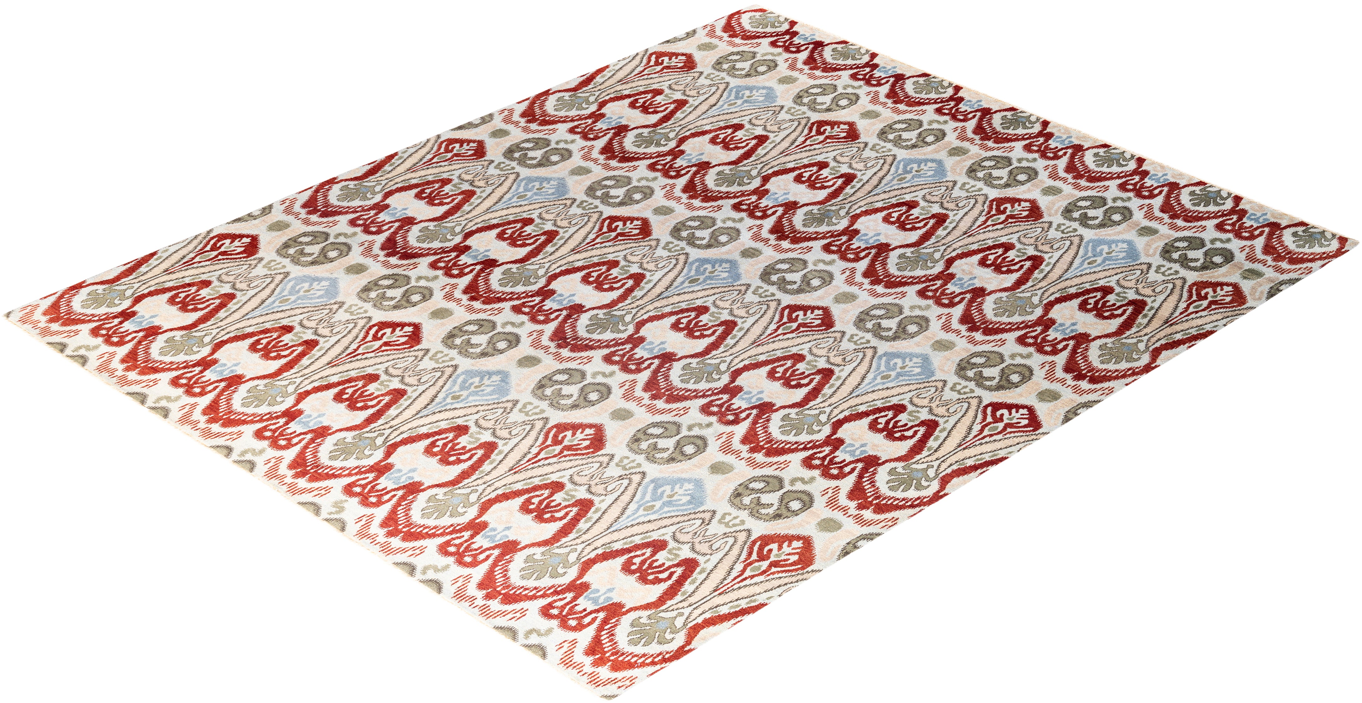 Traditional Ikat Hand Knotted Floral Wool Green Area Rug 8' 2" x 10' 1"