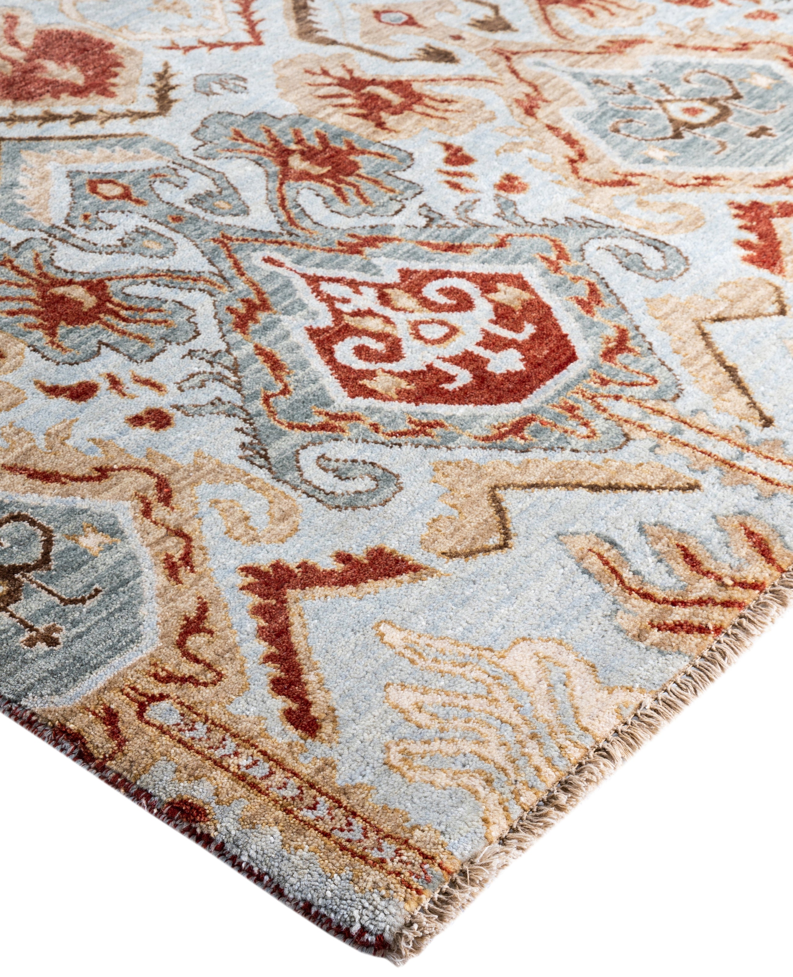 Kazak rugs have been sought after for generations, their unique design aesthetic a captivating combination of tribal history and geographic influence. Intricately hand-knotted from wool, the medallions, allover patterns, and central design reflect the inspiration the weavers drew from Caucasian rugs. A vivacious use of color, including brilliant reds, navies and ivories make these compelling, timeless additions to any room.