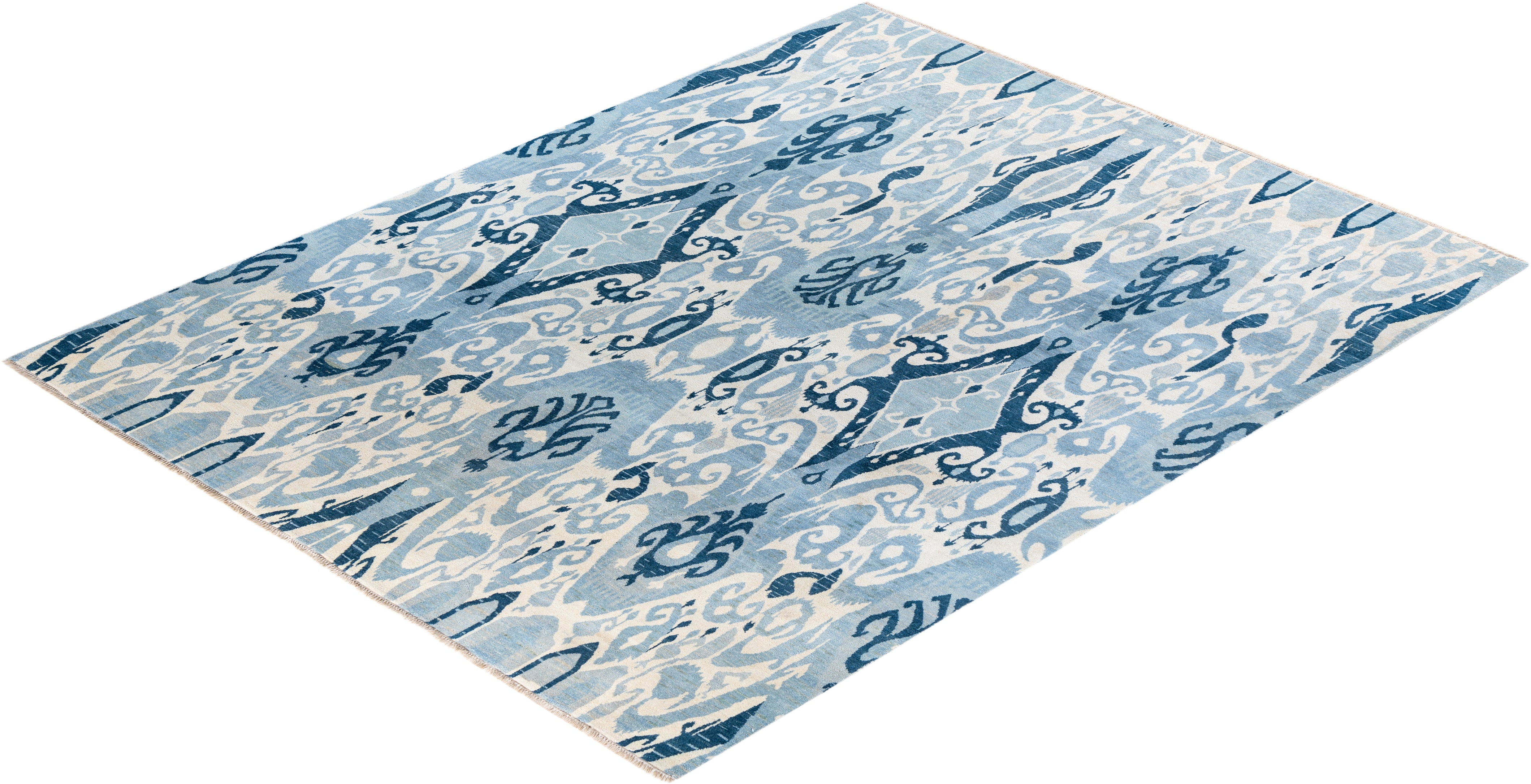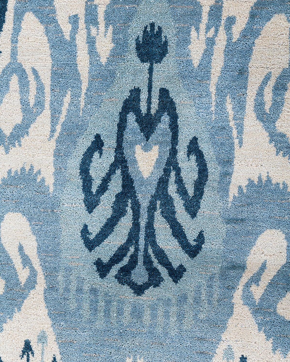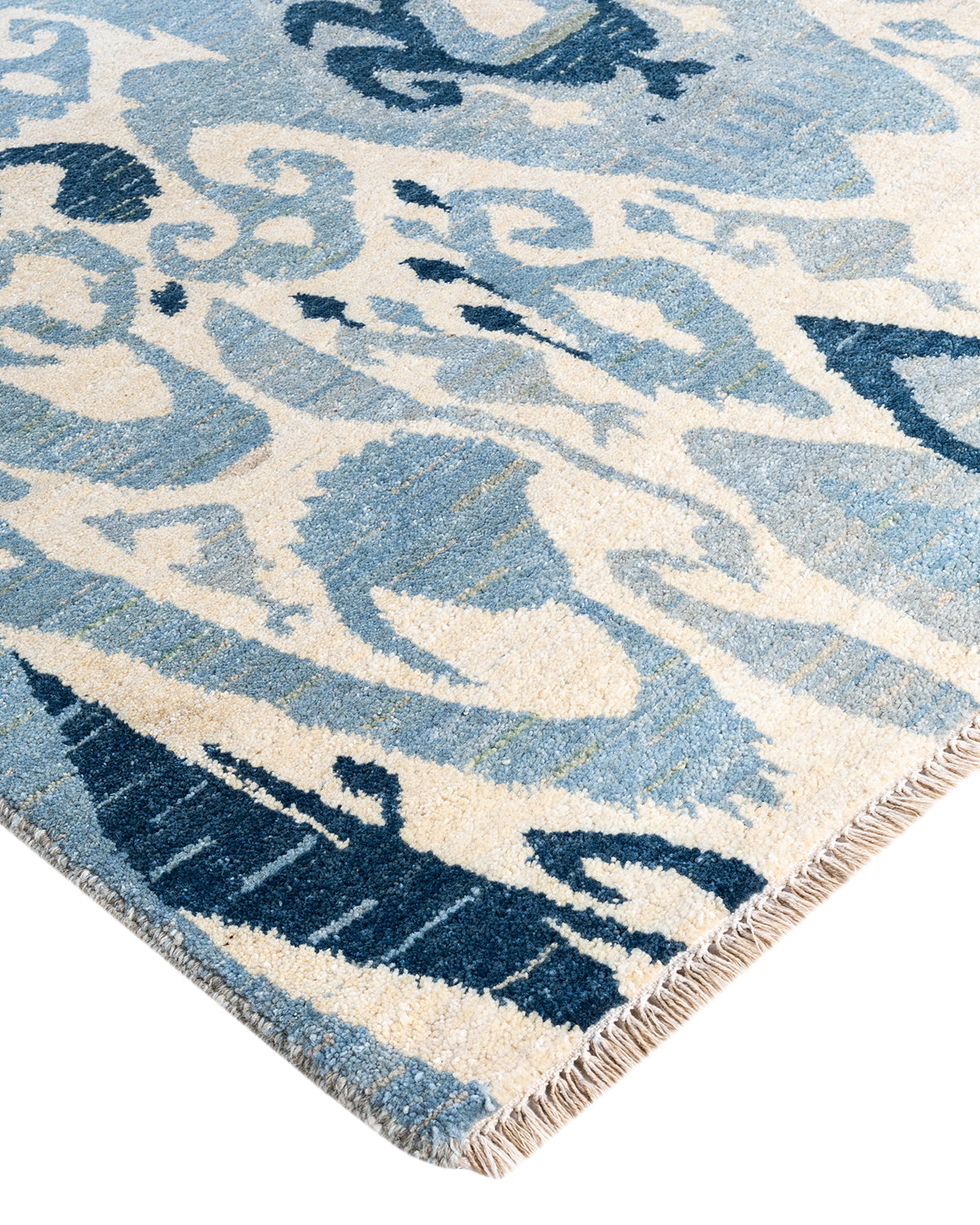 Traditional Ikat Hand Knotted Floral Wool Ivory Area Rug 8' 0" x 10' 4"