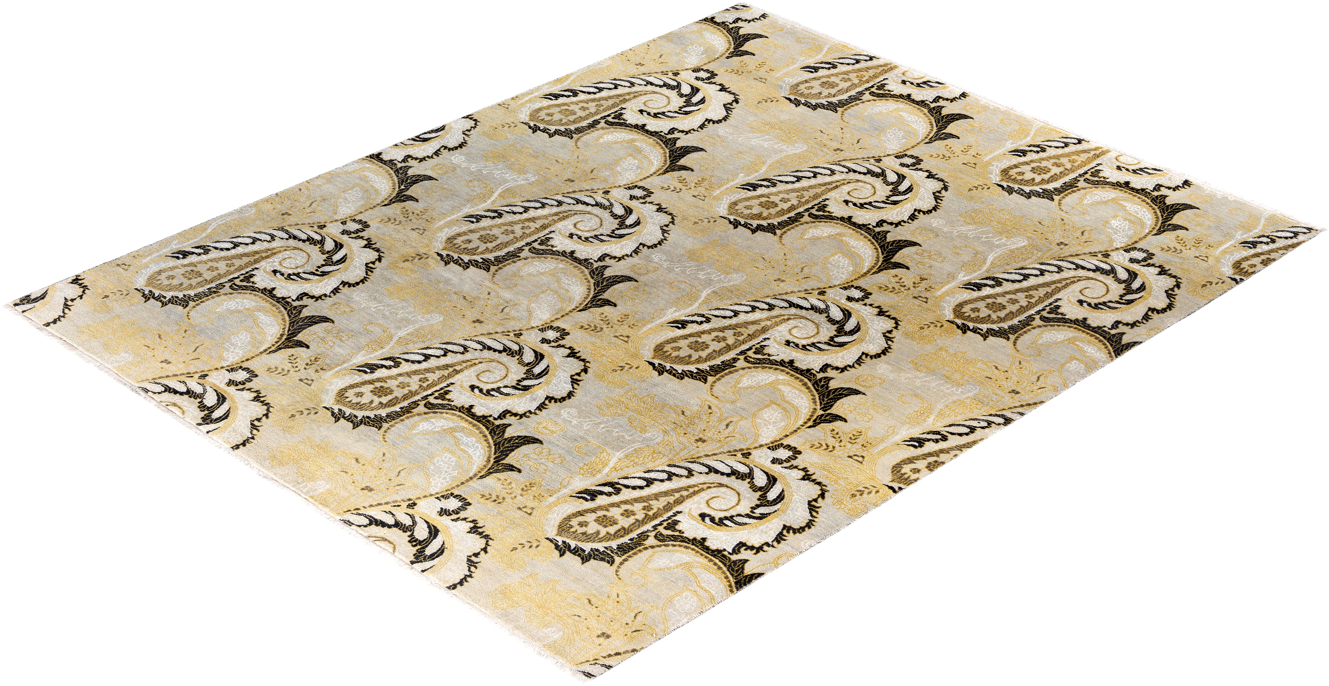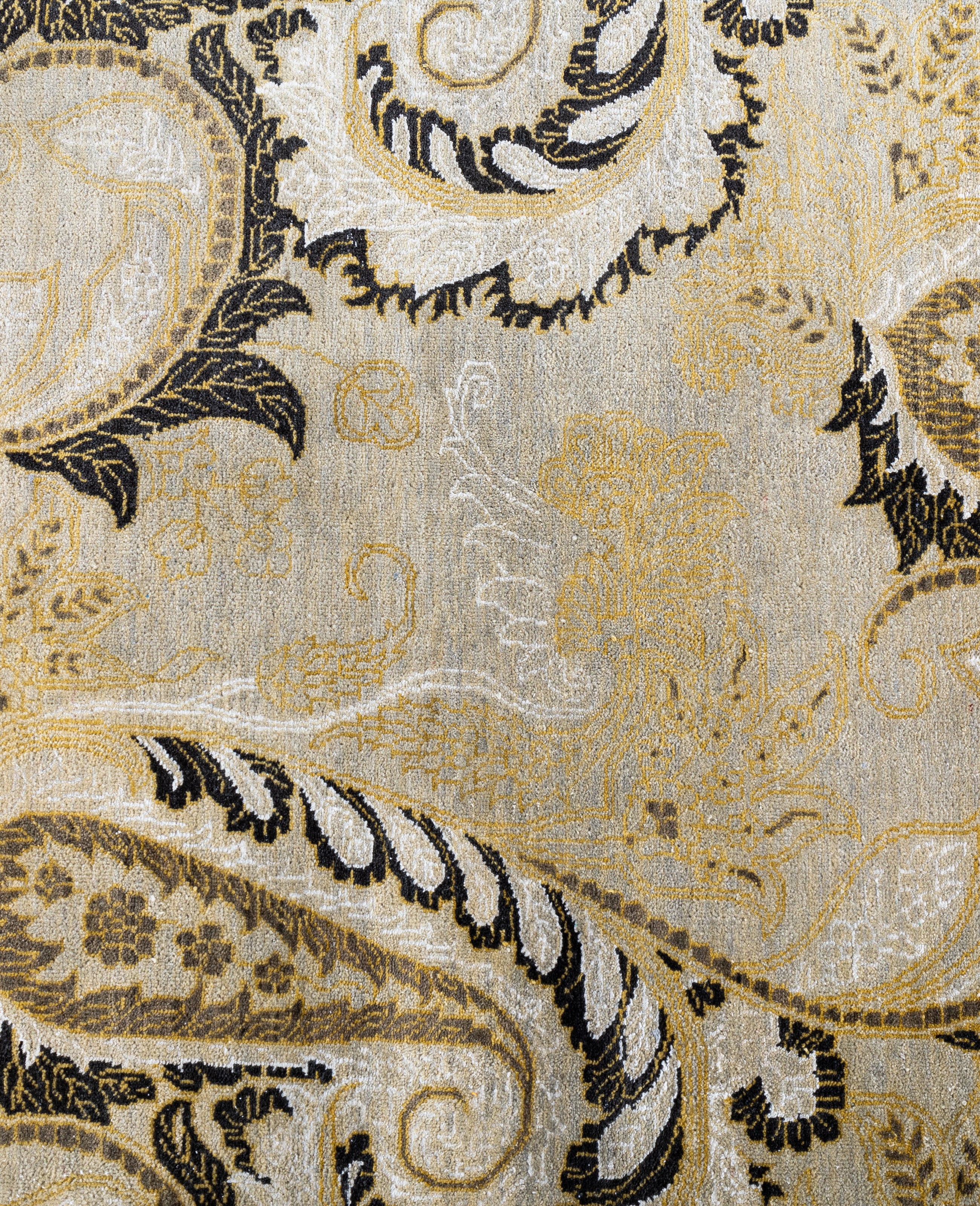 Traditional Paisley Wool, Silk Hand Knotted Beige Area Rug 8' 1" x 9' 10"