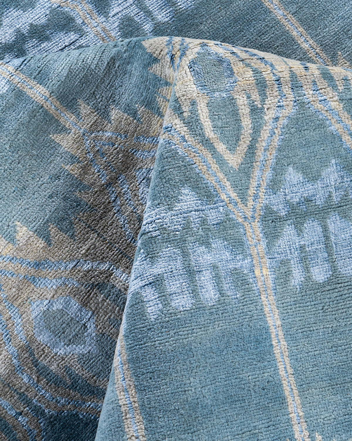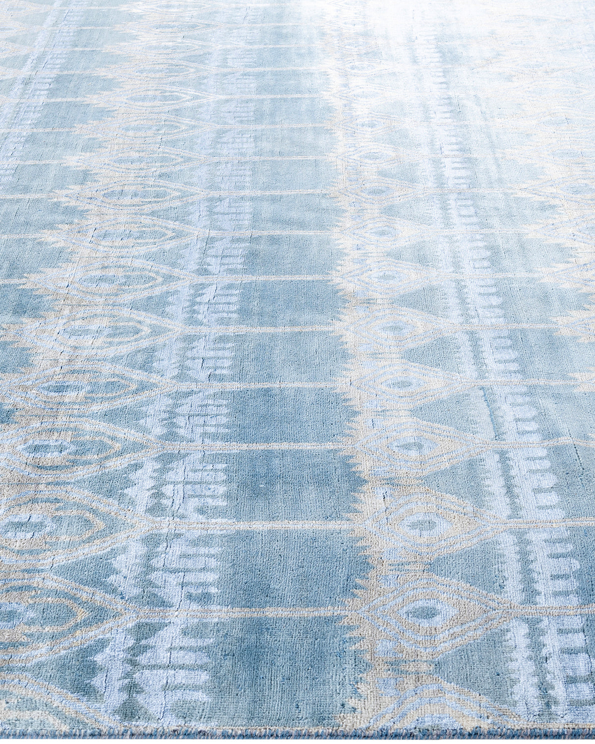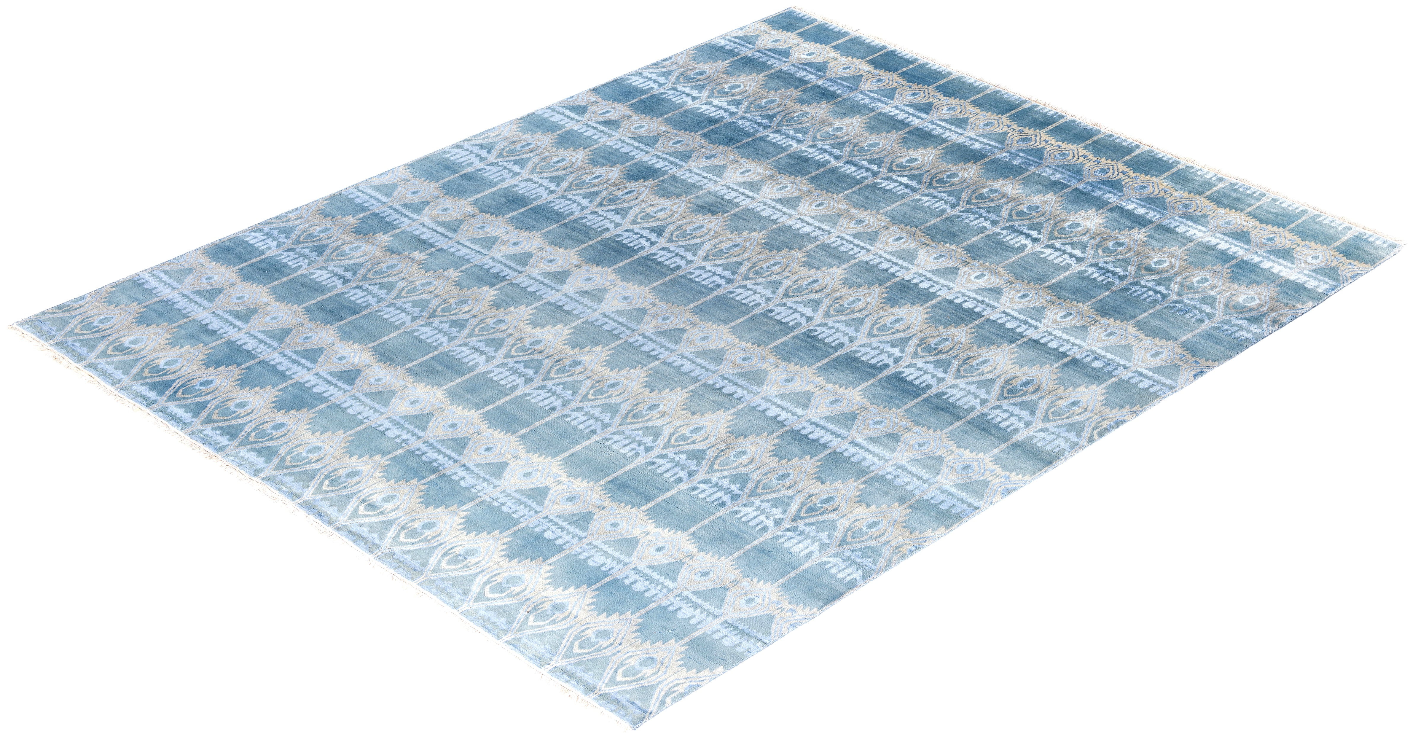 Traditional Ikat Hand Knotted Floral Silk & Wool Blend Blue Area Rug 8' 1" x 10' 3"