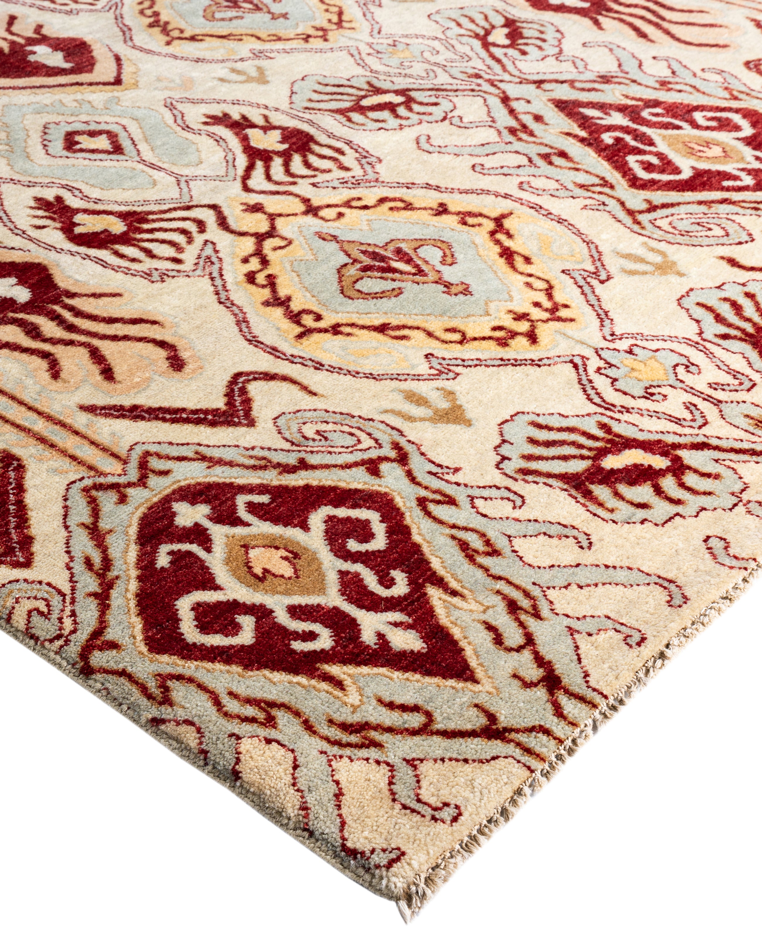 Kazak rugs have been sought after for generations, their unique design aesthetic a captivating combination of tribal history and geographic influence. Intricately hand-knotted from wool, the medallions, allover patterns, and central design reflect the inspiration the weavers drew from Caucasian rugs. A vivacious use of color, including brilliant reds, navies and ivories make these compelling, timeless additions to any room.