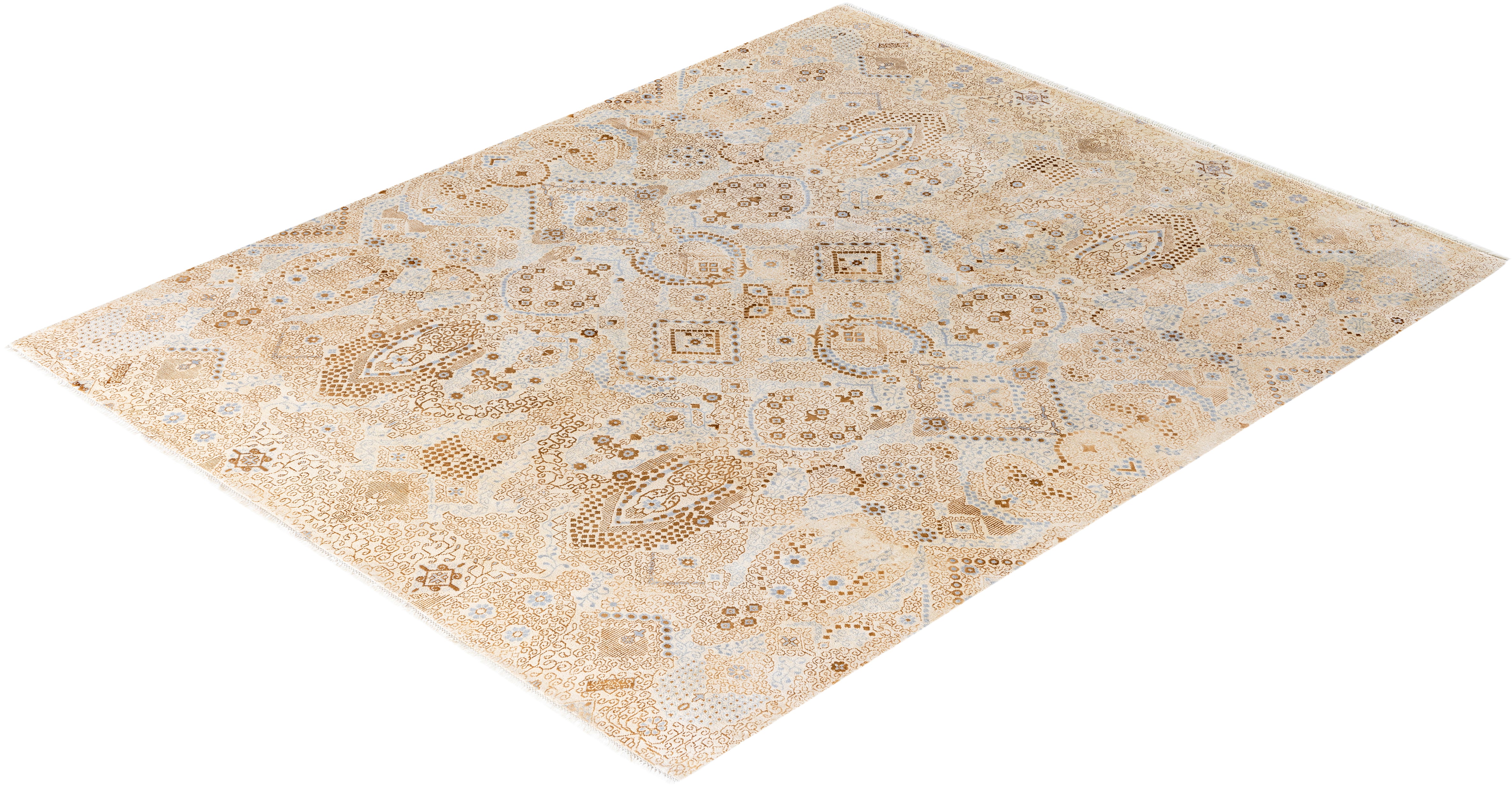 Traditional Floral Wool, Silk Hand Knotted Beige Area Rug 8' 2" x 10' 1"