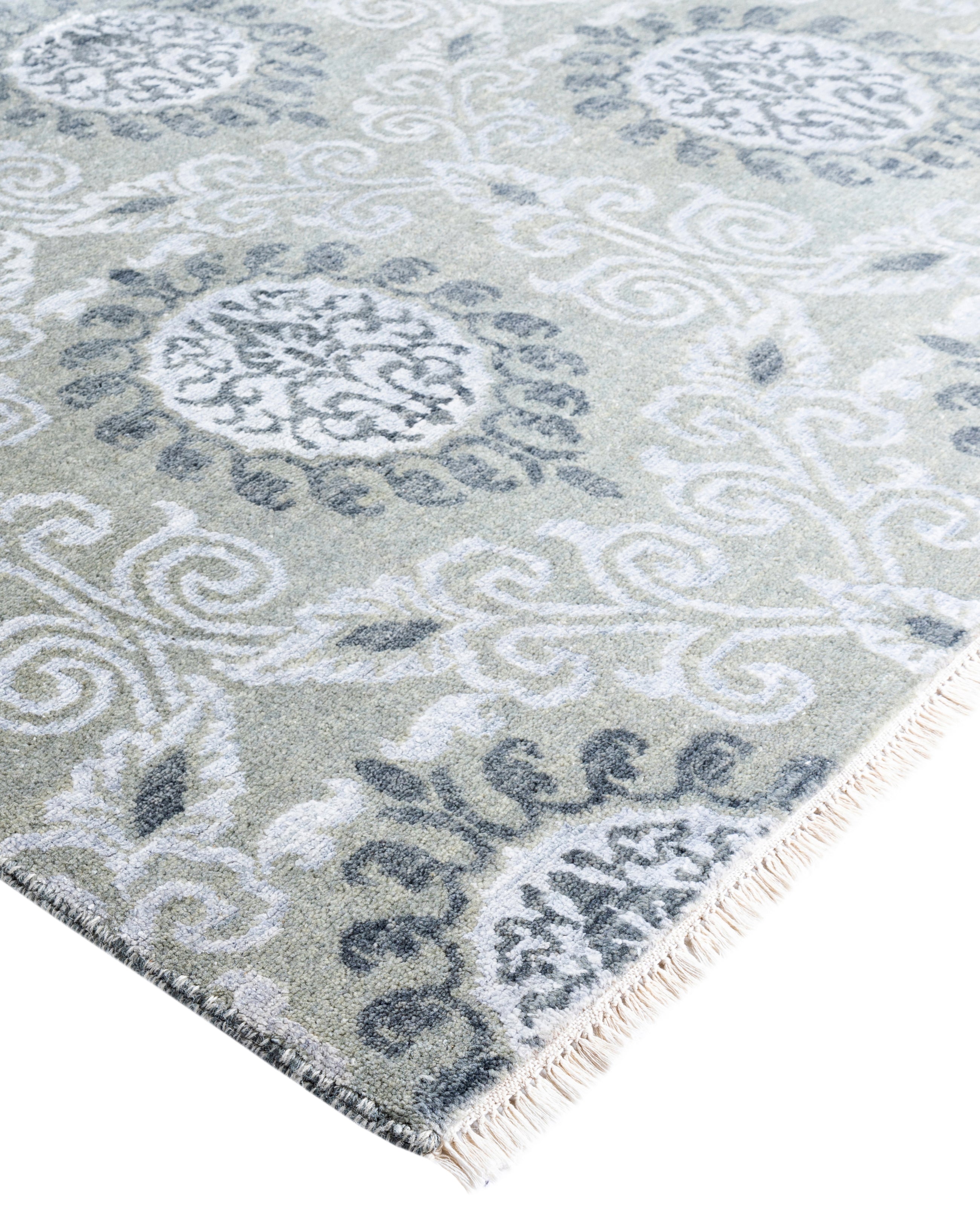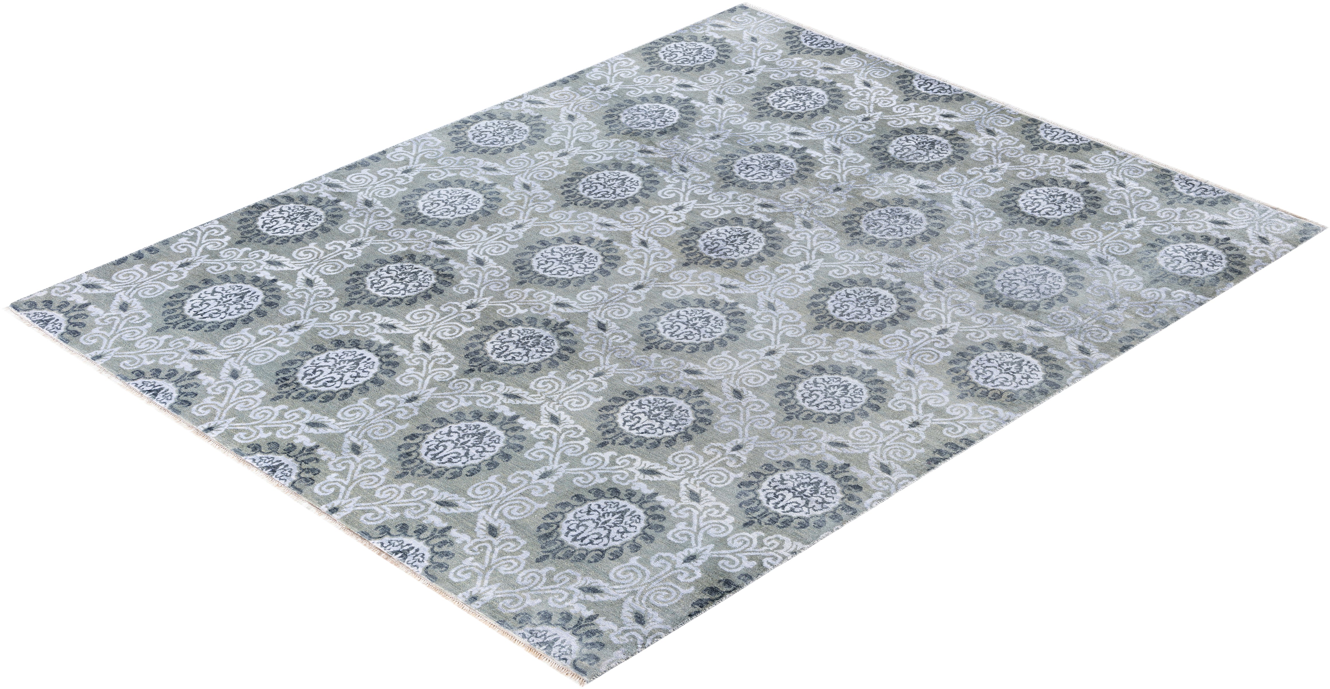 Traditional Floral Wool, Silk Hand Knotted Gray Area Rug 8' 1" x 10' 2"
