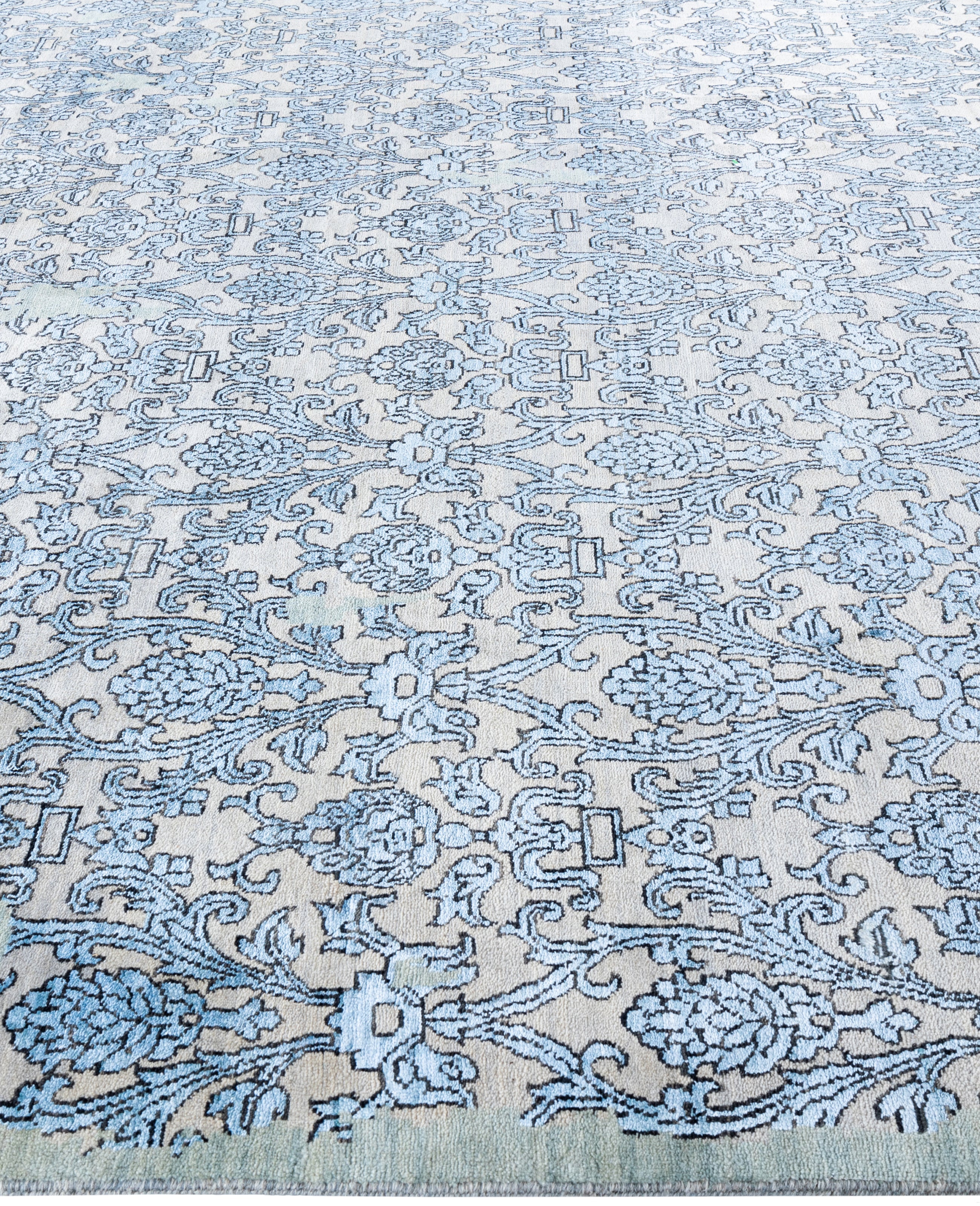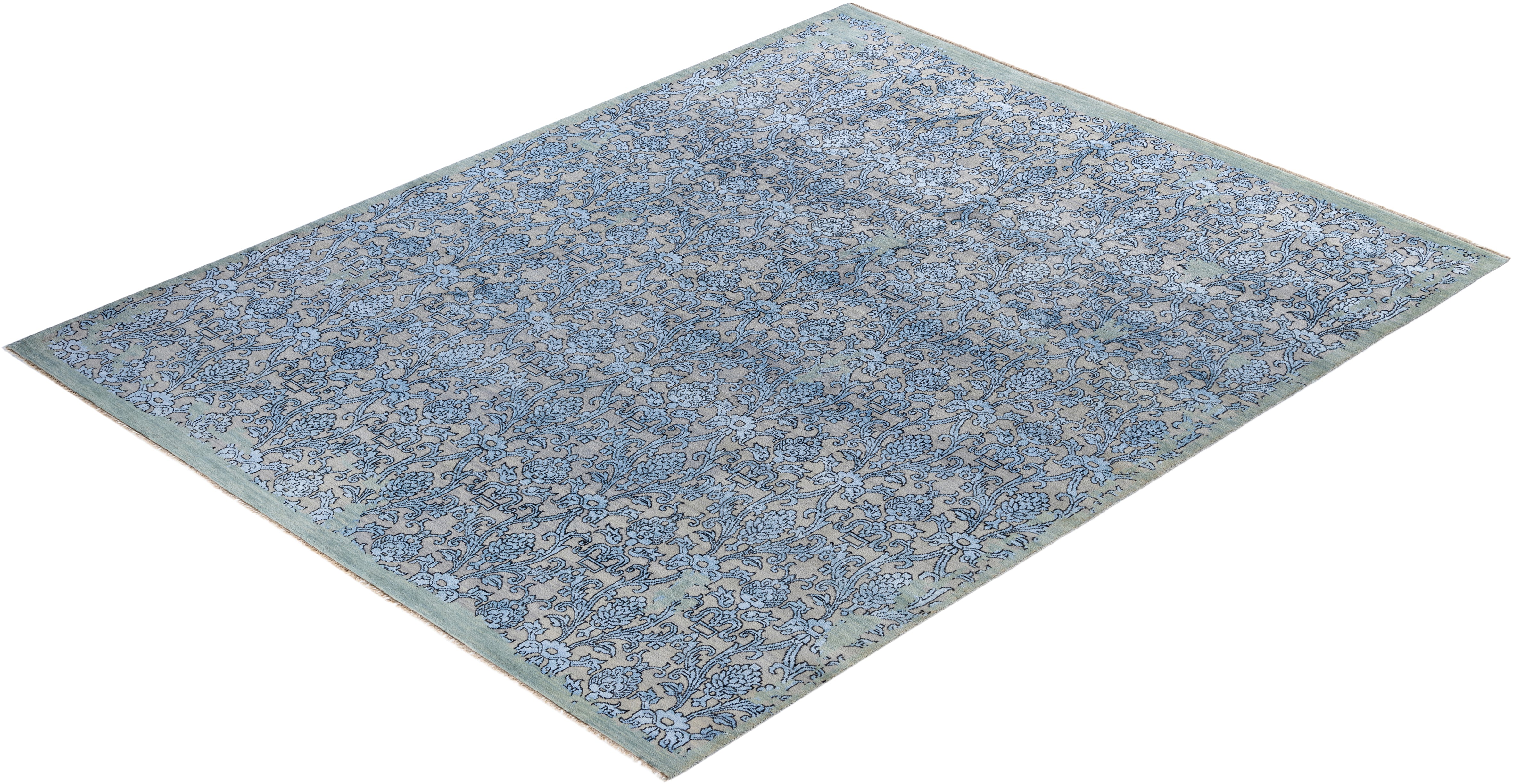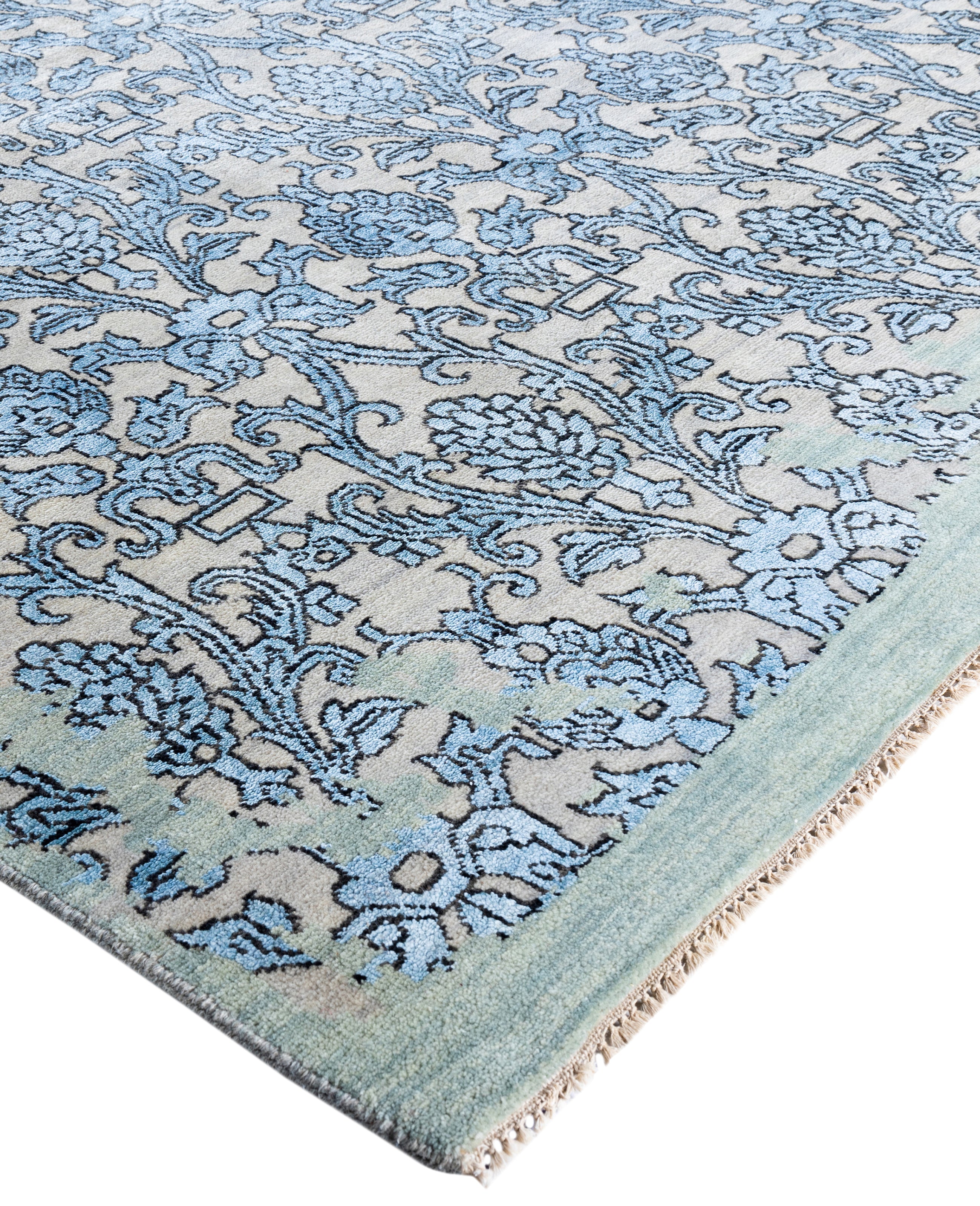Traditional Floral Wool, Silk Hand Knotted Green Area Rug 8' 2" x 10' 3"