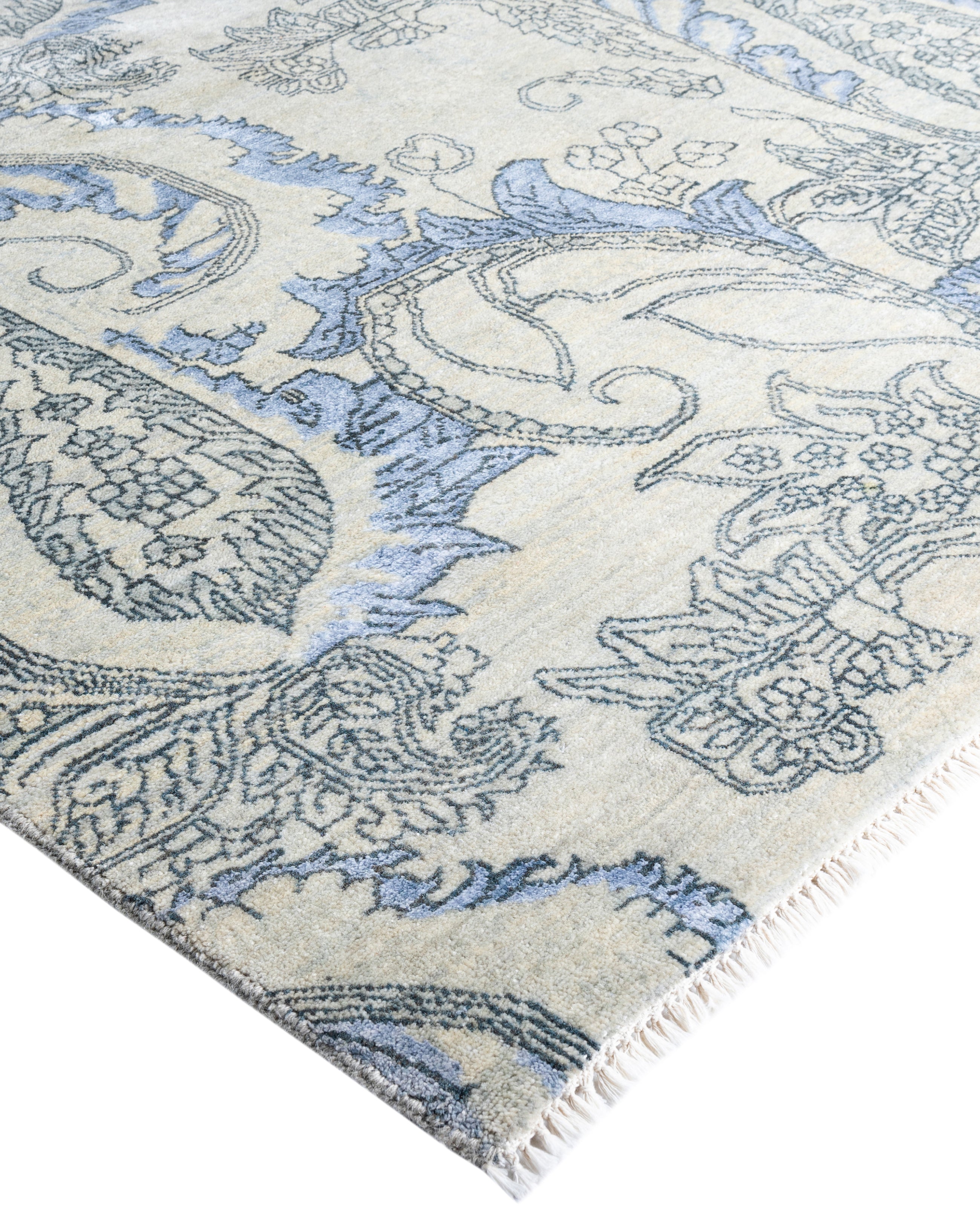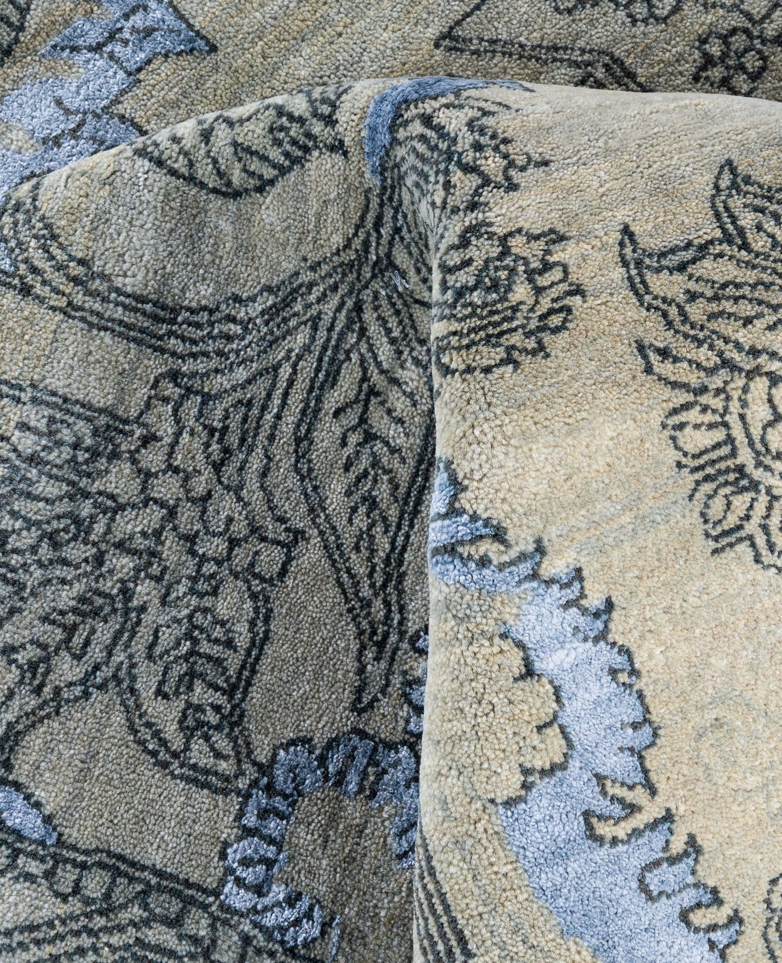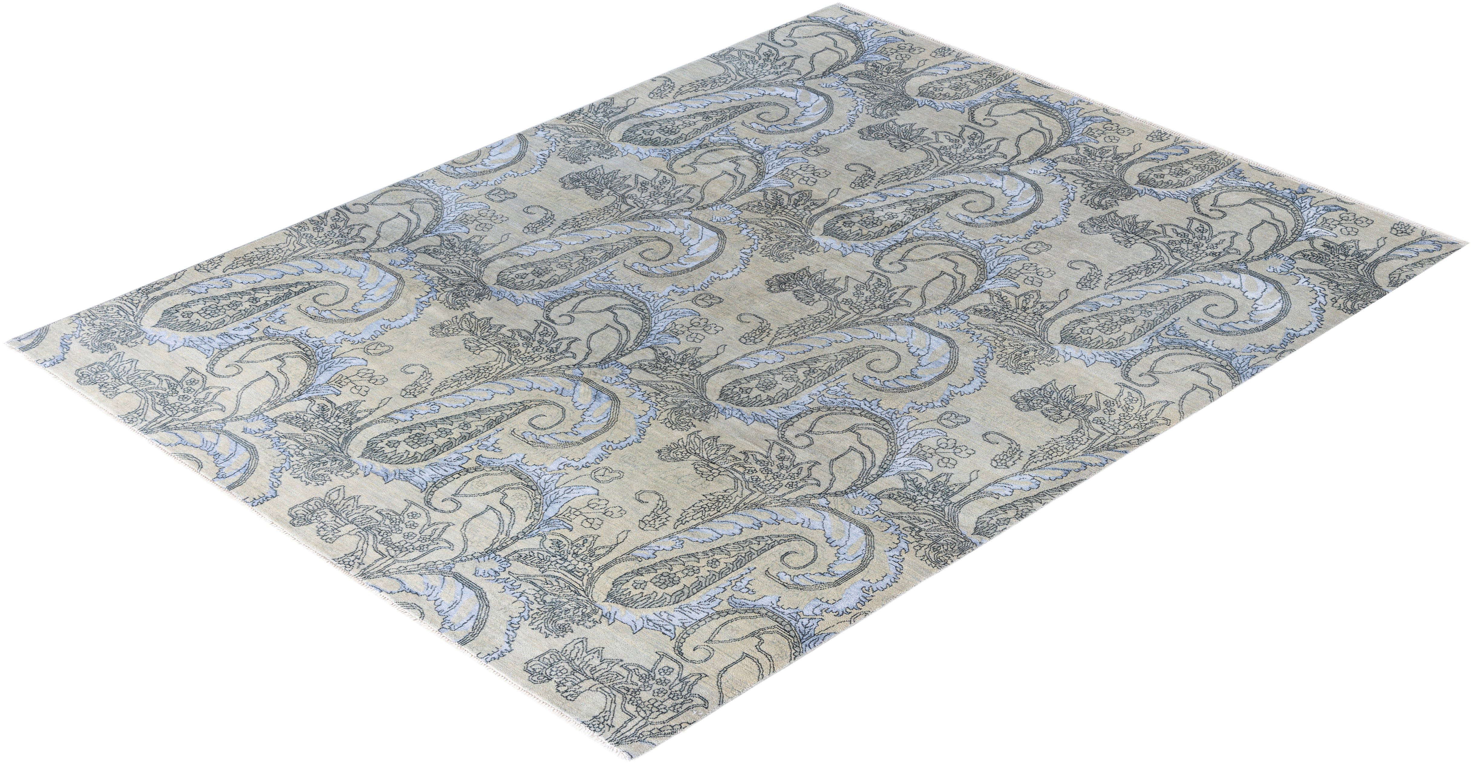 Traditional Paisley Wool, Silk Hand Knotted Gray Area Rug 7' 10" x 10' 4"