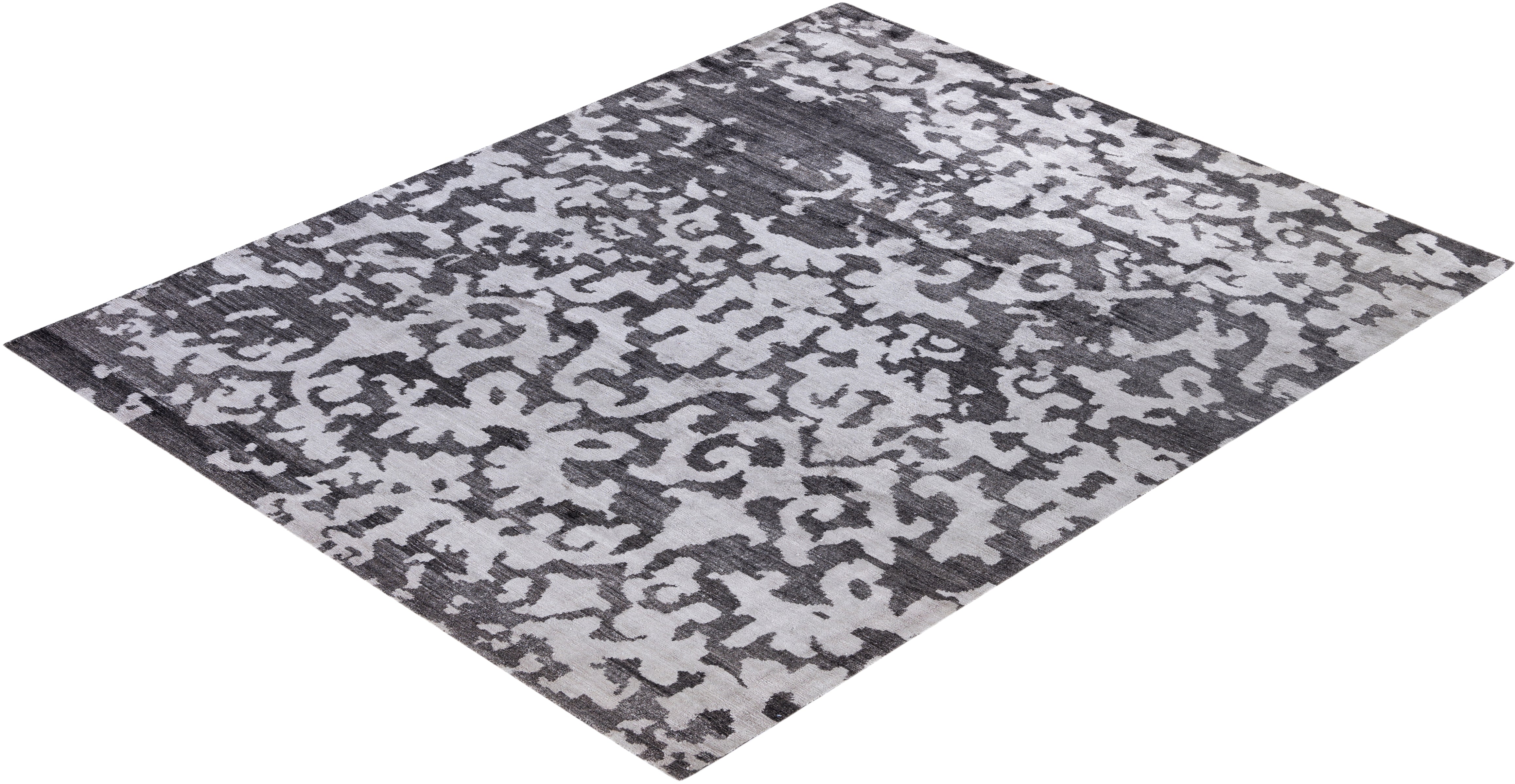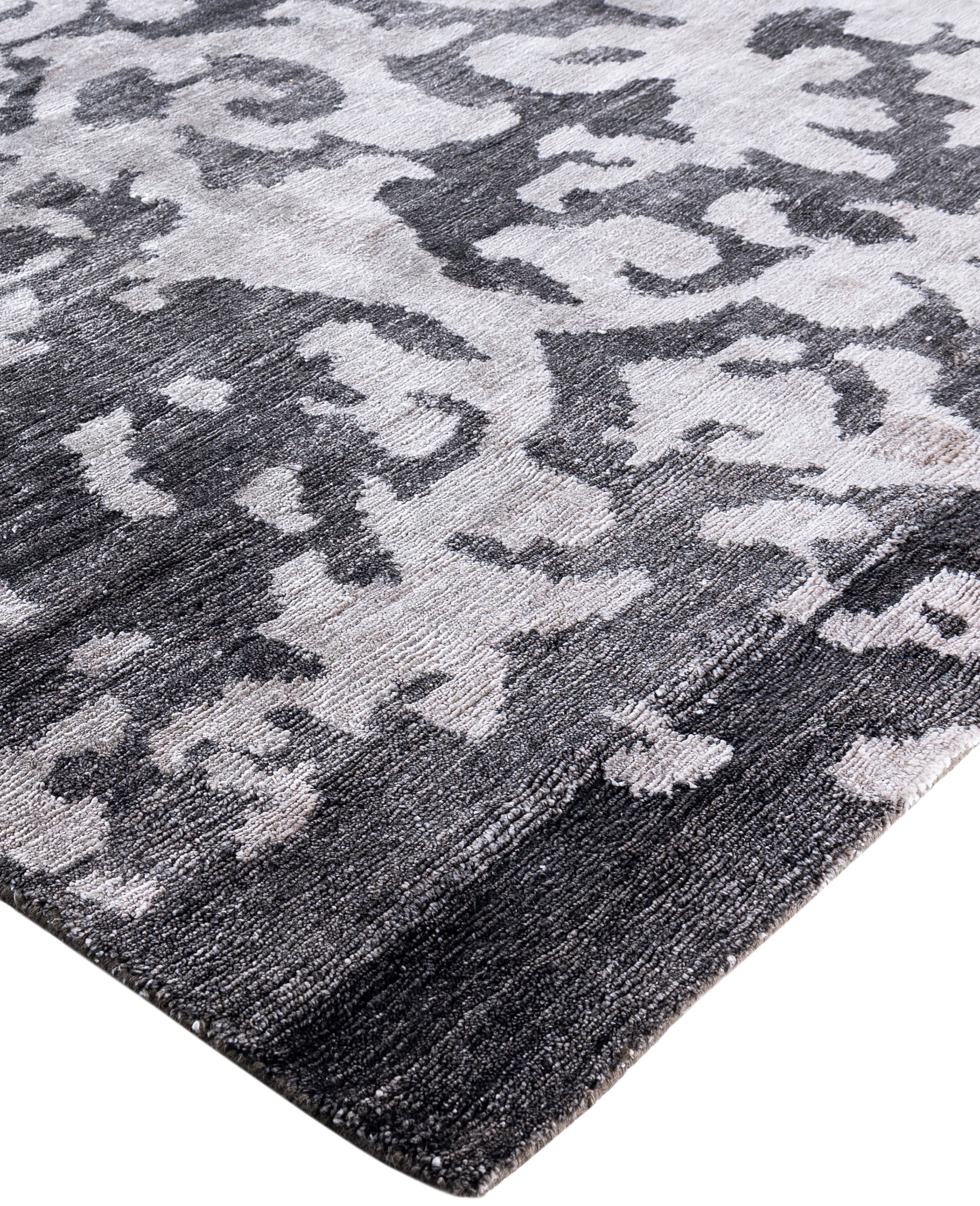 Contemporary Abstarct Silk Hand Knotted Black Area Rug 8' 1" x 10' 1"